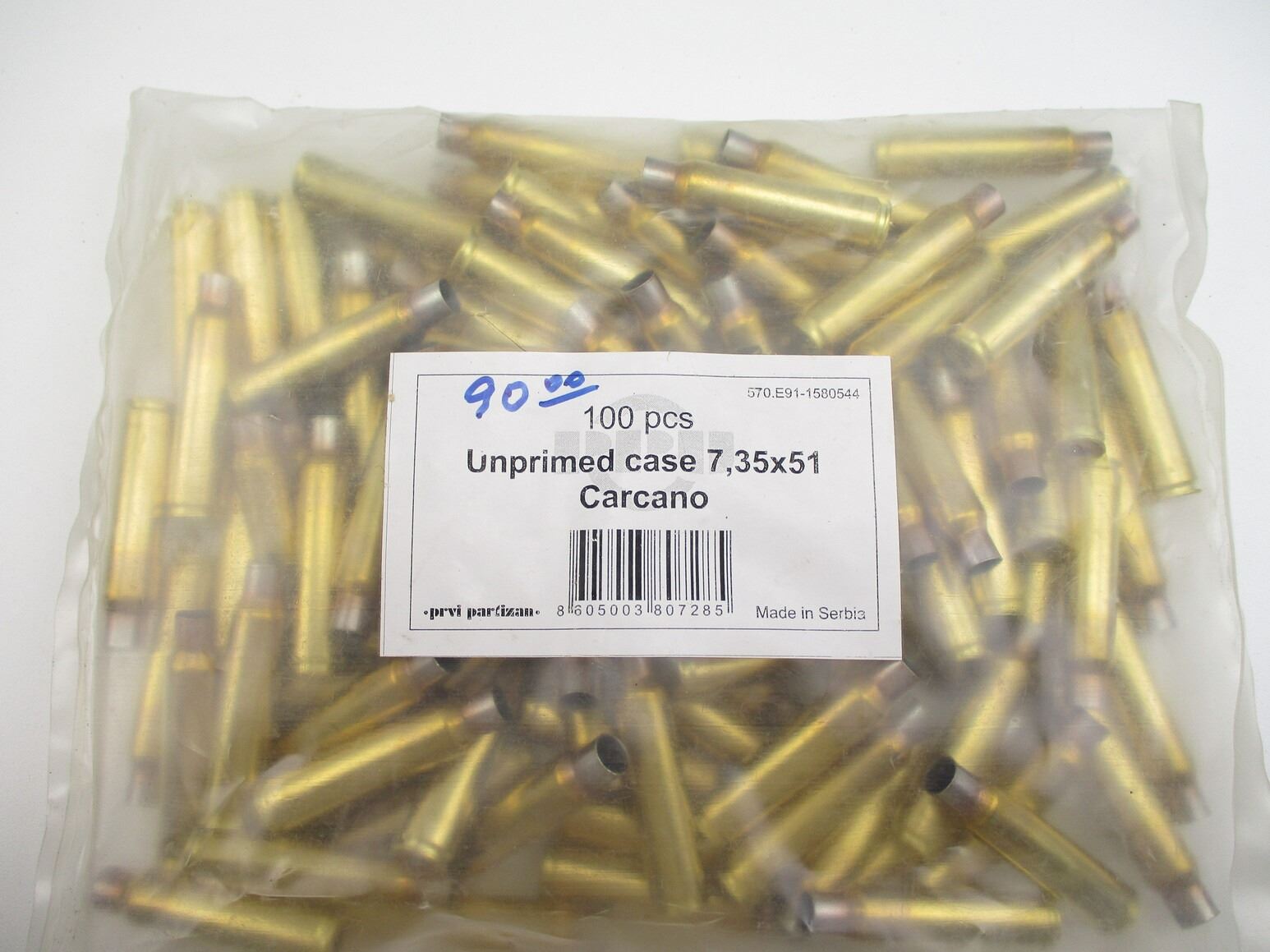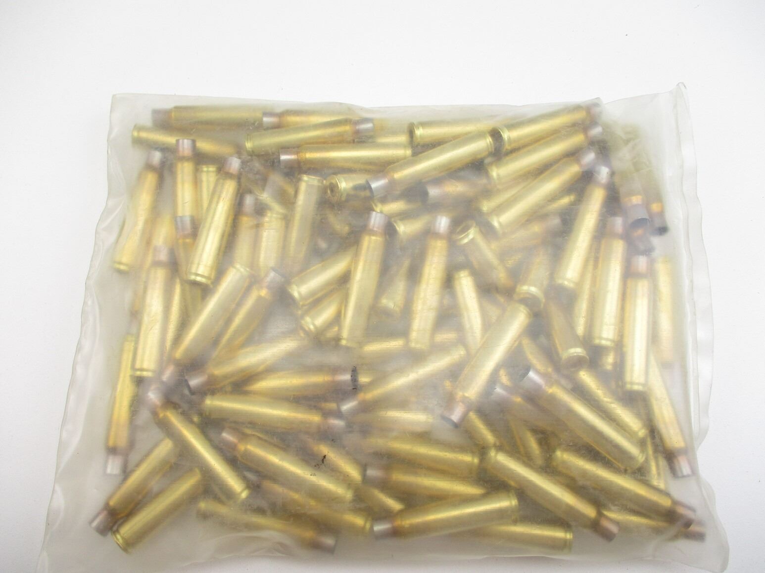 NON-PRIMED 7.35X51 CARCANO CASES LOT, 100 CASES (STATED ON BAG, NOT CONFIRMED)