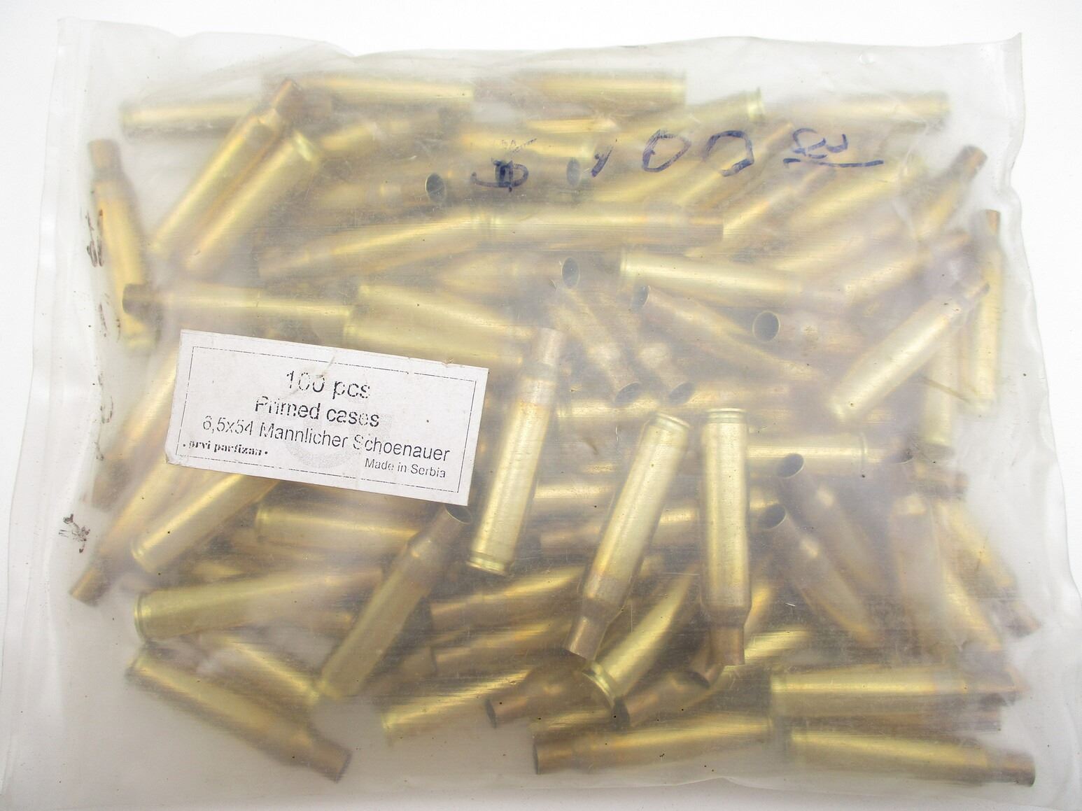NON-PRIMED 6.5X54 MANNLICHER SCHOENAUER CASES LOT, 100 CASES (STATED ON BAG, NOT CONFIRMED)