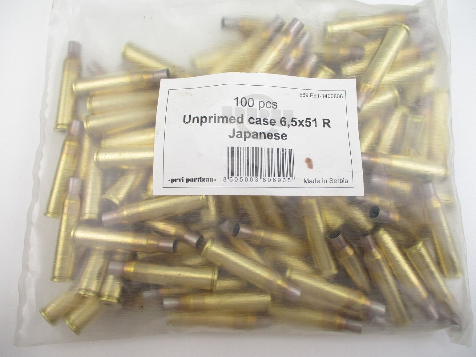 NON-PRIMED 6.5X51R JAPANESE CASES LOT, 100 CASES (STATED ON BAG, NOT CONFIRMED)