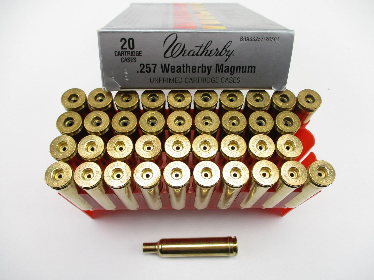 NON-PRIMED WEATHERBY .257 WEATHERBY MAGNUM CASES LOT, 39 BRASS CASES TOTAL