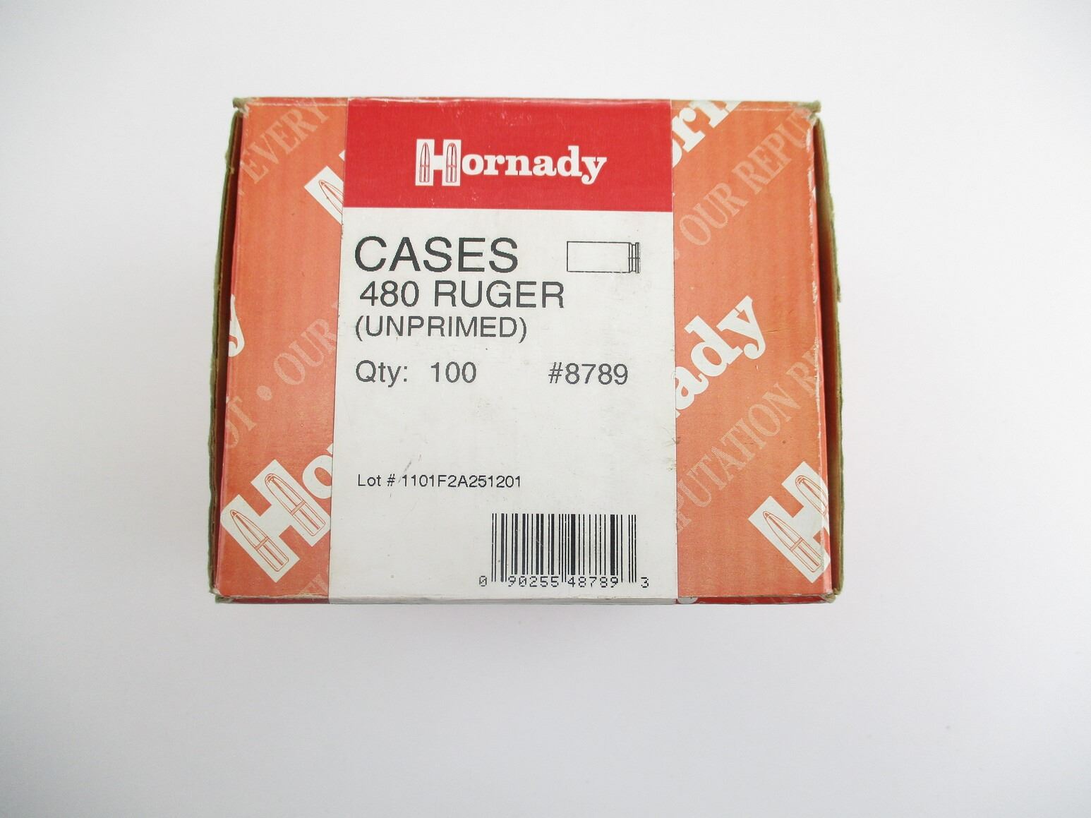 NEW NON-PRIMED .480 RUGER CASES LOT, APPROX 100 CASES TOTAL, MFG'D BY HORNADY