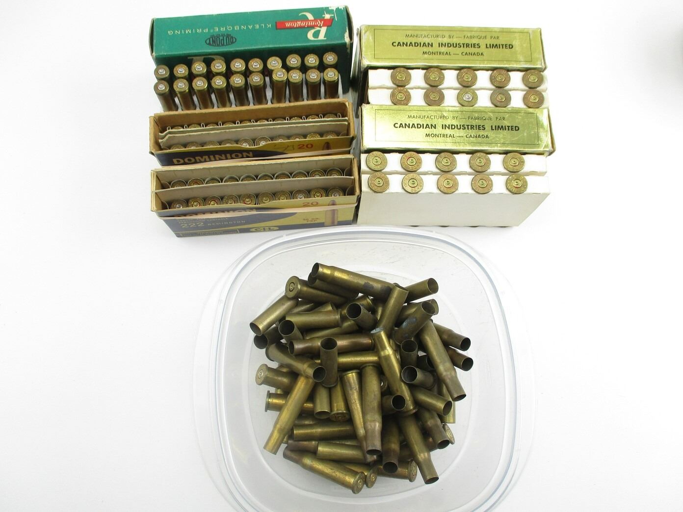 NON-PRIMED ASSORTED CASES LOT, 167 BRASS CASES TOTAL, VARIOUS CALIBERS INCLUDING: .222 REM, .357 MAG, .30-30 WIN, .303 BRITISH, ETC.