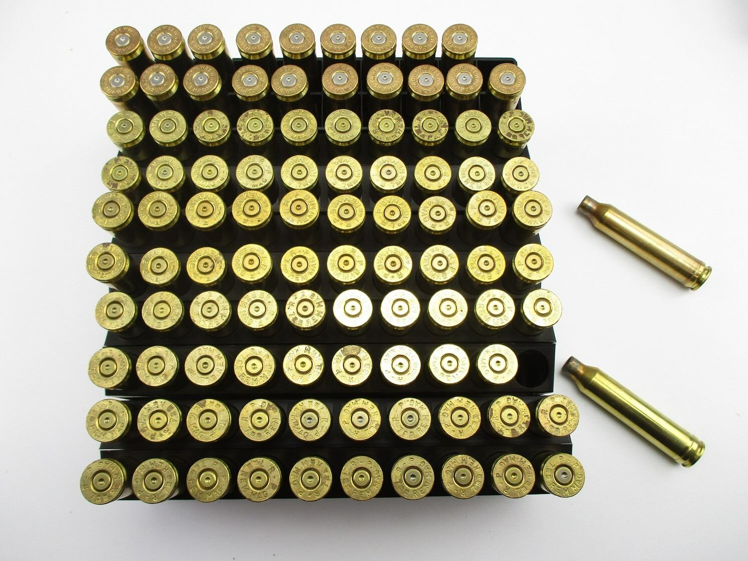 NON-PRIMED 7MM REM MAG CASES LOT, 100 BRASS CASES TOTAL, MFG'S INCLUDE: REMINGTON, HORNADY
