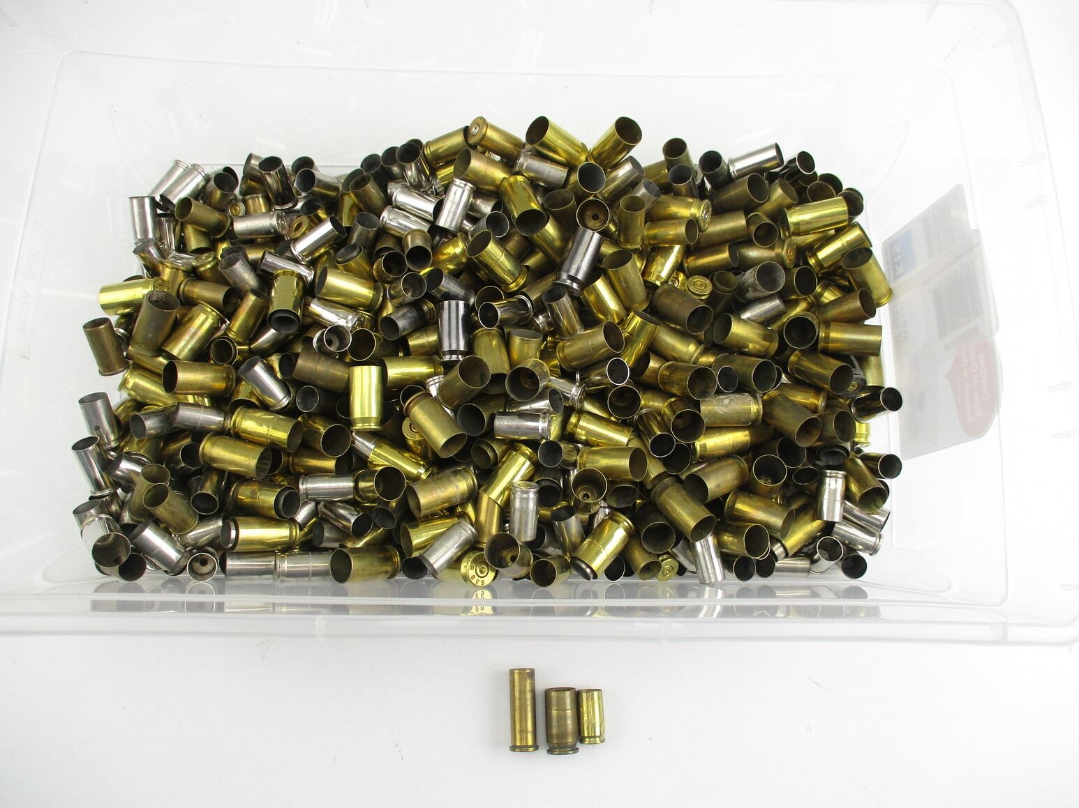 NON-PRIMED ASSORTED PISTOL CASES LOT, APPROX 6.8 LBS, LOT INCLUDES: .38 SPL, .45 AUTO, & 9MM LUGER, LOT MAY INCLUDE OTHER CALIBERS, LOT INCLUDES NICKEL CASES