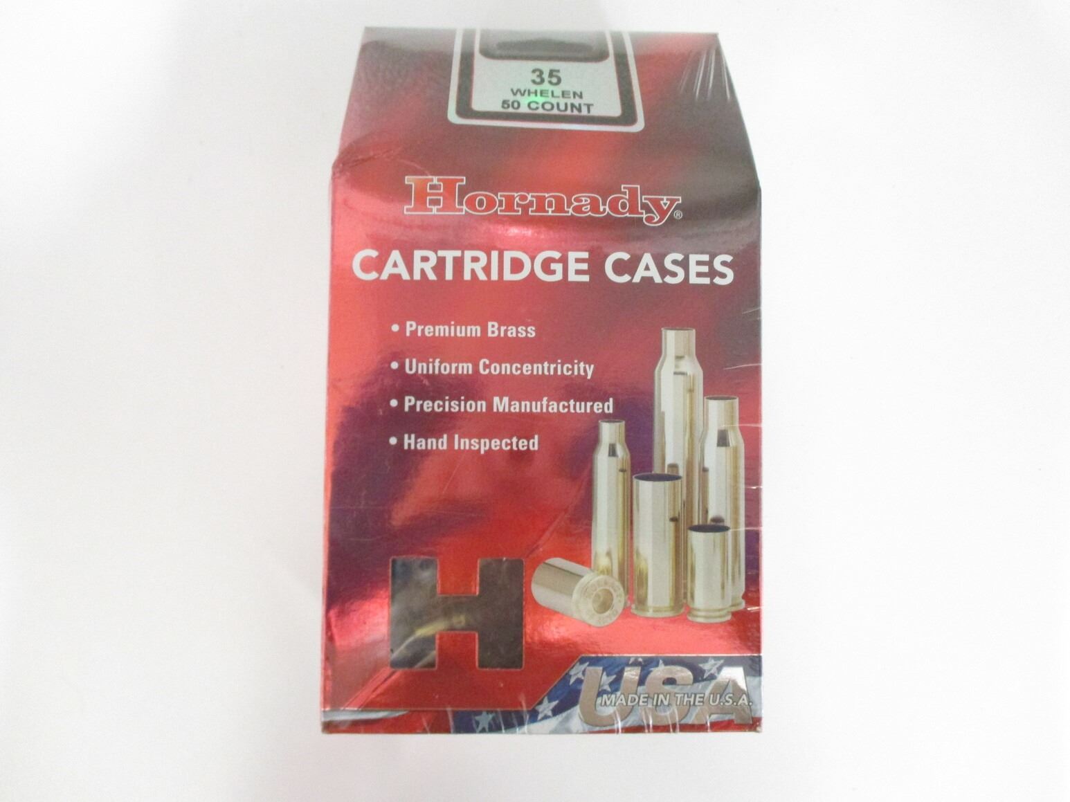 NON-PRIMED HORNADY .35 WHELEN CASES LOT, 50 BRASS CASES TOTAL, UNOPENED PACKAGING
