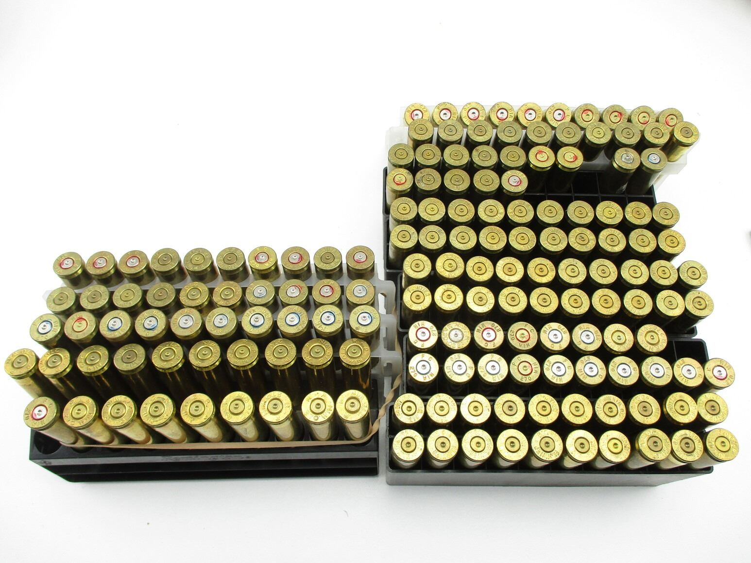 NON-PRIMED .270 WIN CASES LOT, 161 BRASS CASES TOTAL