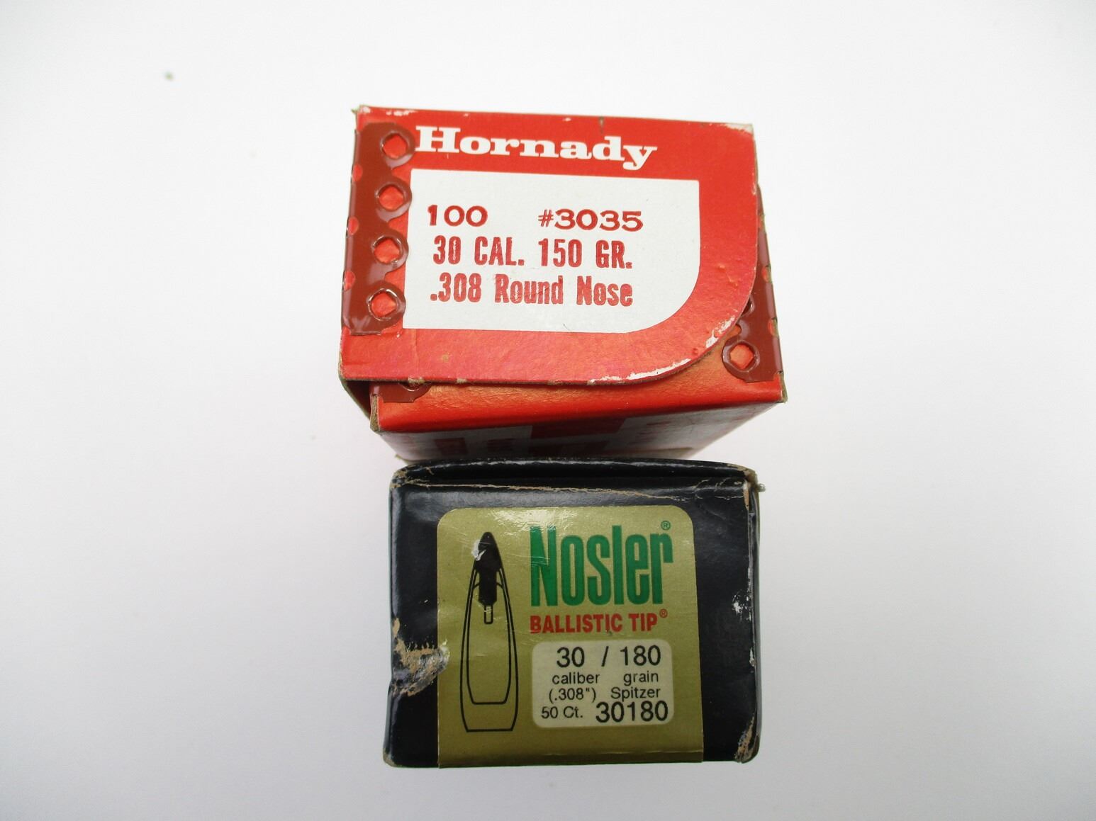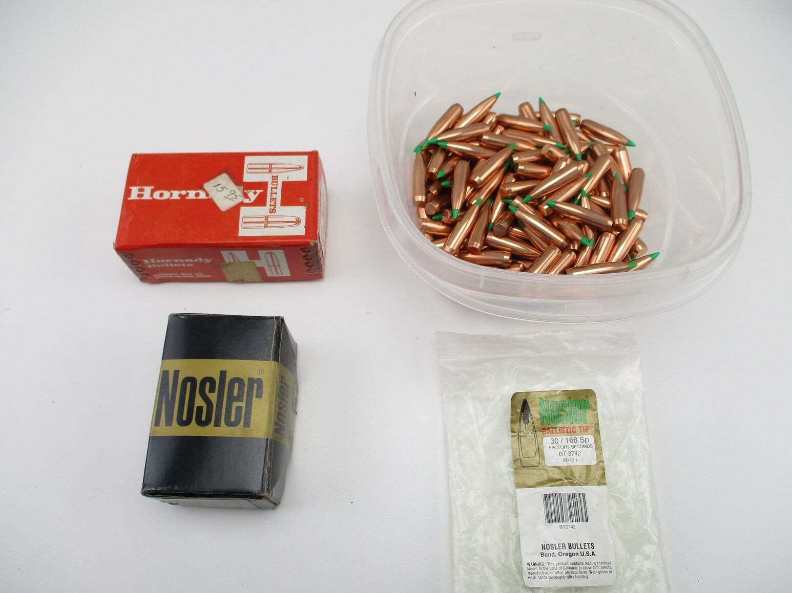 ASSORTED .30 CAL BULLETS LOT, APPROX 5.9 LBS, .308" DIAMETER BULLET, INCLUDES HORNADY, & NOSLER MFG'S