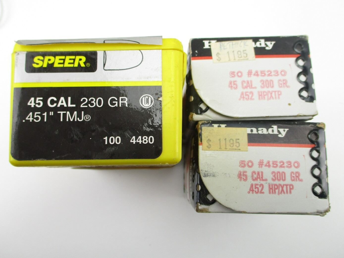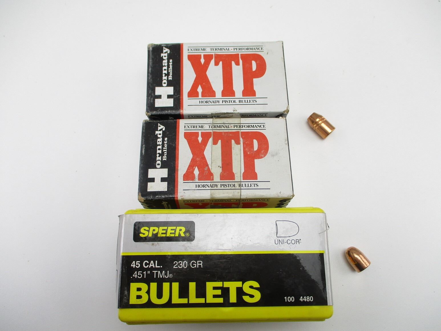 ASSORTED .45 CAL BULLETS LOT, APPROX 6.6 LBS, INCLUDES HORNADY & SPEER MFG'S, .451" & .452" DIAMETER BULLETS