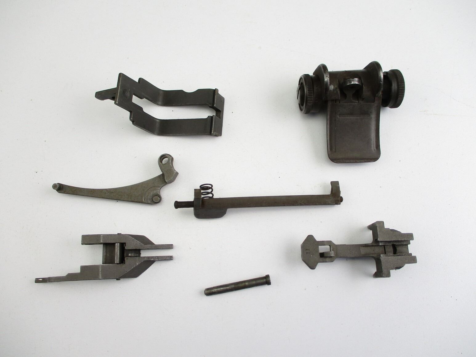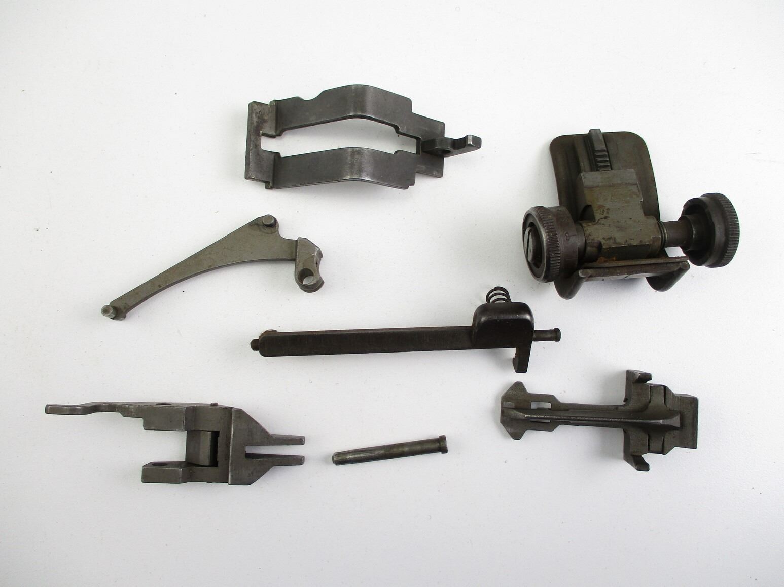 M-1 GARAND RIFLE PARTS , INCLUDES: REAR SIGHT ASSEMBLY, COMPLETE, BULLET GUIDE, FOLLOWER & SLIDE ASSEMBLY, CLIP LATCH, ETC.