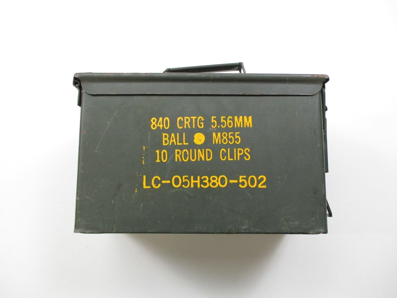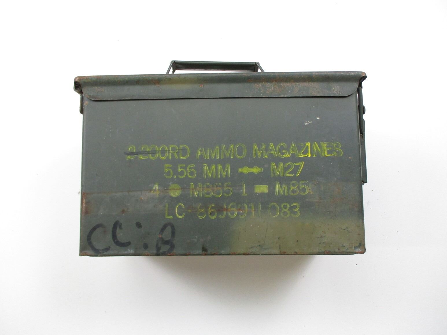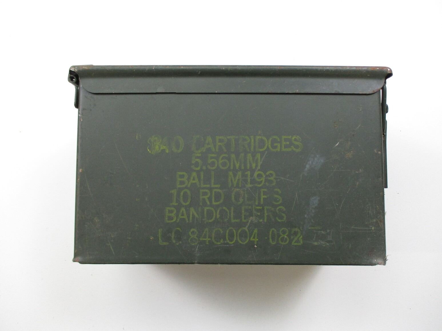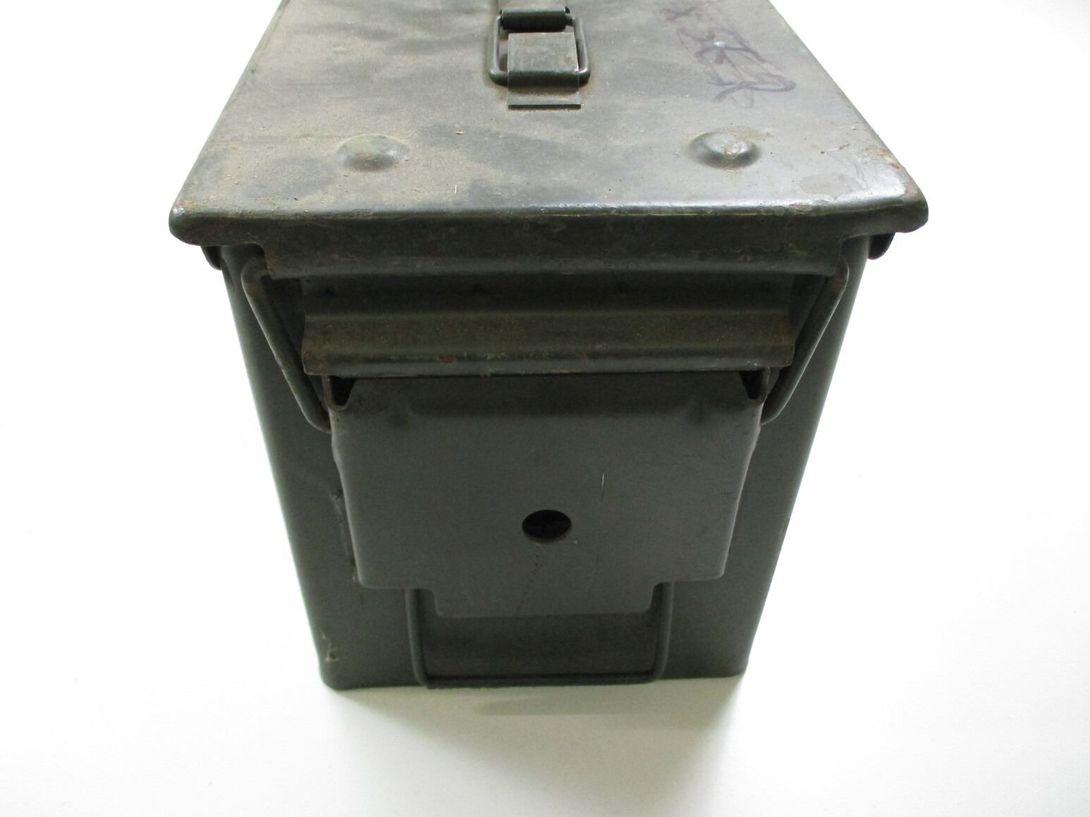 METAL AMMO TIN LOT, LOT INCLUDES; (4) GREEN AMMO TINS, WITH RUST & VARIOUS MARKINGS, APPROX. 12" X 6.25" X 7.5". SEE PHOTOS.