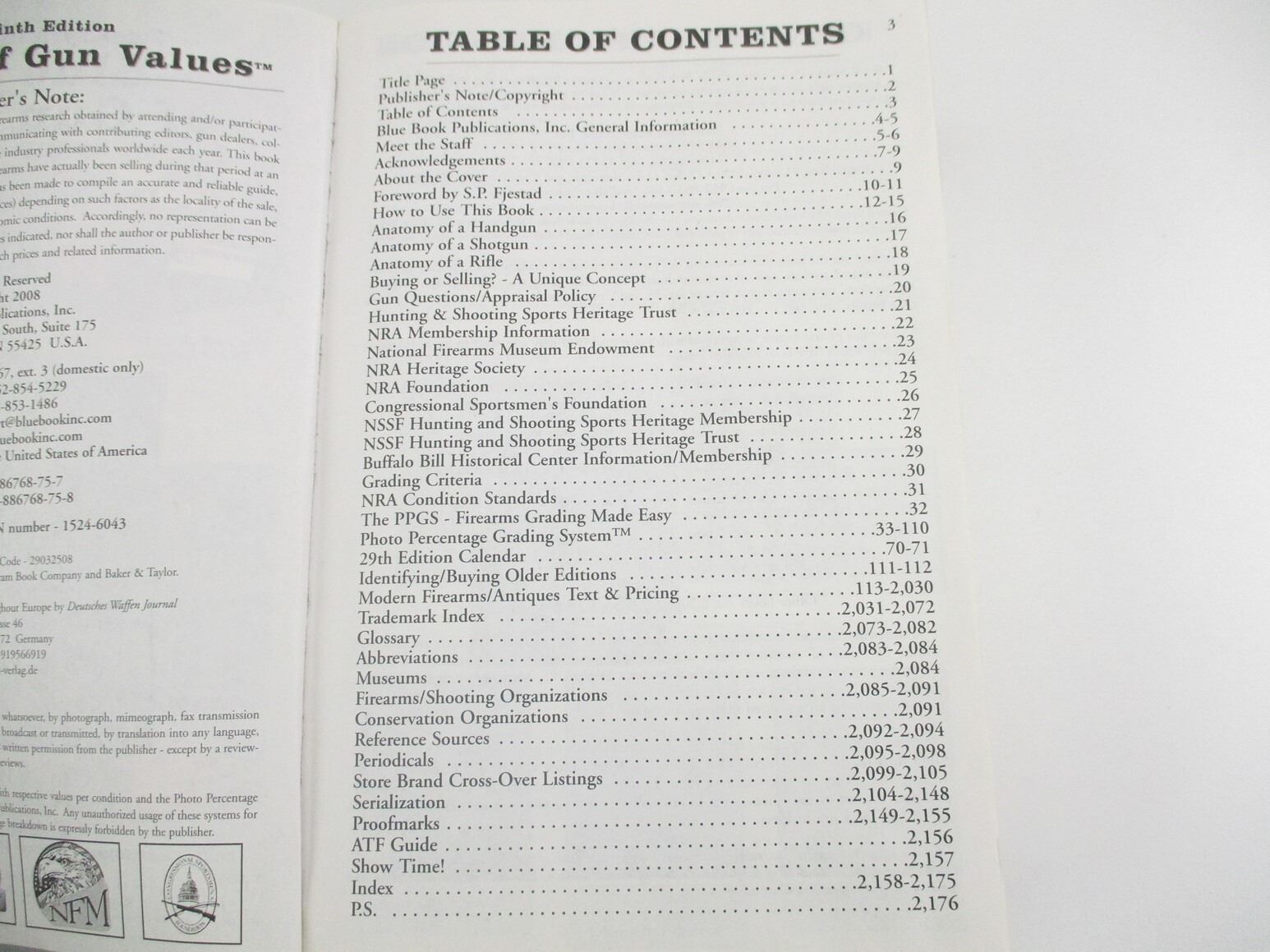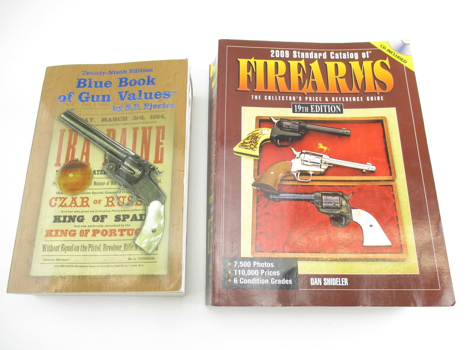 ASSORTED BOOK LOT, LOT INCLUDES; (1) "BLUE BOOK OF GUN VALUES" 29TH ED. BY S.P. FJESTAD, 2008, ISBN 9781886768758; (1) "2009 STANDARD CATALOG OF FIREARMS: THE COLLECTOR'S PRICE & REFERENCE GUIDE" 19TH ED. BY DAN SHIDELER, ISBN 9780896896741, SEE PHOTOS