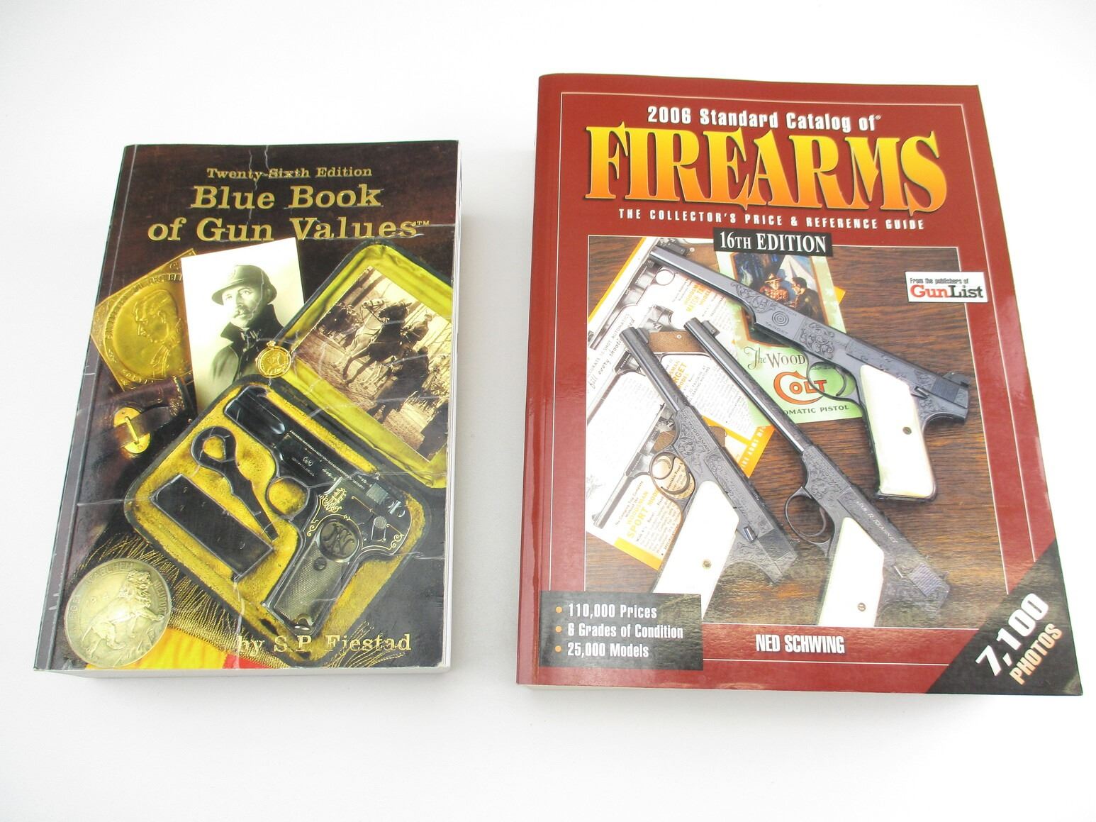 ASSORTED BOOK LOT, LOT INCLUDES; (1) "BLUE BOOK OF GUN VALUES" 26TH ED. BY S.P. FJESTAD, 2005, ISBN 9781886768550; (1) "2006 STANDARD CATALOG OF FIREARMS: THE COLLECTOR'S PRICE & REFERENCE GUIDE" 16TH ED. BY NED SCHWING, ISBN 9780896892286, SEE PHOTOS