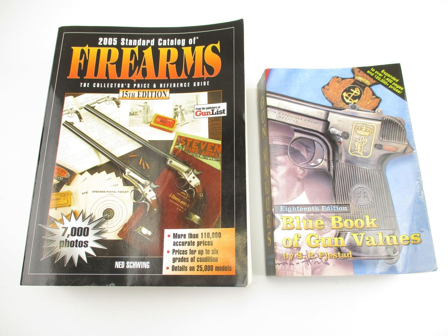 ASSORTED BOOK LOT, LOT INCLUDES; (1) "BLUE BOOK OF GUN VALUES" 18TH ED. BY S.P. FJESTAD, ISBN 9781886768086; (1) "2005 STANDARD CATALOG OF FIREARMS: THE COLLECTOR'S PRICE & REFERENCE GUIDE" 15TH ED. BY NED SCHWING, ISBN 9780873499002, SEE PHOTOS