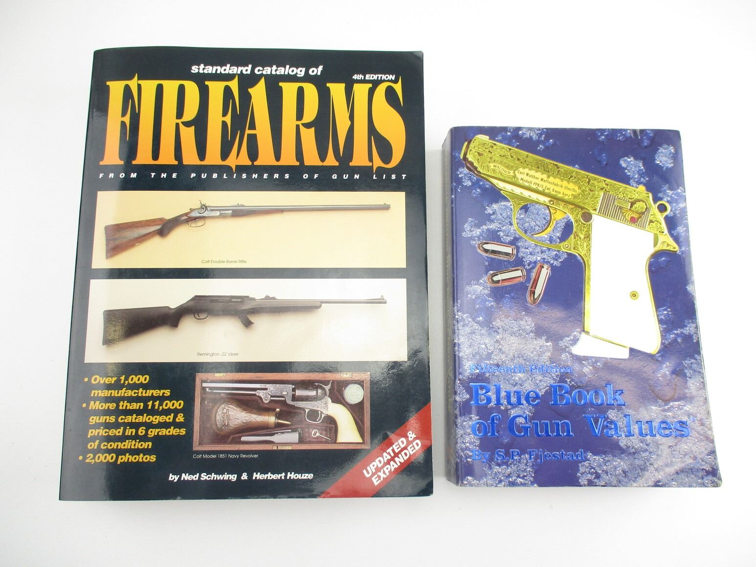 ASSORTED BOOK LOT, LOT INCLUDES; (1) "BLUE BOOK OF GUN VALUES" 15TH ED. BY S.P. FJESTAD, ISBN 9780962594359; (1) " STANDARD CATALOG OF FIREARMS: THE COLLECTOR'S PRICE & REFERENCE GUIDE" 4TH ED. BY NED SCHWING & HERBERT HOUZE,1994, ISBN 9780873412780, SEE PHOTOS