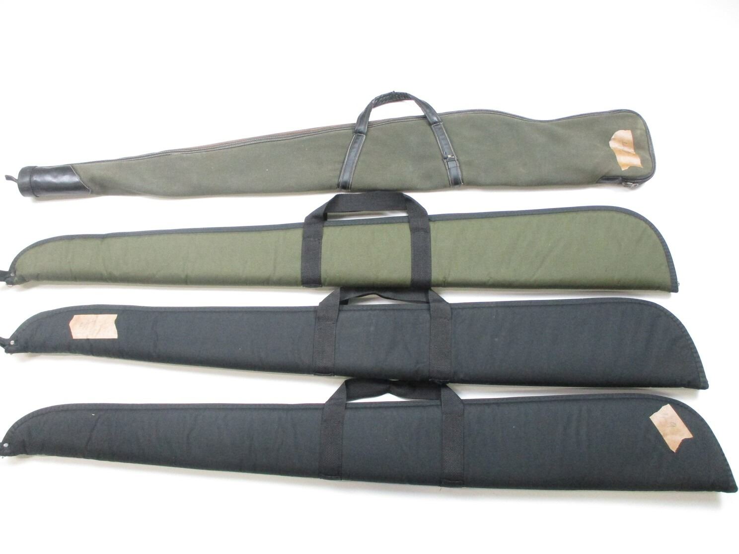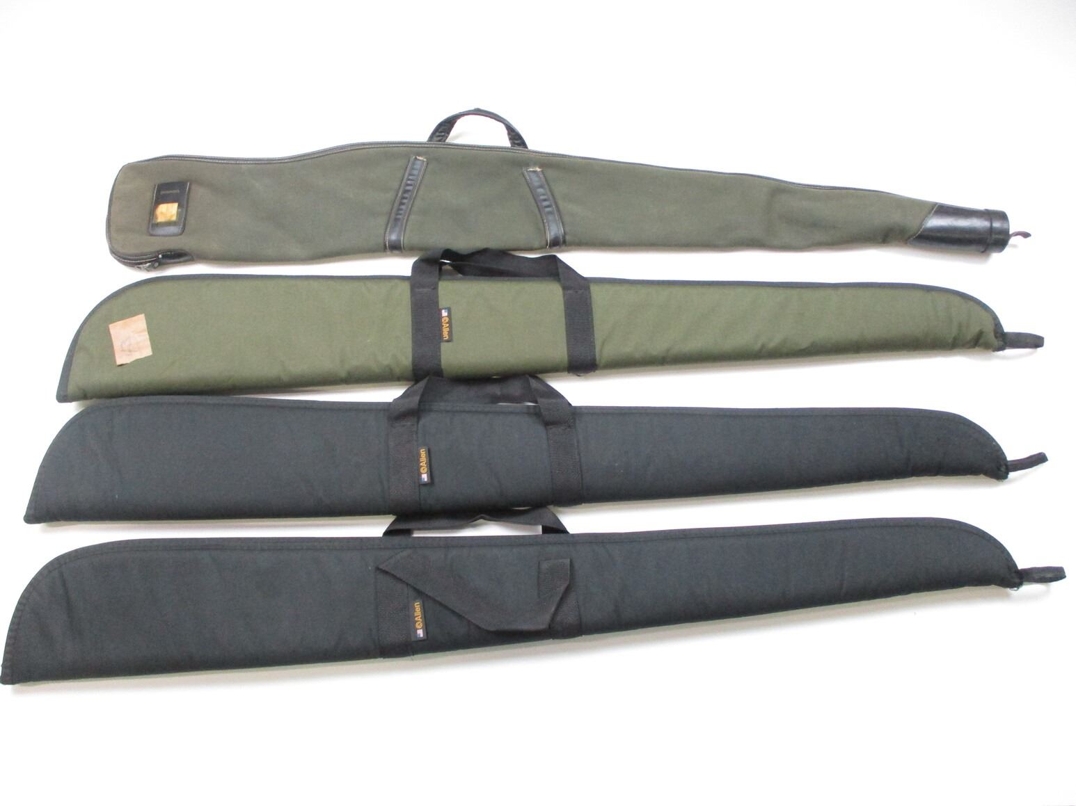 SOFT RIFLE CASE LOT, LOT OF 4: (1) BROWNING GREEN, CORDUROY PADDED INTERIOR, HANDLES SHOW WEAR, OAL APPROX. 52"; (1) ALLEN GREEN, PADDED INTERIOR, OAL APPROX 52"; (2) ALLEN BLACK, PADDED INTERIOR, OAL APPROX 52", SEE PHOTOS