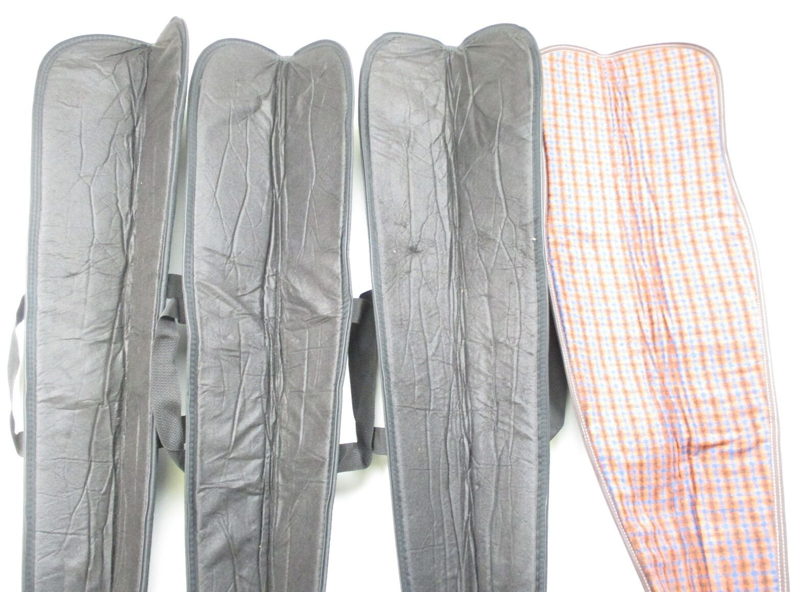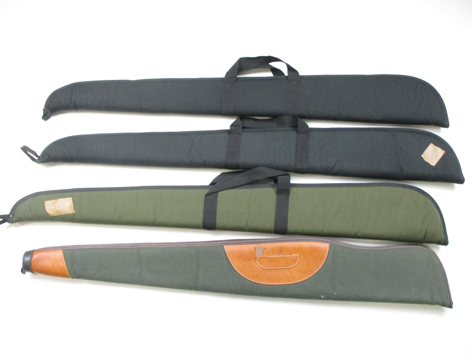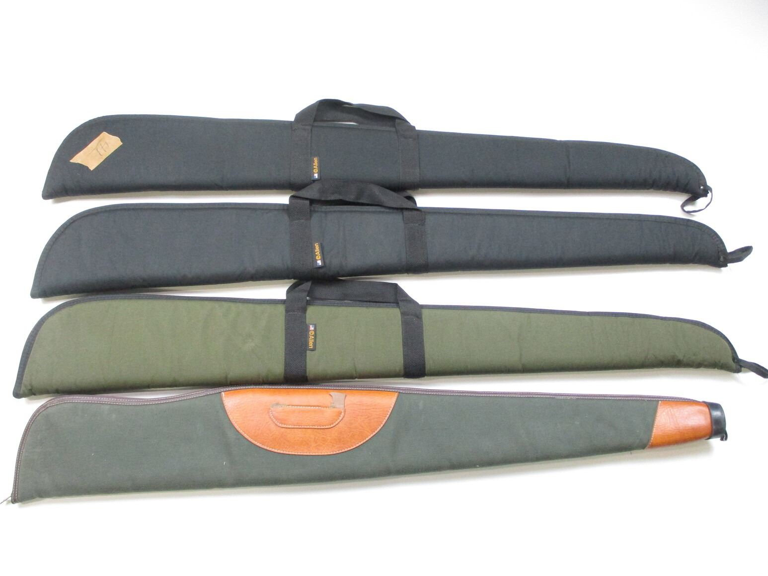 SOFT RIFLE CASE LOT, LOT OF 4: (2) ALLEN BLACK, PADDED INTERIOR, OAL APPROX 52"; (1) ALLEN GREEN, PADDED INTERIOR, OAL APPROX. 52"; (1) GREEN , PADDED INTERIOR, HANDLES MISSING, WEAR & TEAR, OAL APPROX. 50", SEE PHOTOS