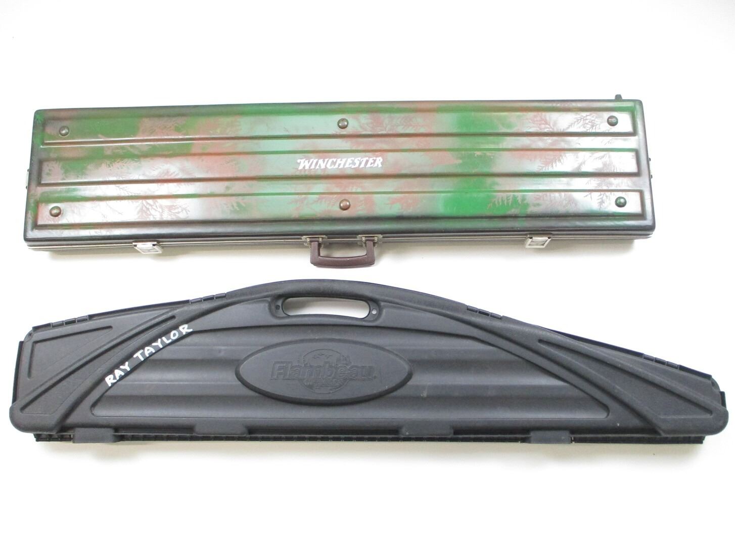 HARD RIFLE CASE LOT, LOT OF 2: (1) FLAMBEAU BLACK, PADDED INTERIOR, OAL APPROX. 50"; (1) WINCHESTER GREEN CAMO, PADDED INTERIOR, OAL APPROX. 48", SEE PHOTOS