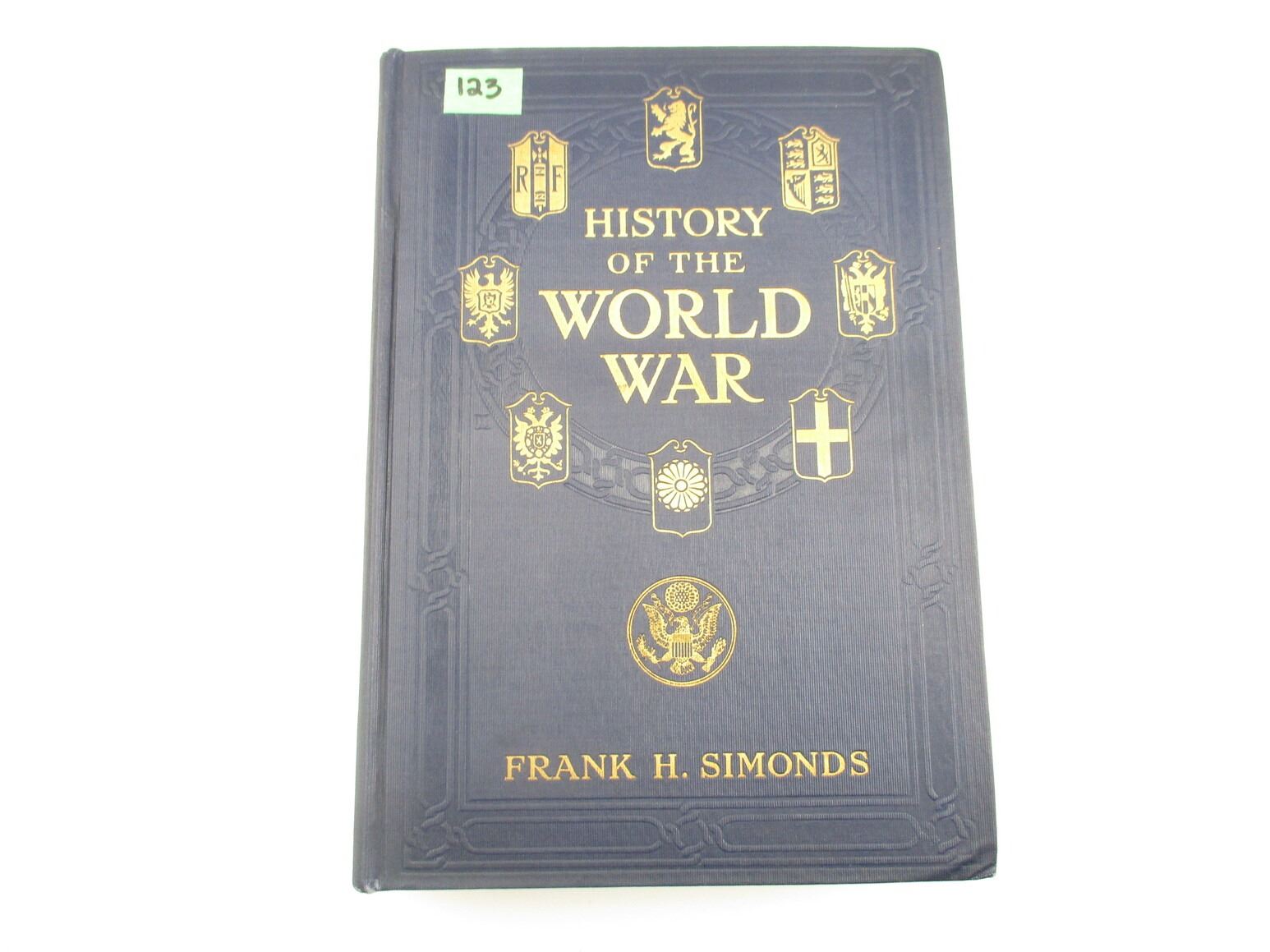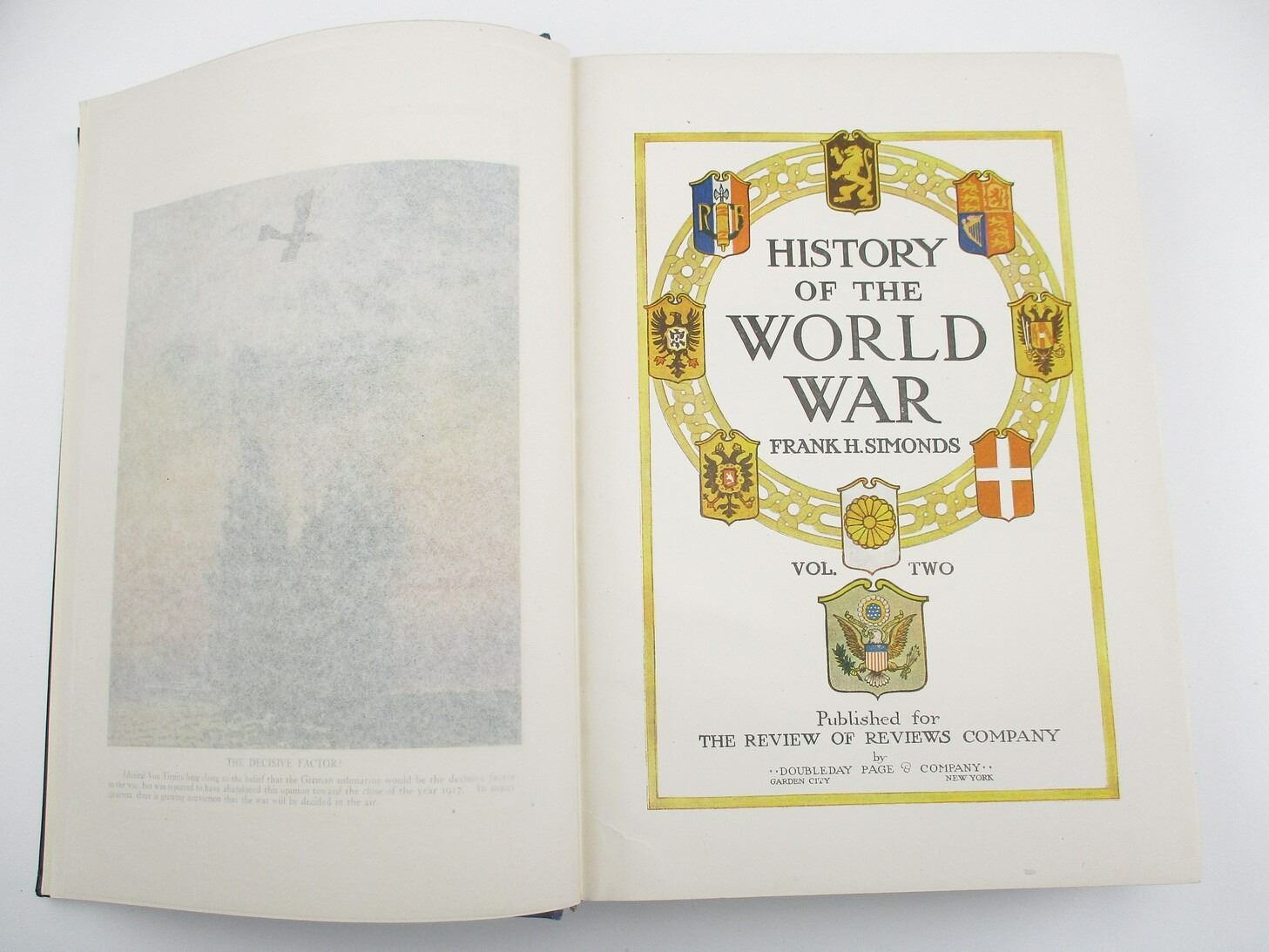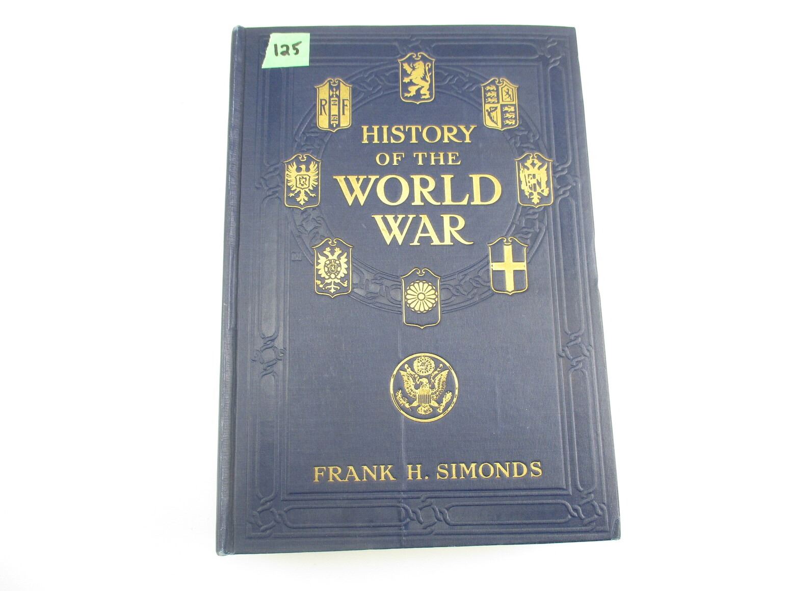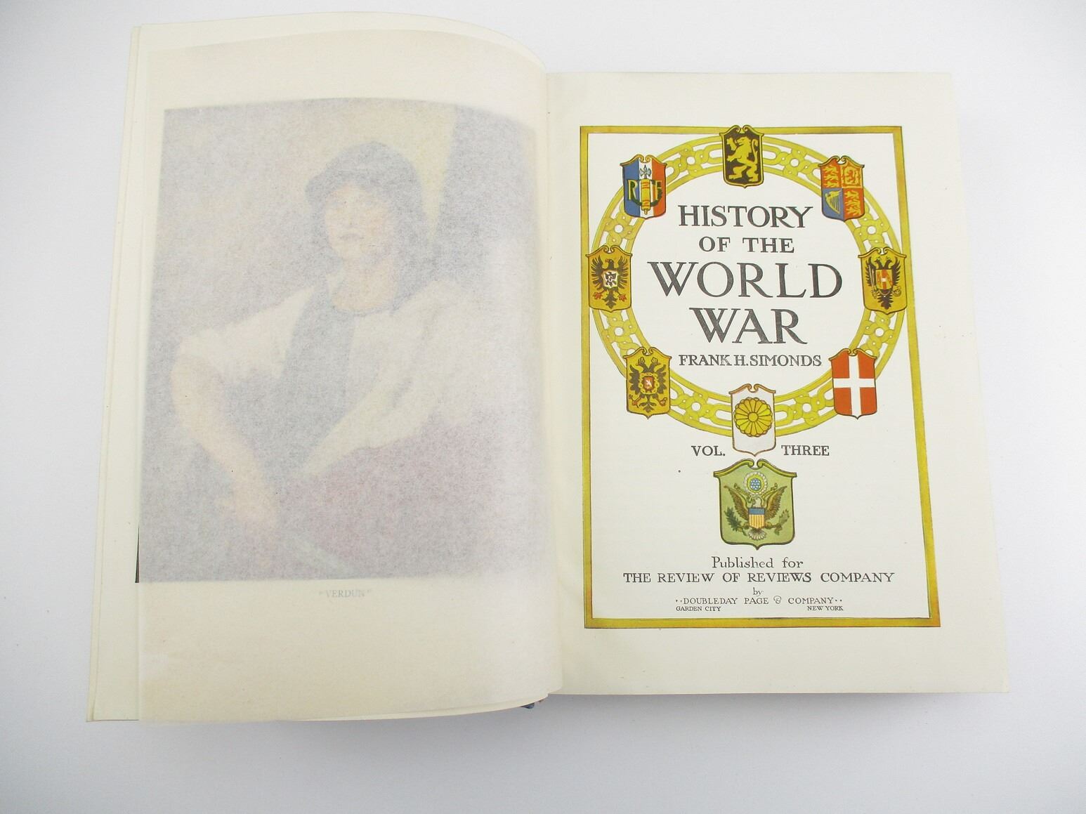 WORLD WAR BOOK LOT, LOT INCLUDES VOLUMES 1 THROUGH 5 OF "HISTORY OF THE WORLD WAR" BY FRANK H. SIMONDS, VOL. 1 COPYRIGHTED IN 1917, VOLUME 5 COPYRIGHTED IN 1920, PUBLISHED BY DOUBLEDAY PAGE & COMPANY, BOOKS WRITTEN IN CLOSE TO REAL TIME WITH W.W.I EVENTS, SEE PHOTOS