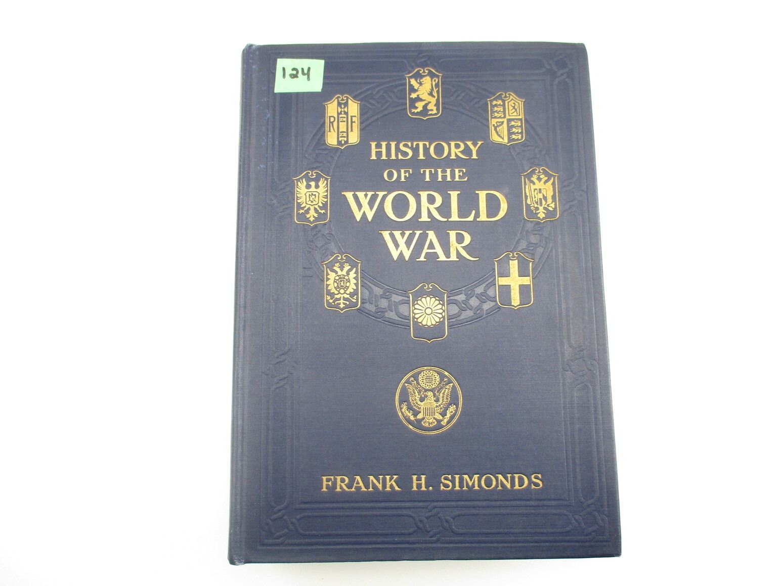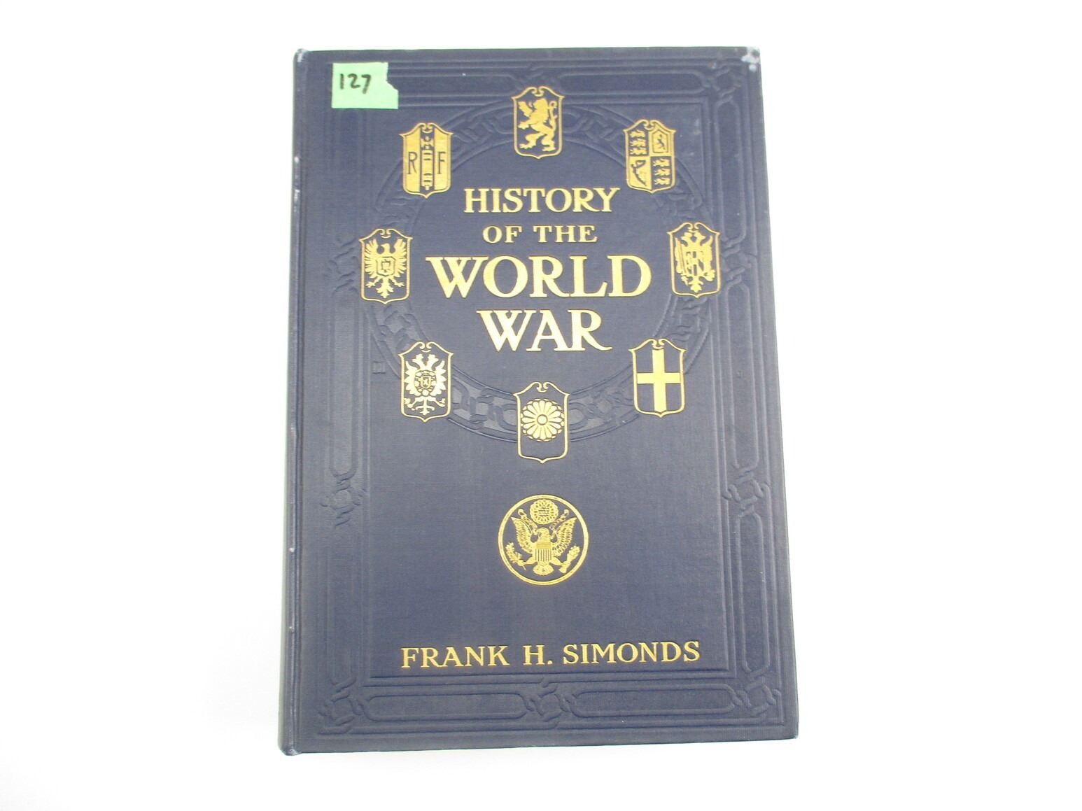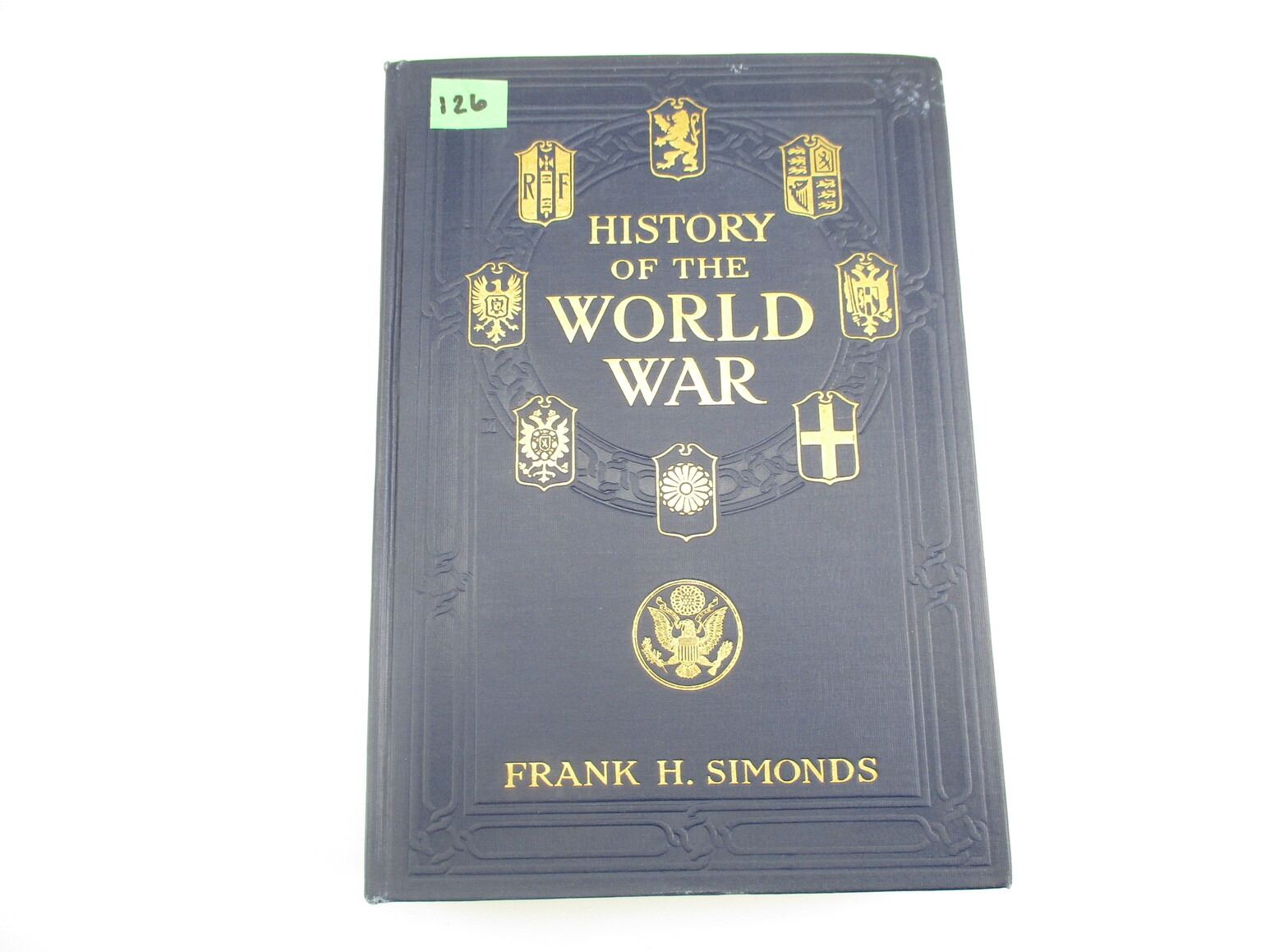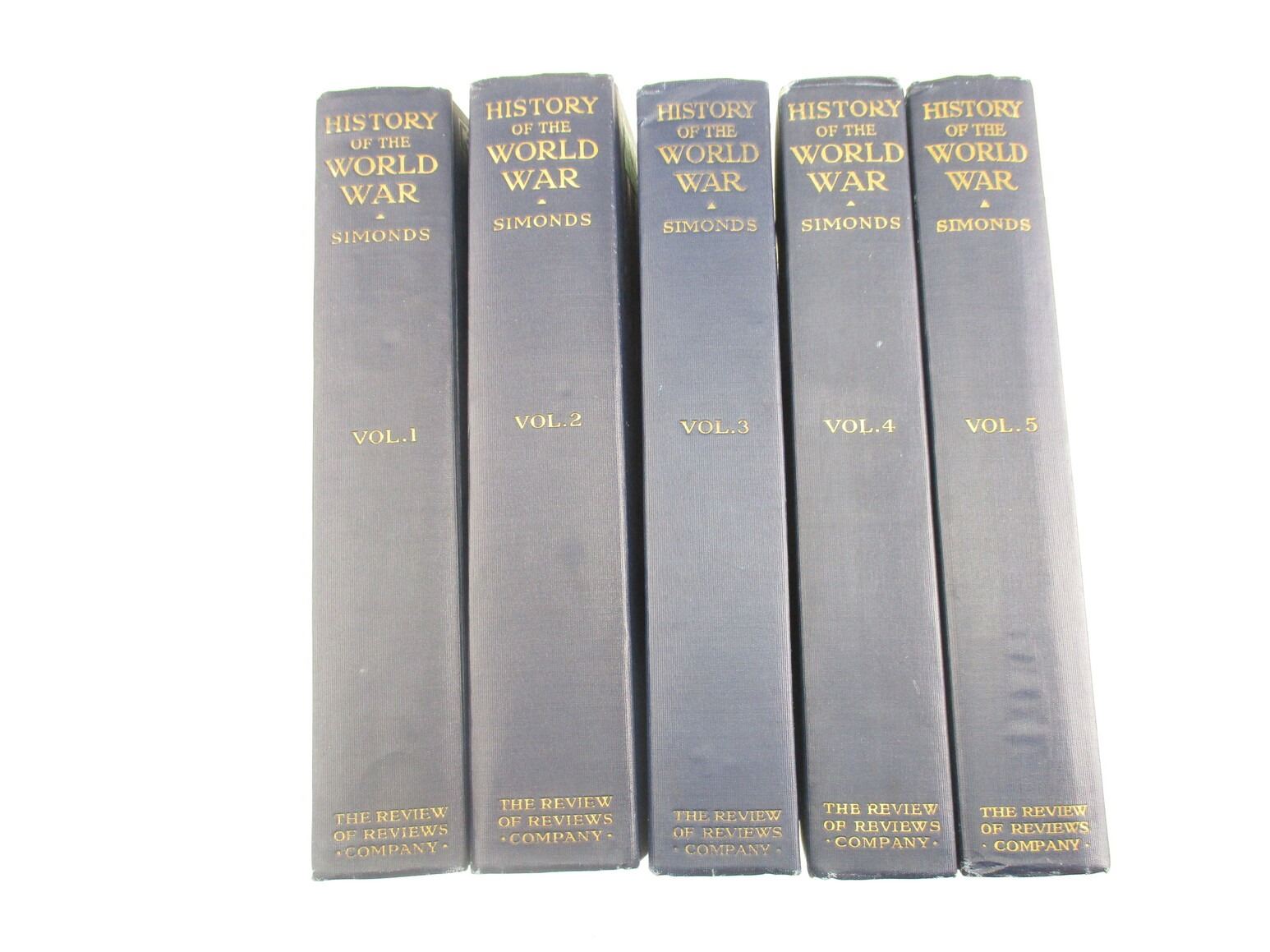 WORLD WAR BOOK LOT, LOT INCLUDES VOLUMES 1 THROUGH 5 OF "HISTORY OF THE WORLD WAR" BY FRANK H. SIMONDS, VOL. 1 COPYRIGHTED IN 1917, VOLUME 5 COPYRIGHTED IN 1920, PUBLISHED BY DOUBLEDAY PAGE & COMPANY, BOOKS WRITTEN IN CLOSE TO REAL TIME WITH W.W.I EVENTS, SEE PHOTOS