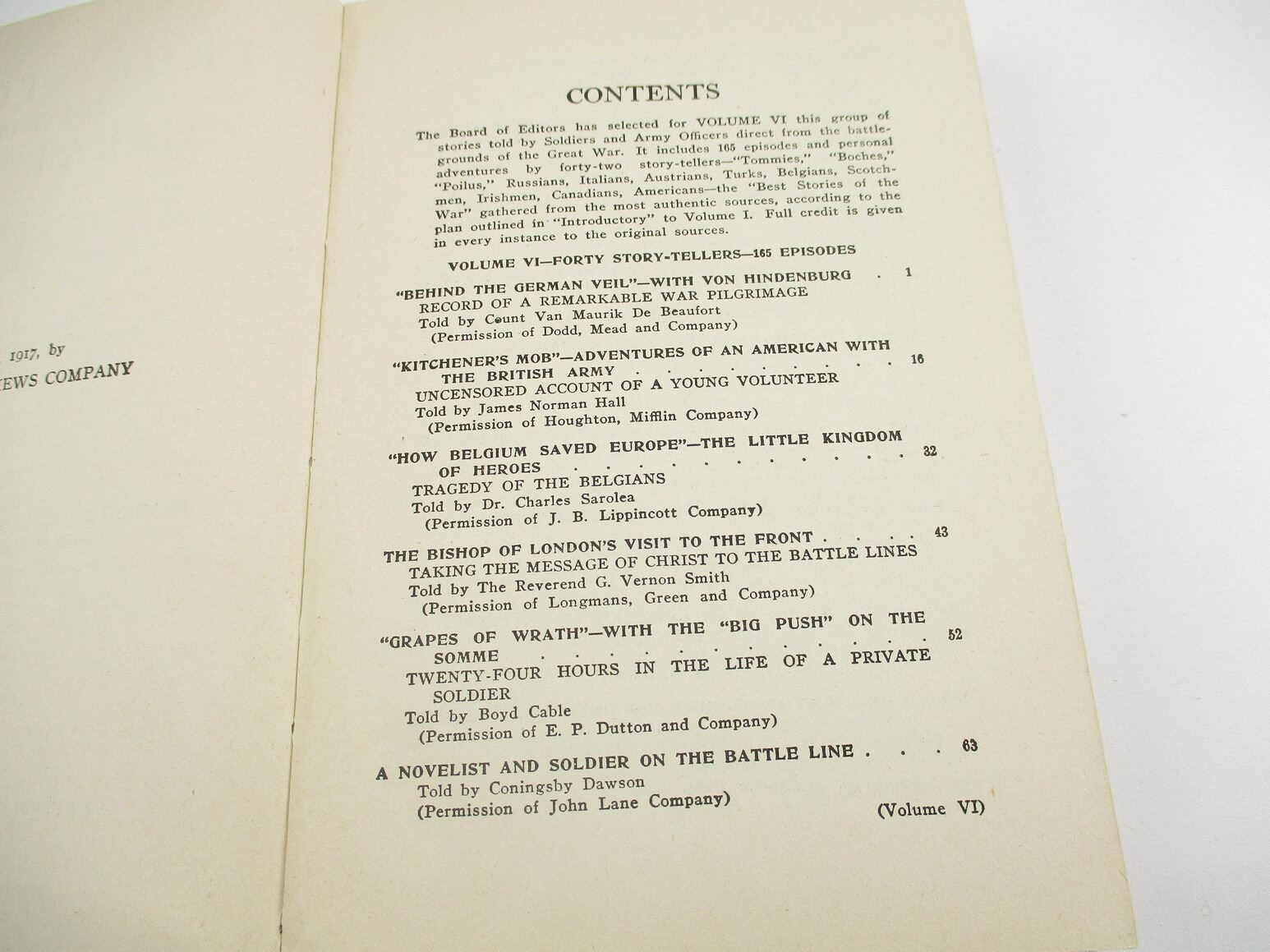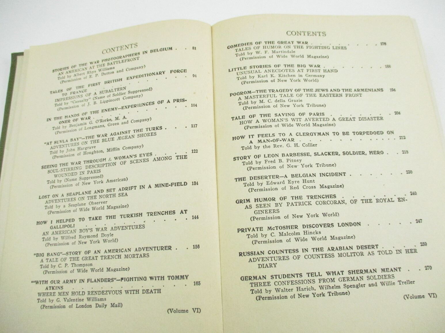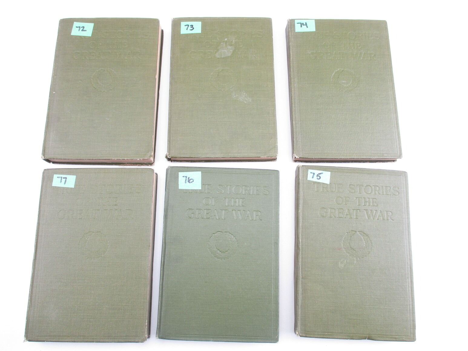 WORLD WAR I BOOK LOT, LOT OF 6: VOLUMES ONE TO SIX OF " TRUE STORIES OF THE GREAT WAR" EDITED BY FRANCIS TREVELYAN MILLER, 1917, SEE PHOTOS
