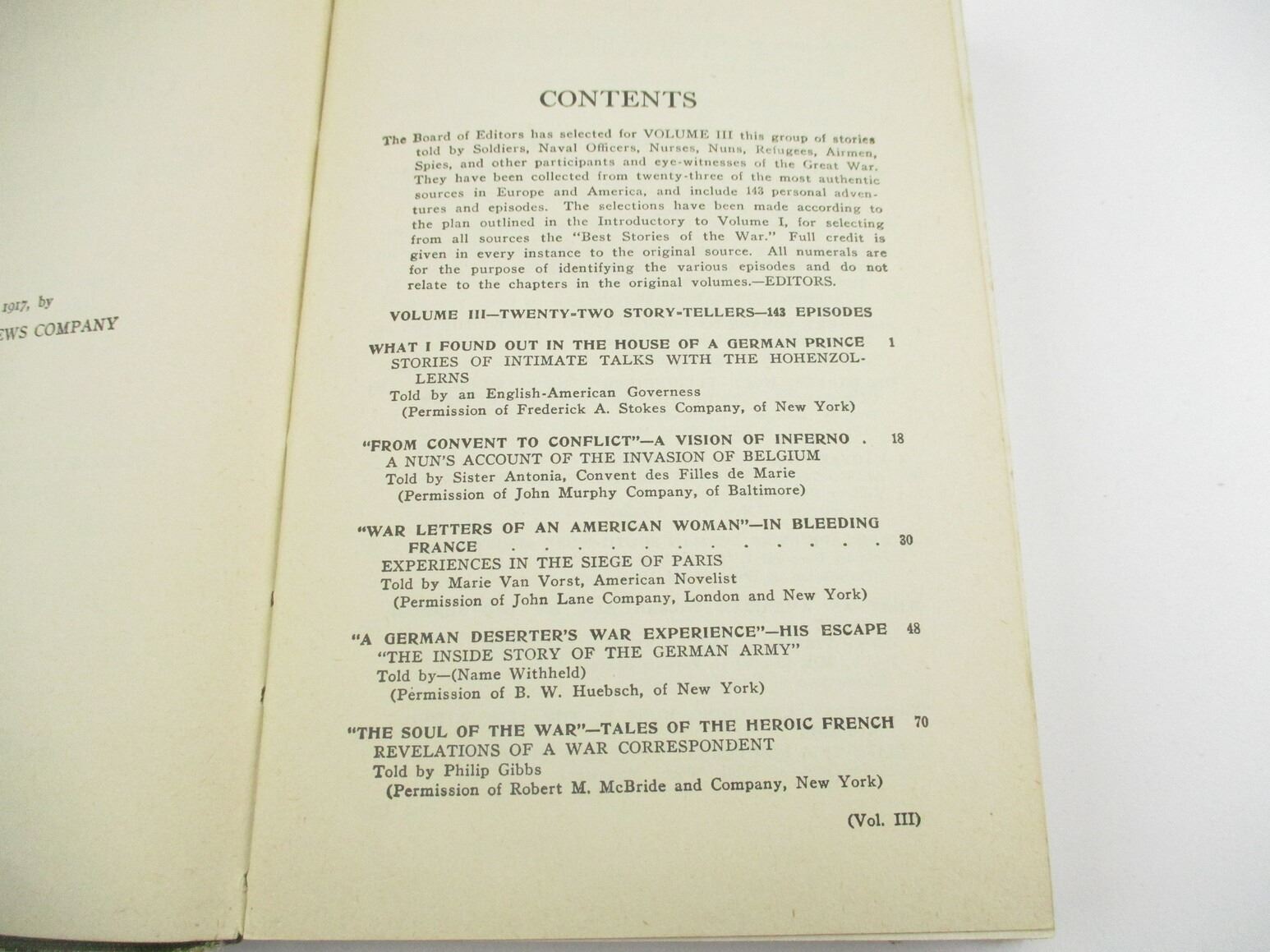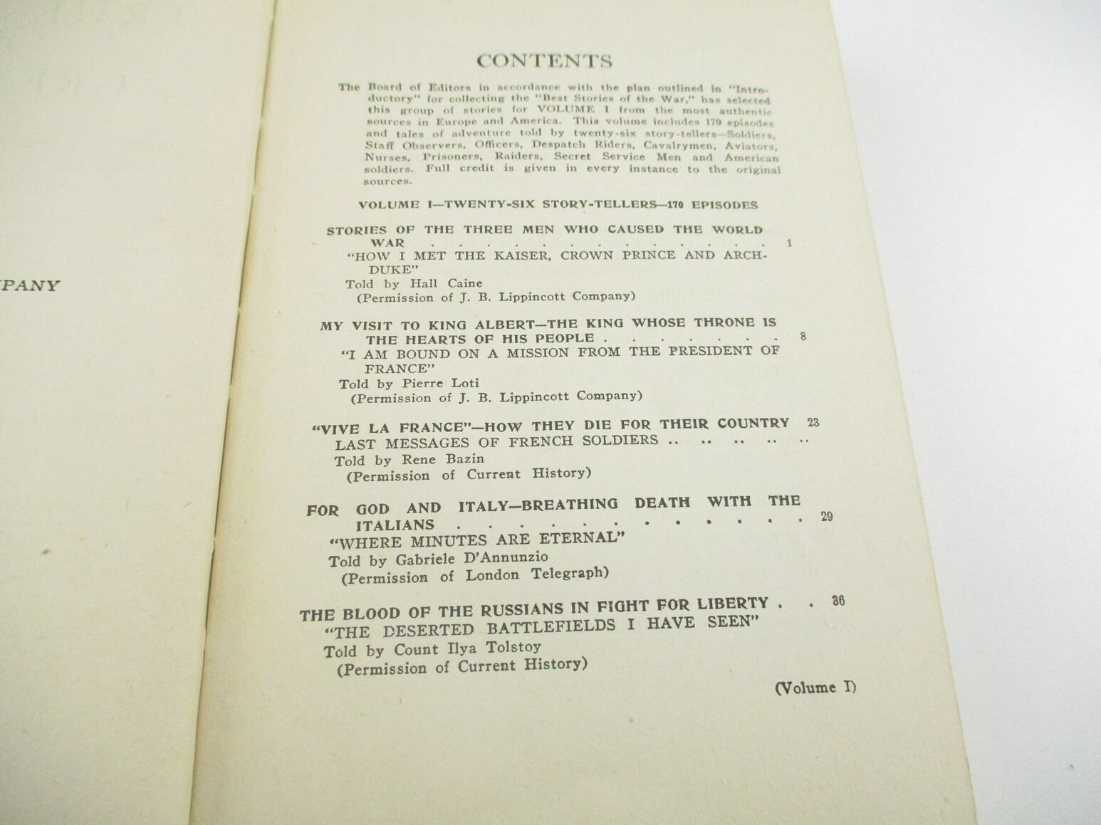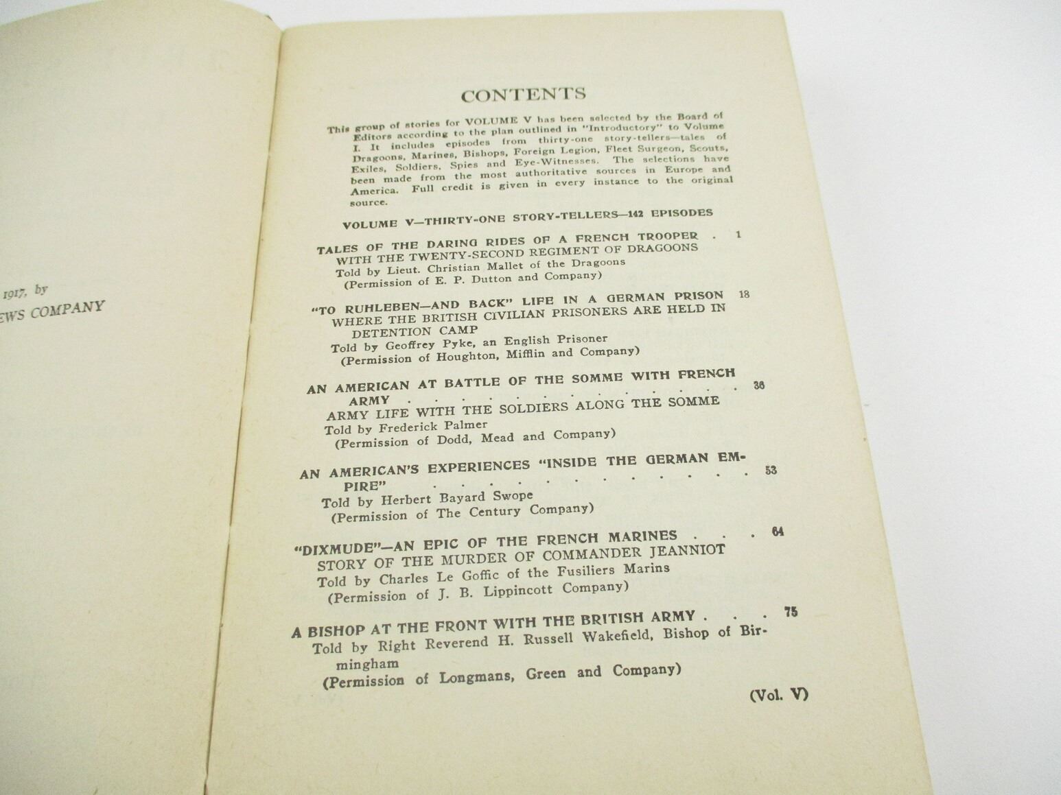 WORLD WAR I BOOK LOT, LOT OF 6: VOLUMES ONE TO SIX OF " TRUE STORIES OF THE GREAT WAR" EDITED BY FRANCIS TREVELYAN MILLER, 1917, SEE PHOTOS