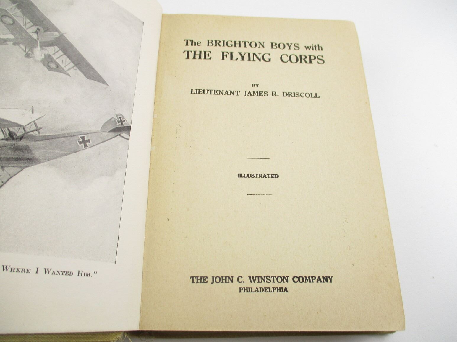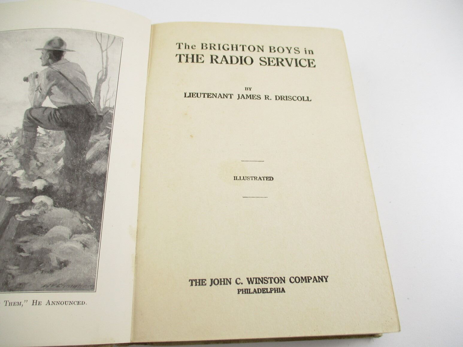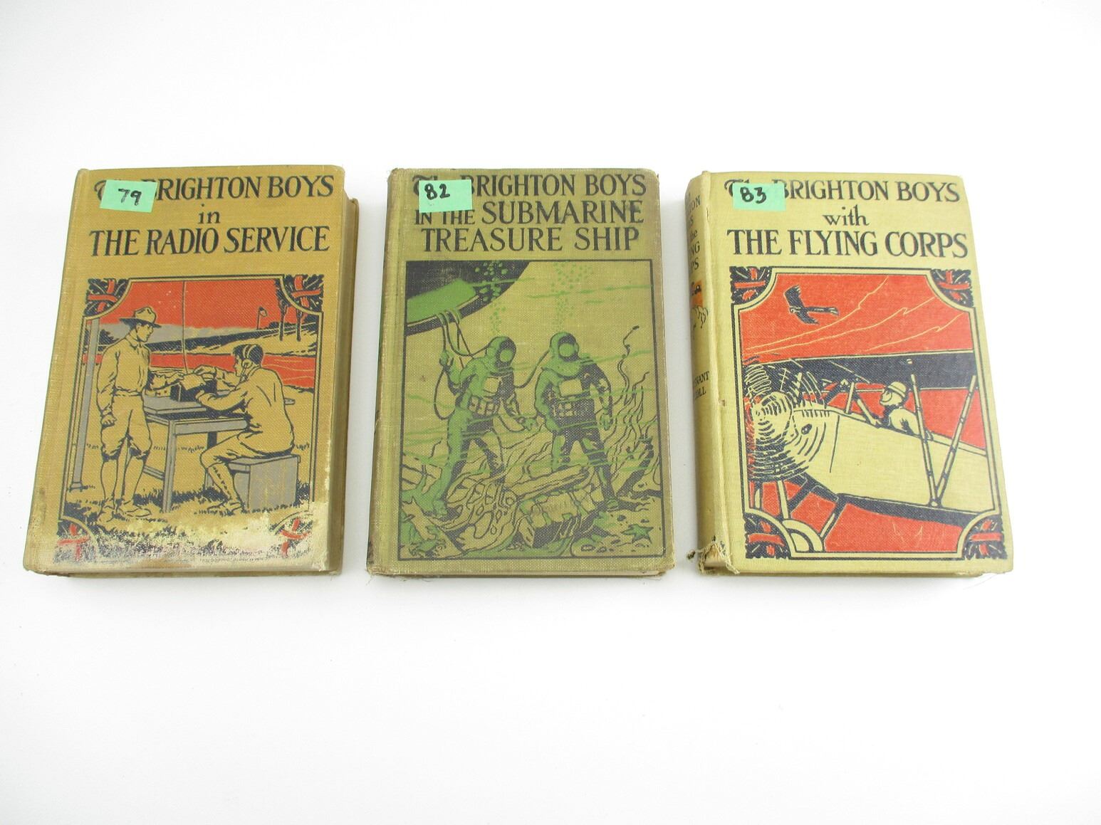 ASSORTED MILITARY BOOK LOT, LOT OF 3: (1) "THE BRIGHTON BOYS IN THE RADIO SERVICE" BY LT. JAMES R. DRISCOLL, 1918; (1) "THE BRIGHTON BOYS IN THE SUBMARINE TREASURE SHIP" BY LT. JAMES R. DRISCOLL, 1920; (1) " THE BRIGHTON BOYS WITH THE FLYING CORPS" BY LT. JAMES R. DRISCOLL, 1918, SEE PHOTOS