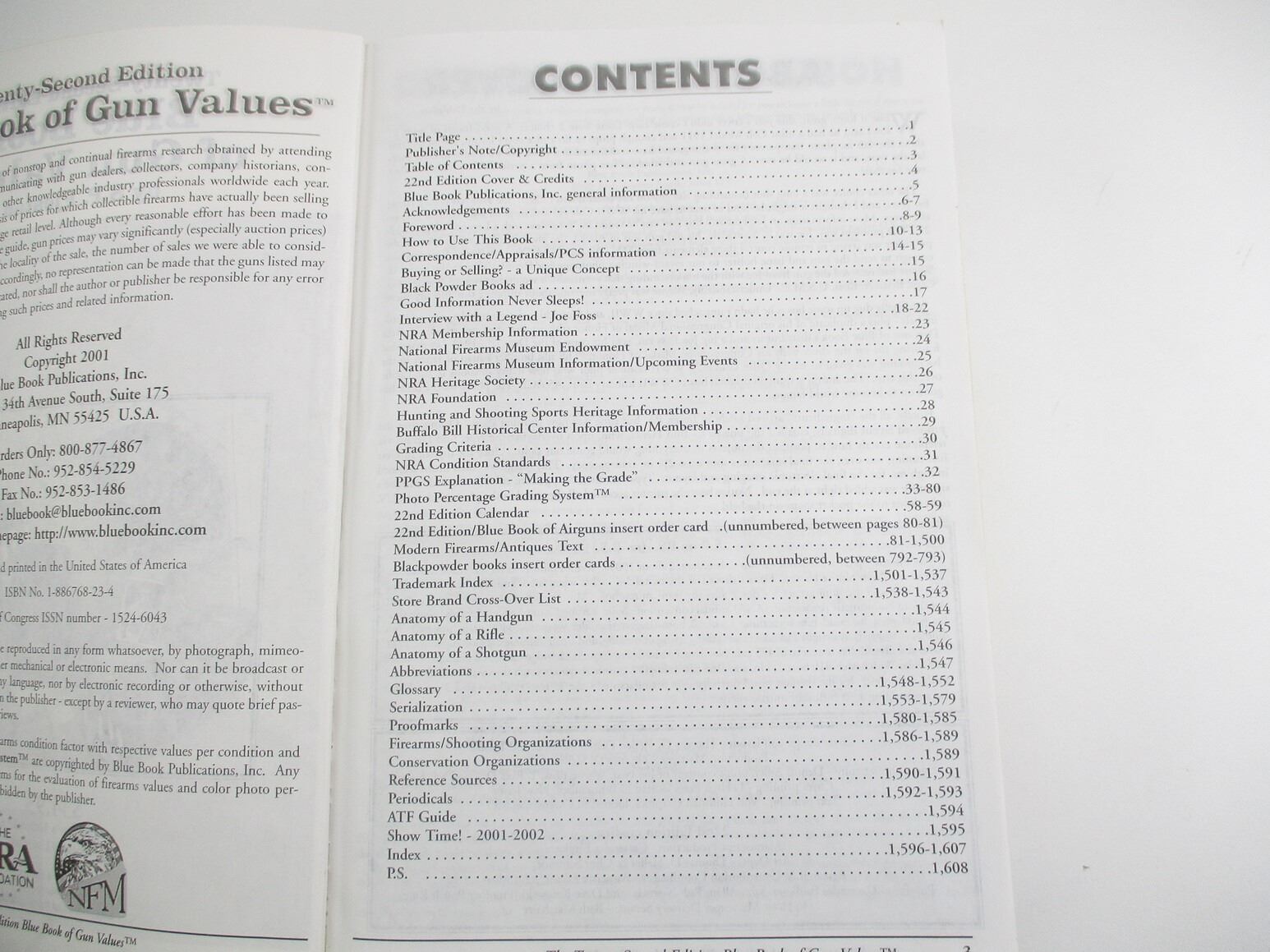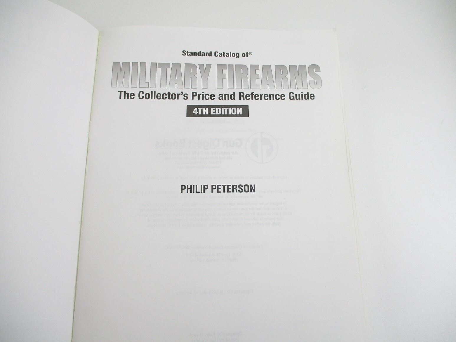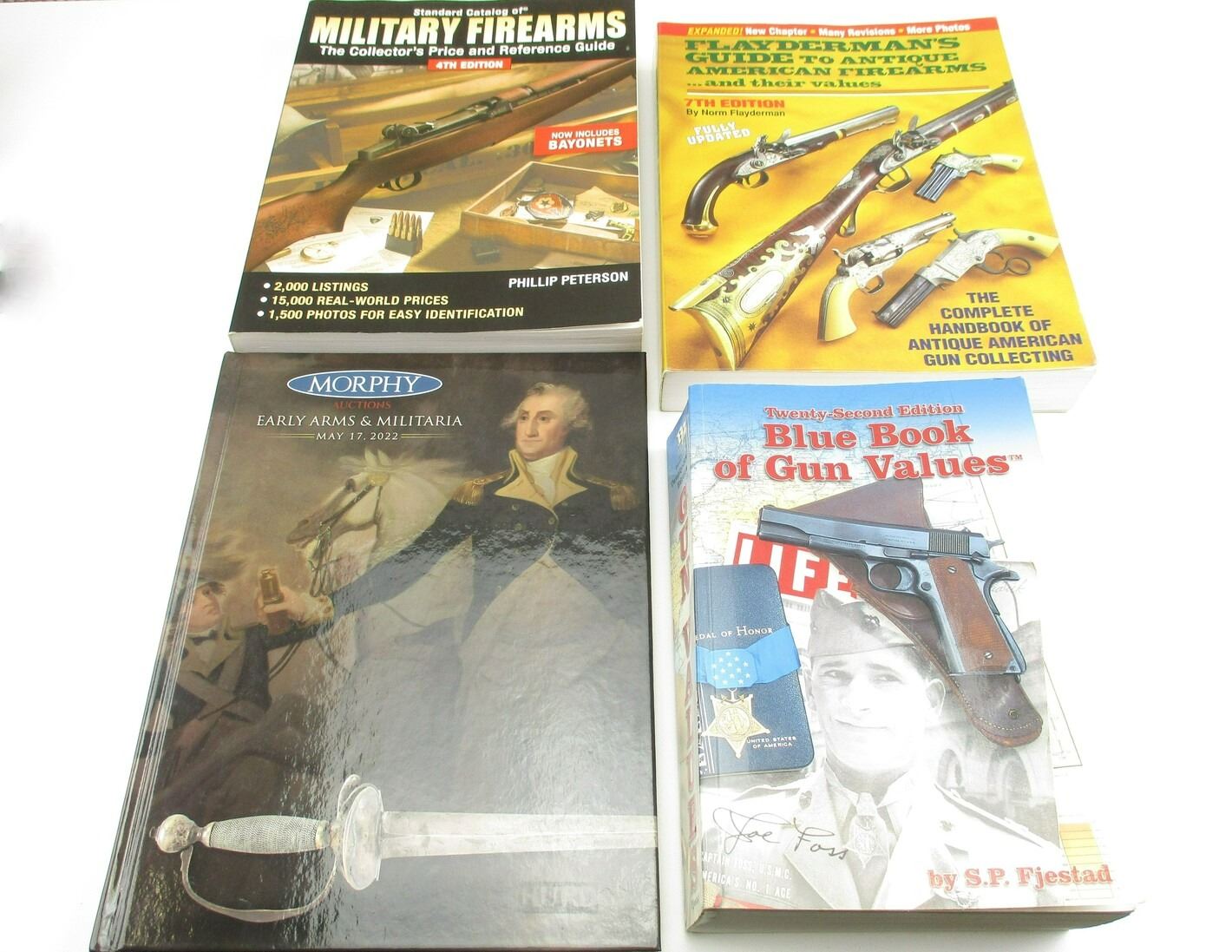 ASSORTED MILITARY BOOK LOT, LOT OF 3: (1) "STANDARD CATALOG OF MILITARY FIREARMS: THE COLLECTOR'S PRICE AND REFERENCE GUIDE" 4TH ED., BY PHILLIP PETERSON, 2007, ISBN 9780896894778; (1) "BLUE BOOK OF GUN VALUES" 22ND ED. BY S.P.FJESTAD, 2001, ISBN 9781886768239; (1) "FLAYDERMAN'S GUIDE TO ANTIQUE AMERICAN FIREARMS AND THEIR VALUES" 7TH ED. BY NORM FLAYDERMAN, 1998, ISBN 9780873491983; (1) "MORPHY AUCTIONS EARLY ARMS & MILITARIA" FROM MAY 17 2022, SEE PHOTOS