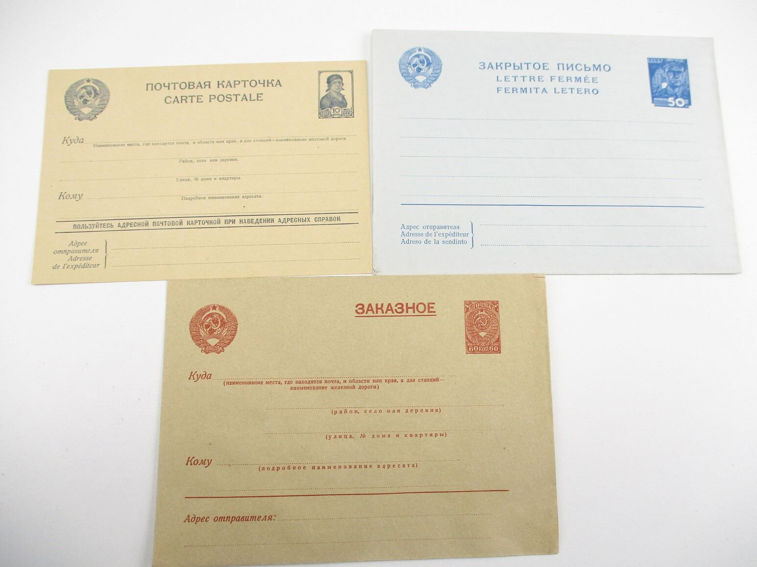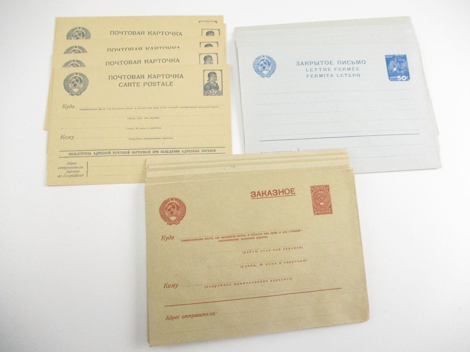 ASSORTED MILITARIA POSTCARD LOT, LOT OF 20 SOVIET POSTCARDS & ENVELOPES; (5) 10 KOPECK POSTCARDS; (5) 50 KOPECK ENVELOPES; (10) 60 KOPECK ENVELOPES, ALL ARE UNUSED, SEE PHOTOS