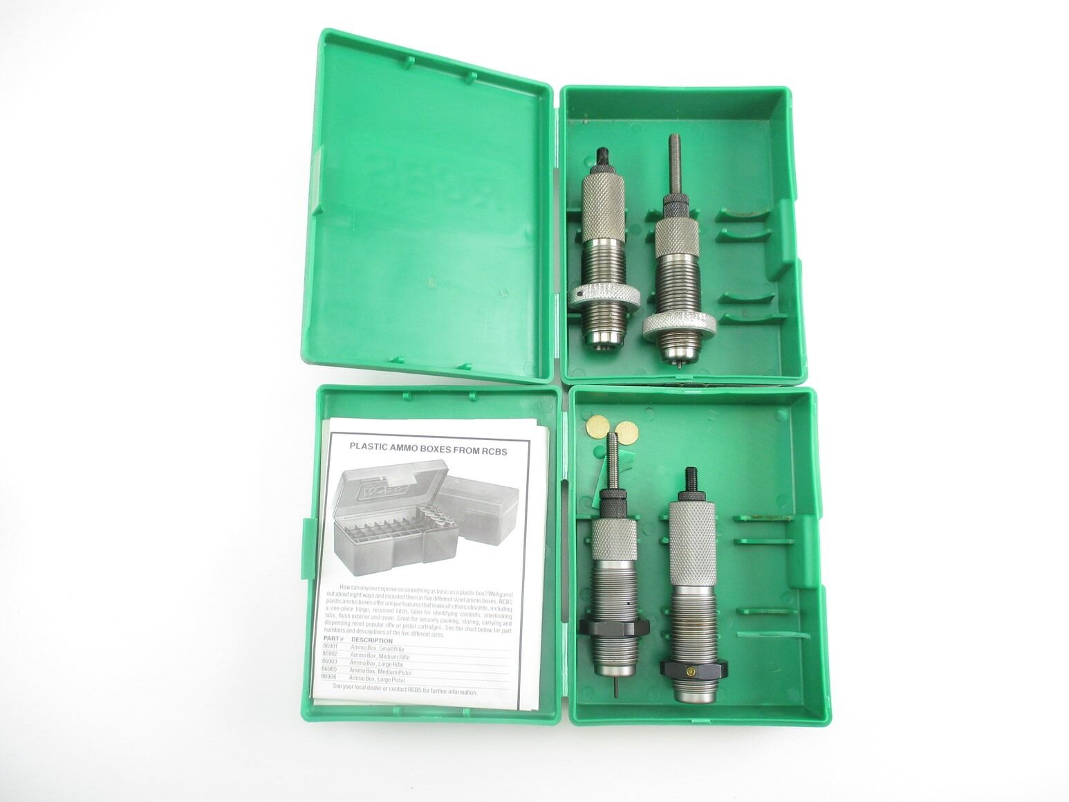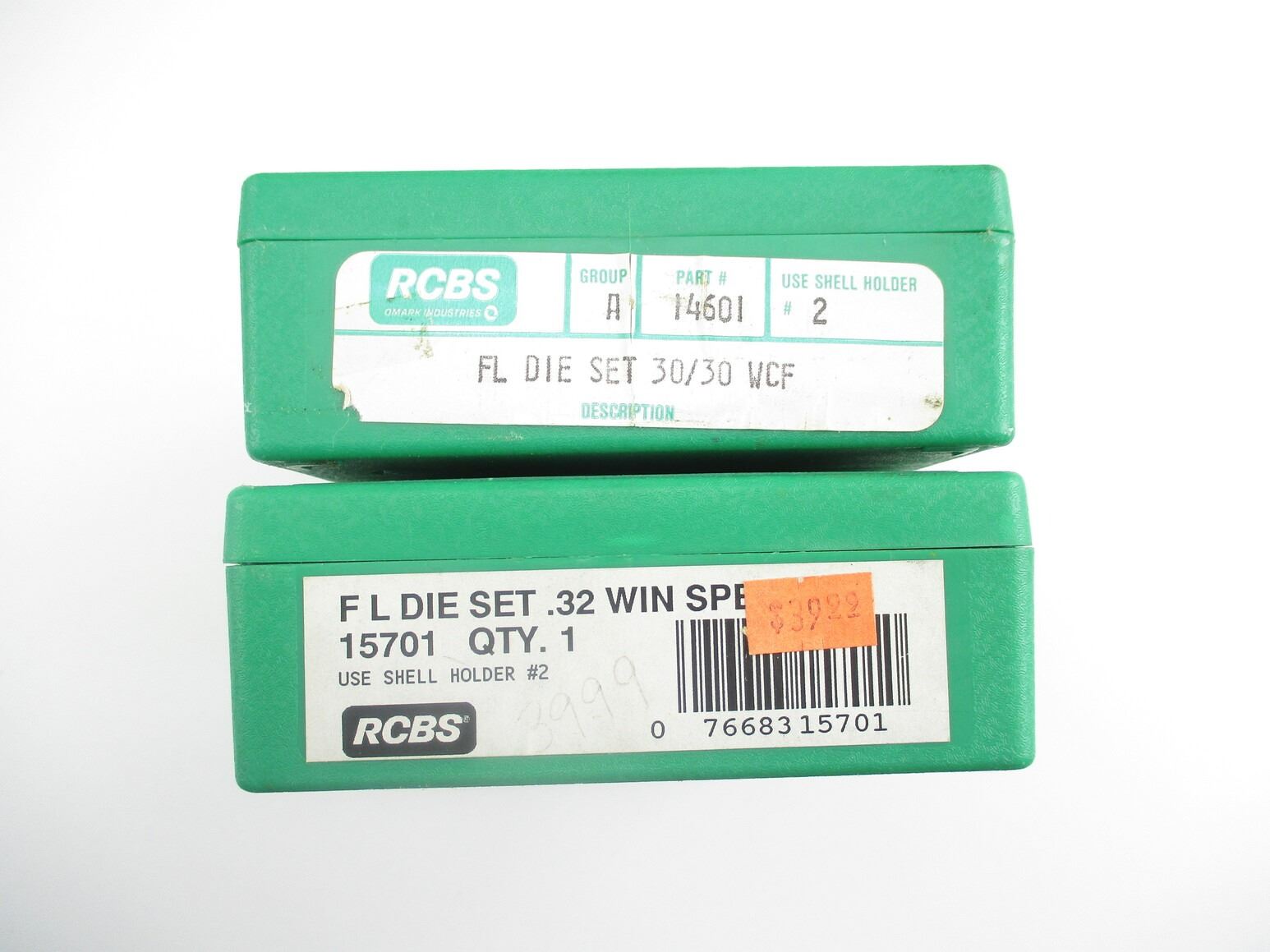 ASSORTED RCBS RELOADING DIES LOT, LOT INCLUDES; (1) 2-PIECE .30-30 WIN RELOADING DIES & (1) 2-PIECE .32 WIN SPECIAL RELOADING DIES. SEE PHOTOS.