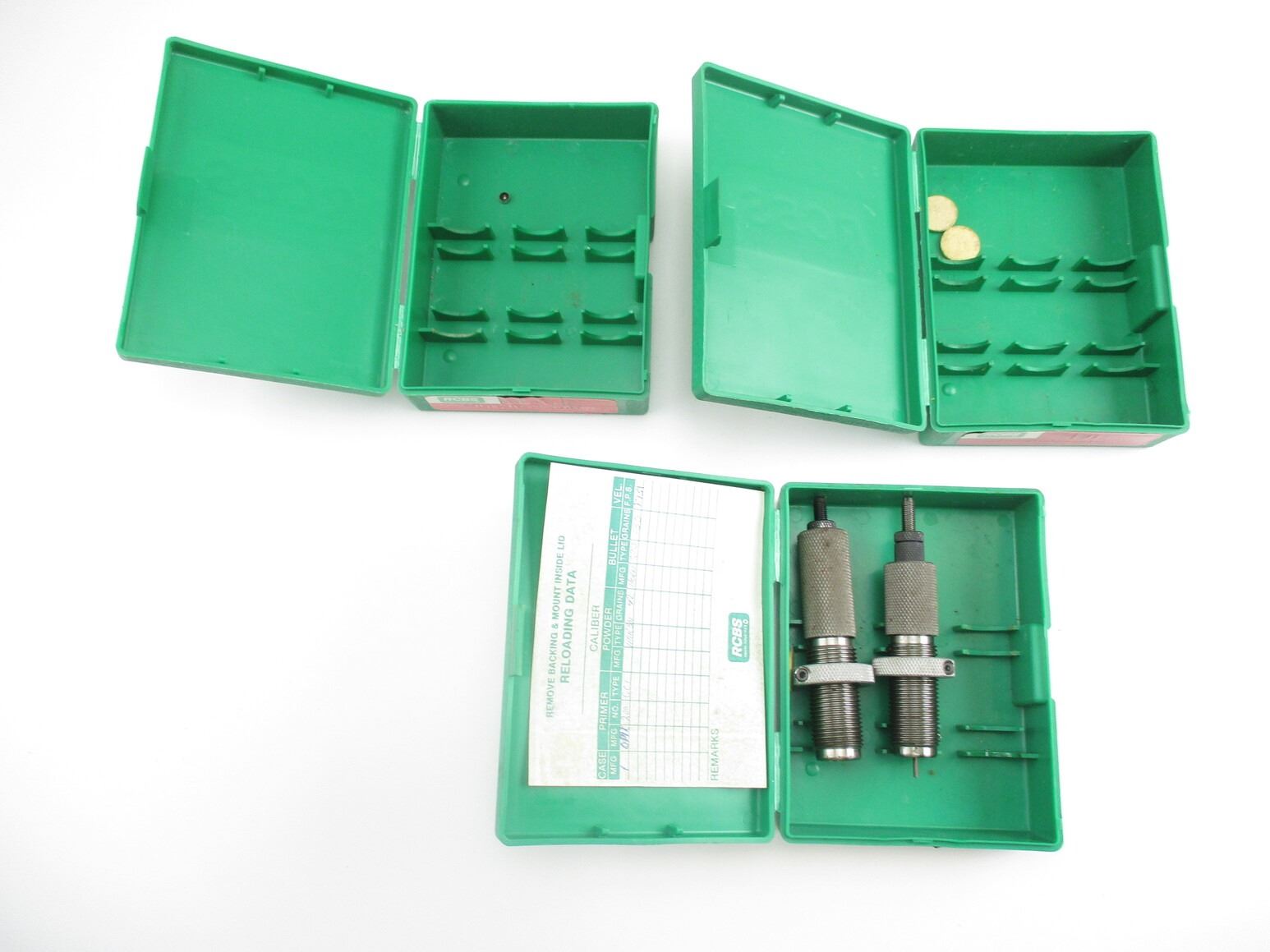 RCBS .270 WIN RELOADING DIES, LOT INCLUDES; (1) 2-PIECE RELOADING DIES & (2) EMPTY RELOADING DIES PLASTIC CASE. SEE PHOTOS.