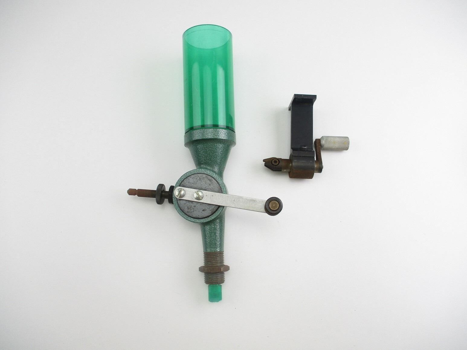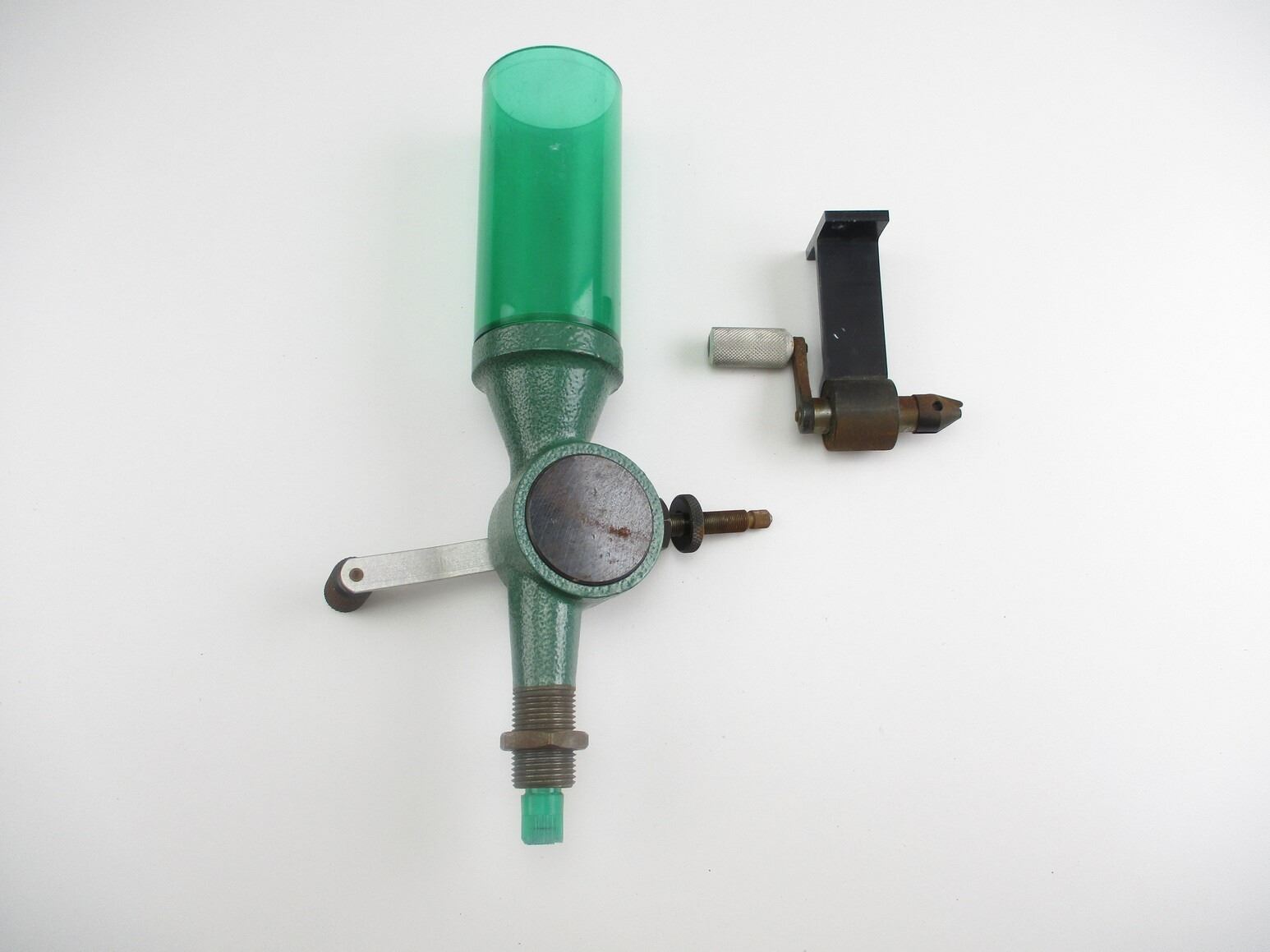 ASSORTED RELOADING LOT, LOT INCLUDES: (1) RCBS POWDER MEASURE, MISSING CAP & (1) UNKNOWN DE-BURRING TOOL. SEE PHOTOS.