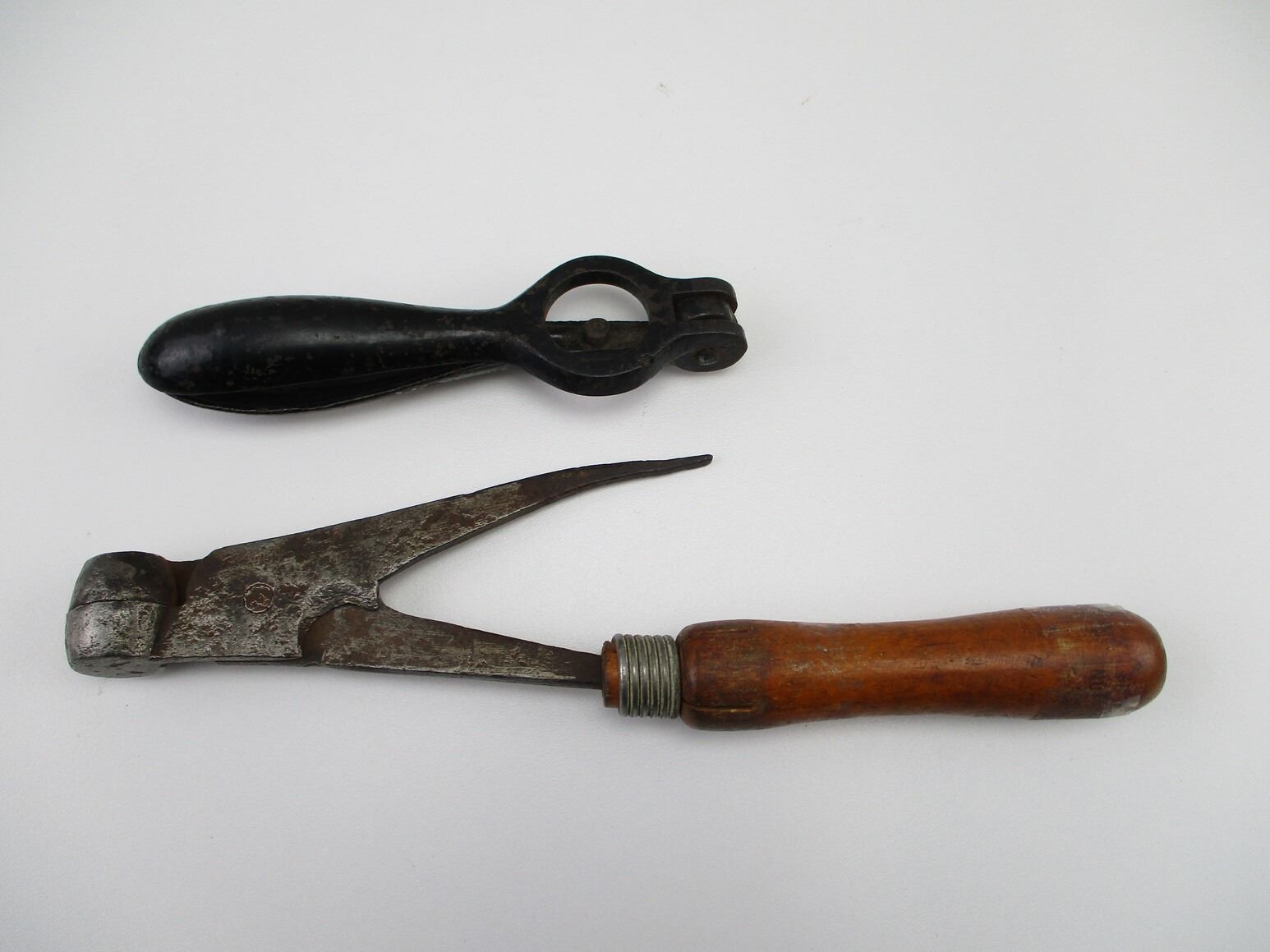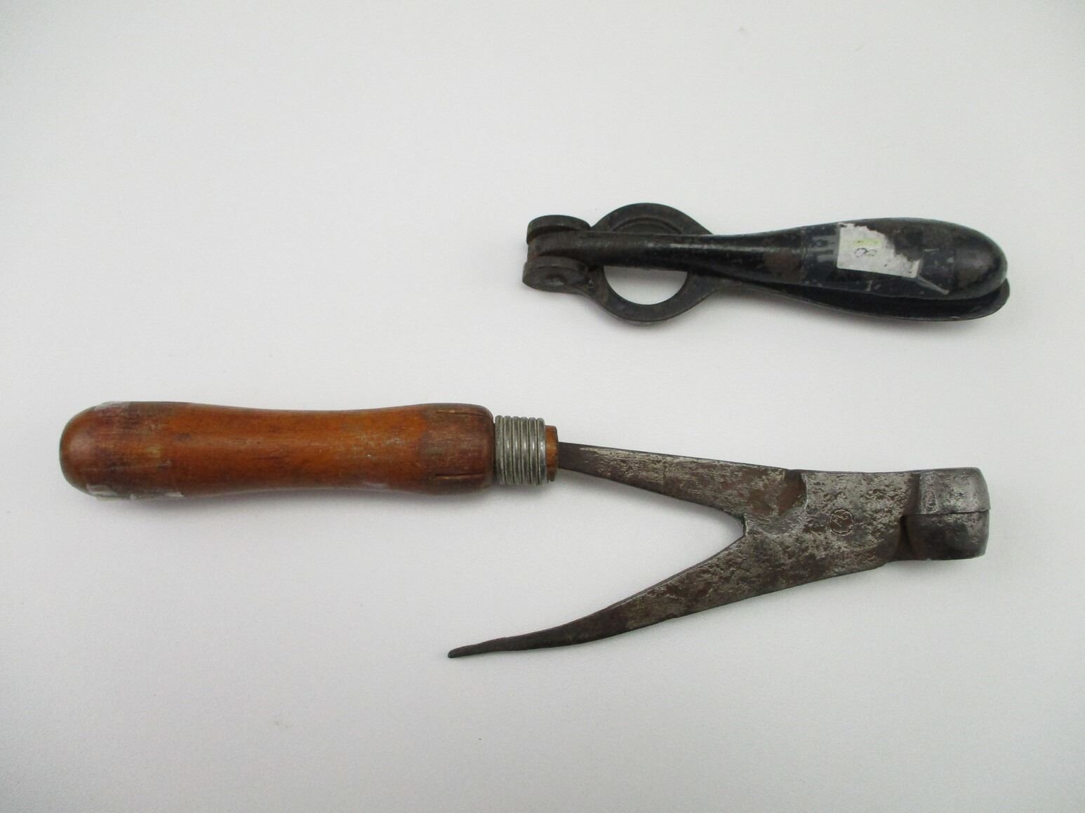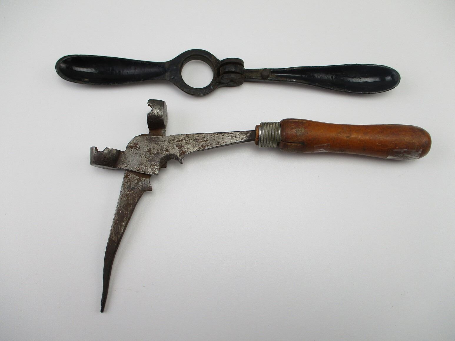 ASSORTED VINTAGE RELOADING ACCESSORIES LOT, LOT INCLUDES; (1) ANTIQUE DISSTON CANADA NO.2 BULLET MOLD WITH ONE WOOD HANDLE & (1) 12 GAUGE PRIMING TOOL. SEE PHOTOS.