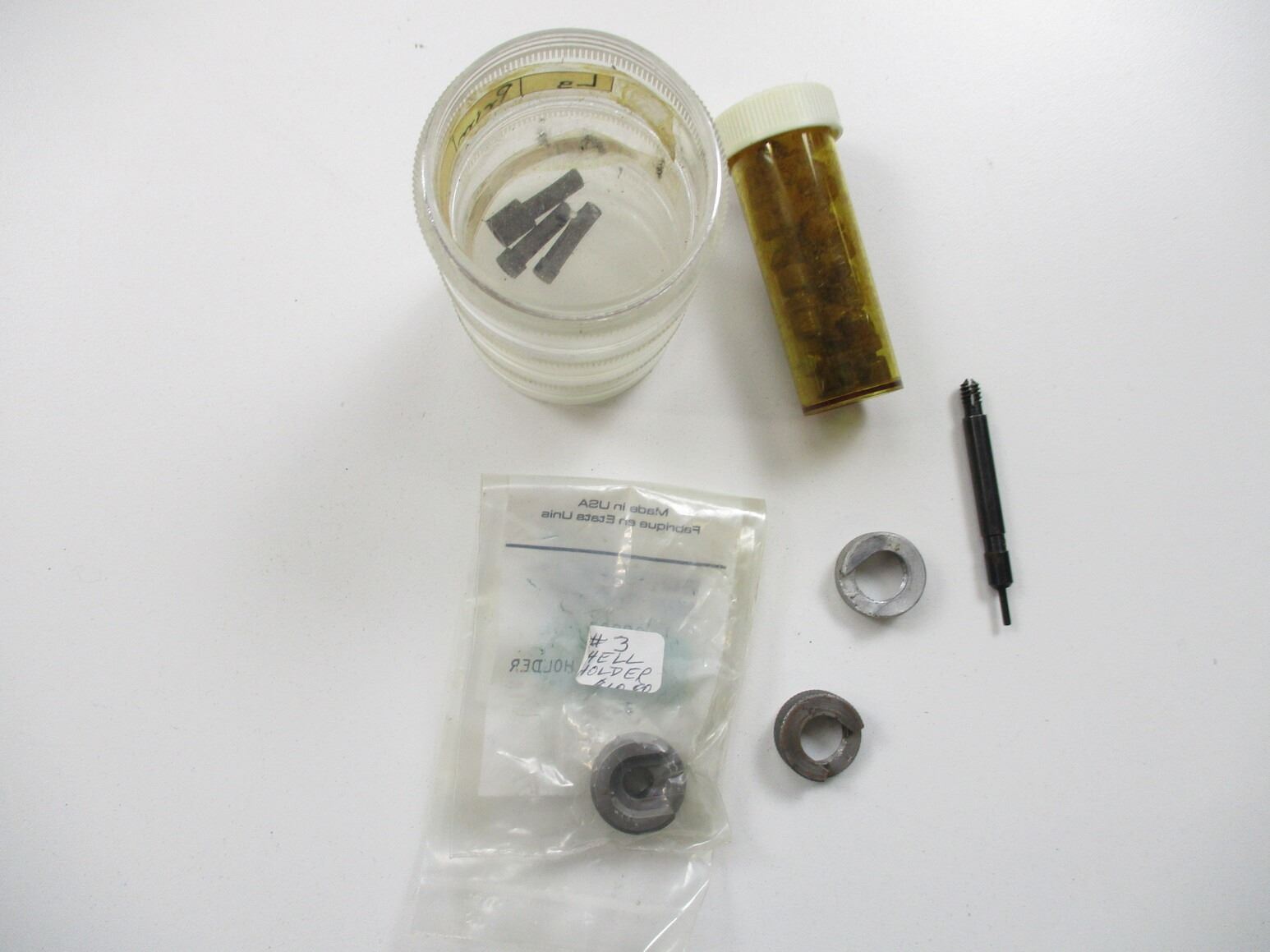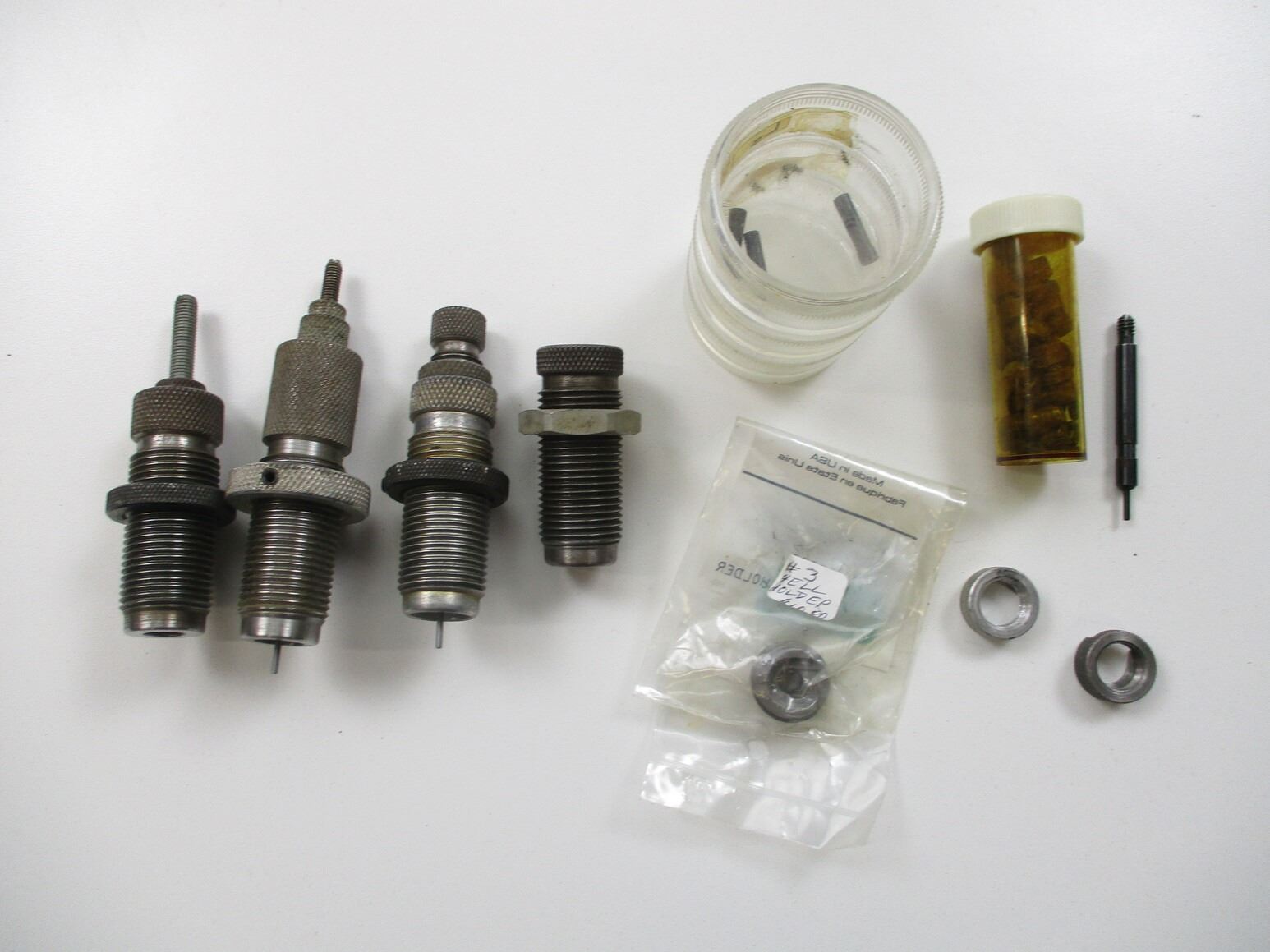ASSORTED RELOADING LOT, LOT INCLUDES; (1) 1-PIECE RCBS 6MM SIZING DIE, (1) 3-PIECE RCBS .38 SPL RELOADING DIES, (1) RCBS #3 SHELL HOLDER, (1) LEE .22-250 CASE LENGTH GAUGE, VARIOUS RELOADING PARTS, ETC. SEE PHOTOS.
