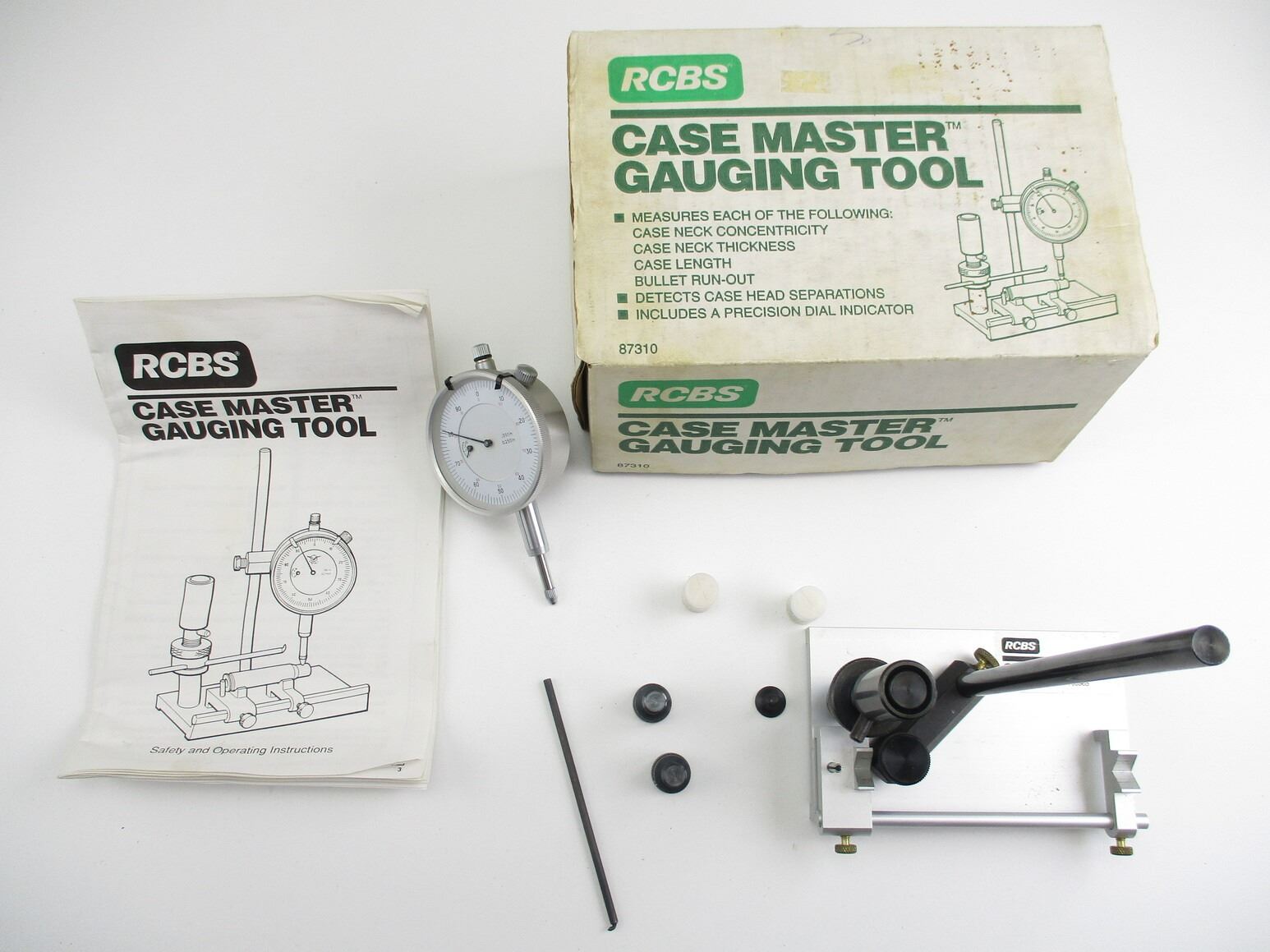 RCBS CASE MASTER GAUGING TOOL, LOT INCLUDES; (1) GAUGING TOOL KIT, IN ORIGINAL BOX, MAY NOT BE COMPLETE. SEE PHOTOS.