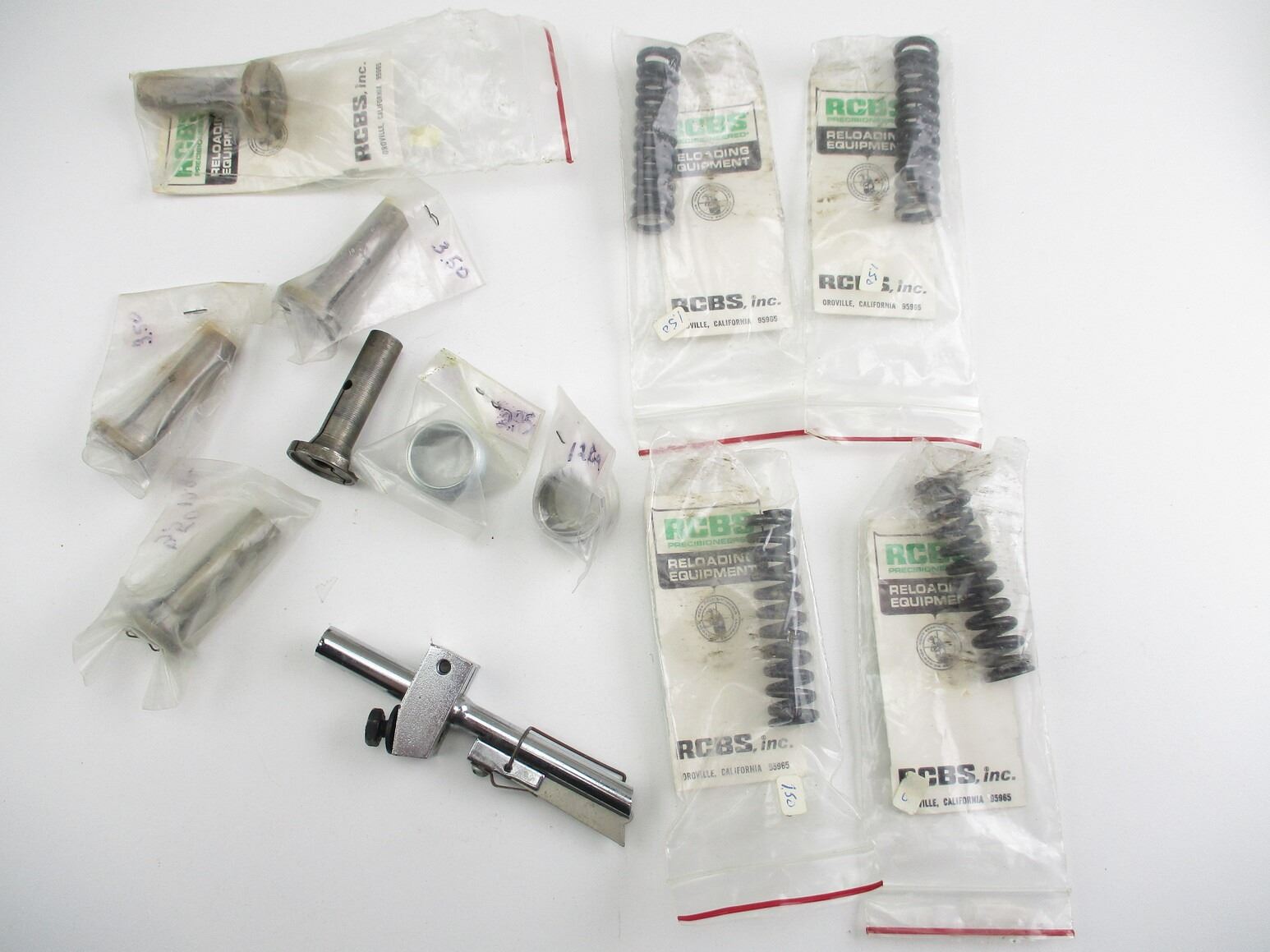 ASSORTED RELOADING ACCESSORIES LOT, LOT INCLUDES; (4) SPRINGS FOR 12 GAUGE SHELL SAVER, (5) VARIOUS COLLETS, ETC. SEE PHOTOS.