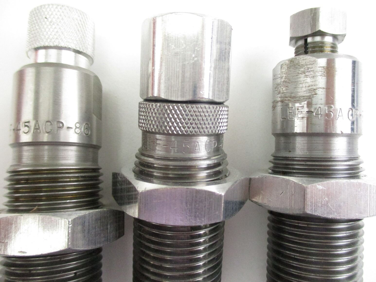 LEE .45 ACP / .45 AUTO RIM RELOADING DIES, LOT INCLUDES; (1) 3-PIECE RELOADING DIES WITH #2 SHELL HOLDER. SEE PHOTOS.
