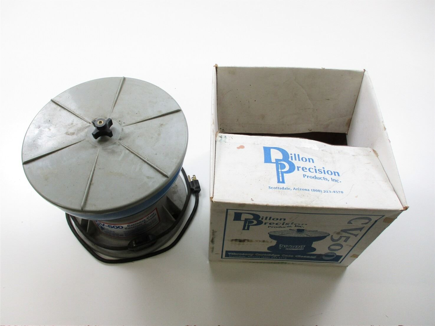 DILLON TUMBLER, LOT INCLUDES; (1) DILLON CV-500 TUMBLER WITH MEDIA, IN ORIGINAL PACKAGING, UN-TESTED. SEE PHOTOS.