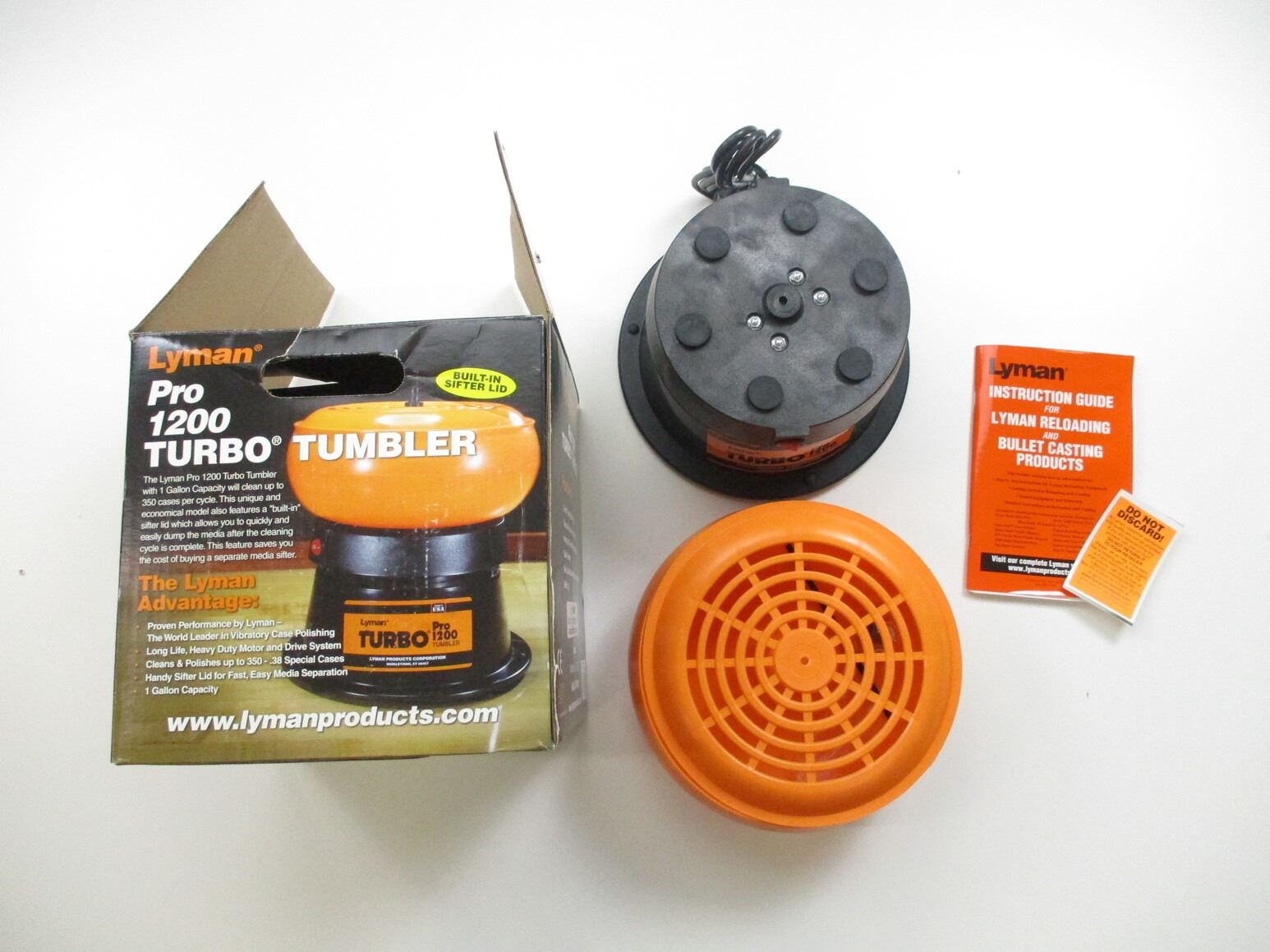 LYMAN MEDIA / BRASS SEPARATOR, LOT INCLUDES; (1) PRO 1200 TURBO TUMBLER, IN ORIGINAL PACKAGING, UN-TESTED. SEE PHOTOS.
