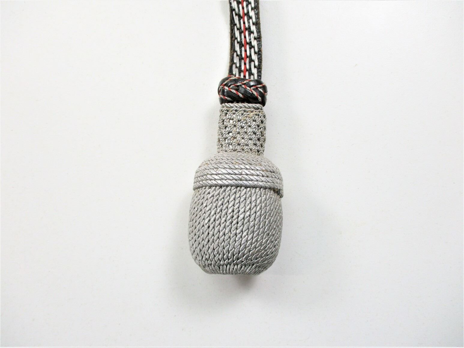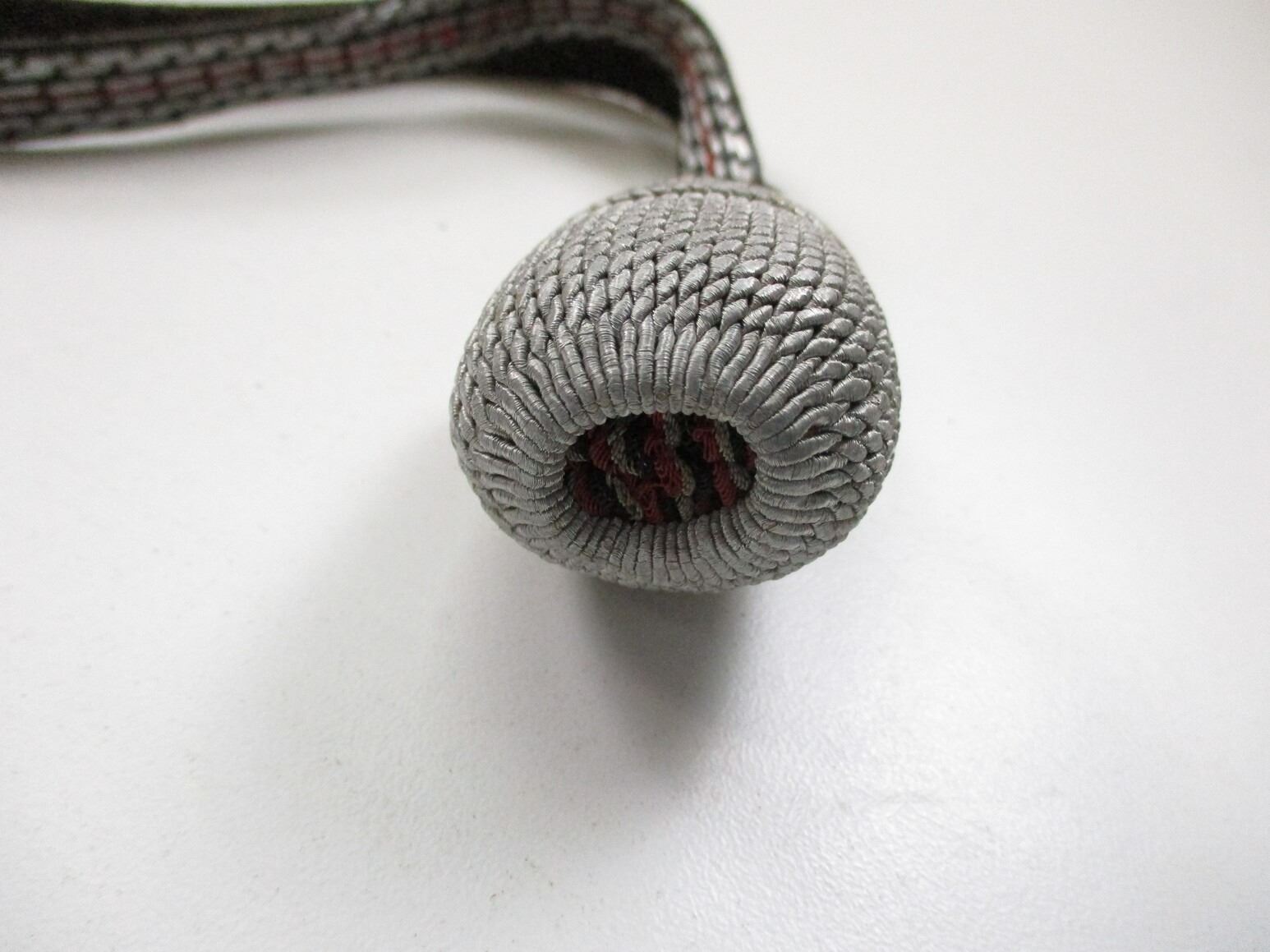 WWII GERMAN POLICE OFFICERS SWORD KNOT, (1) SILVER THREAD WITH RED CENTER, SILVER KNOT WITH SILVER / BLACK / RED BOTTOM, INCLUDES SLIDE, OAL APPROX. 17". SEE PHOTOS.