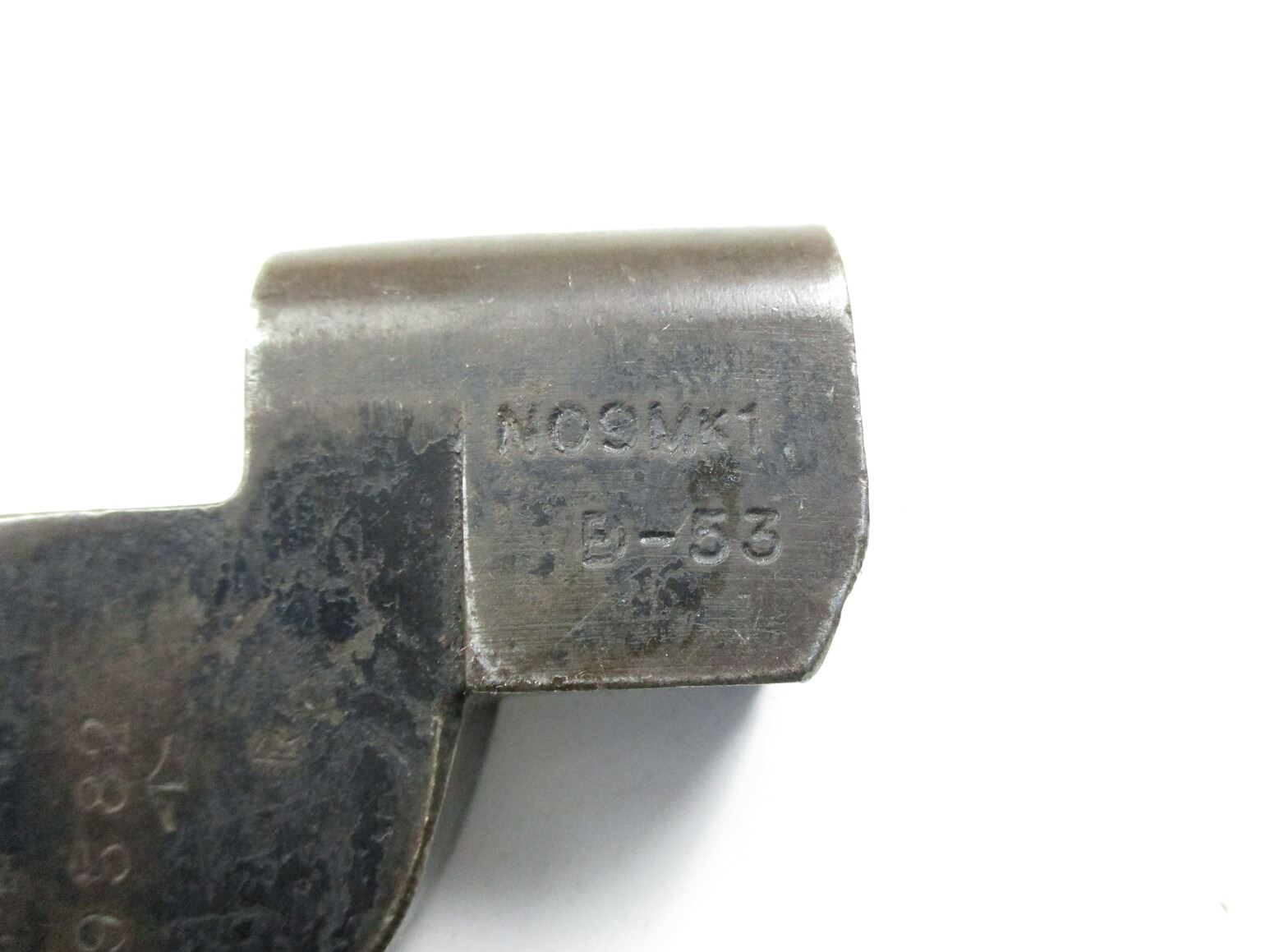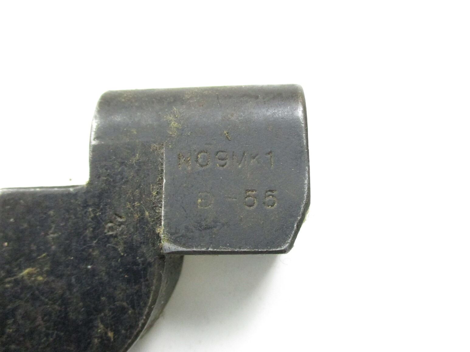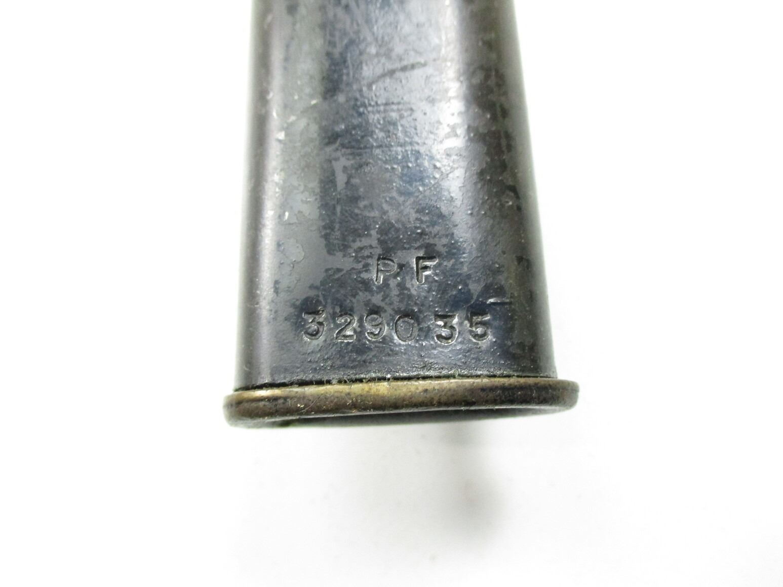 BRITISH NO.9 MKI BAYONET LOT, (2) FITS .303 LEE ENFIELD NO.4 MKI RIFLES, INCLUDES; (1) RICASSO MARKED: "NO9 MKI" OVER "D-53", "PF, 309583" & BROAD ARROW, NO SCABBARD & (1) I1) RICASSO MARKED: "NO9 MKI" OVER "D-55", METAL SCABBARD MARKED: "PF, 329035". EACH BLADE APPROX. 8" & OAL APPROX. 10 1/8".