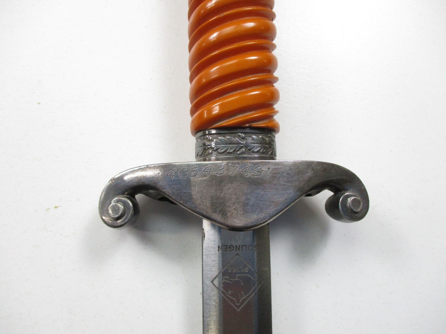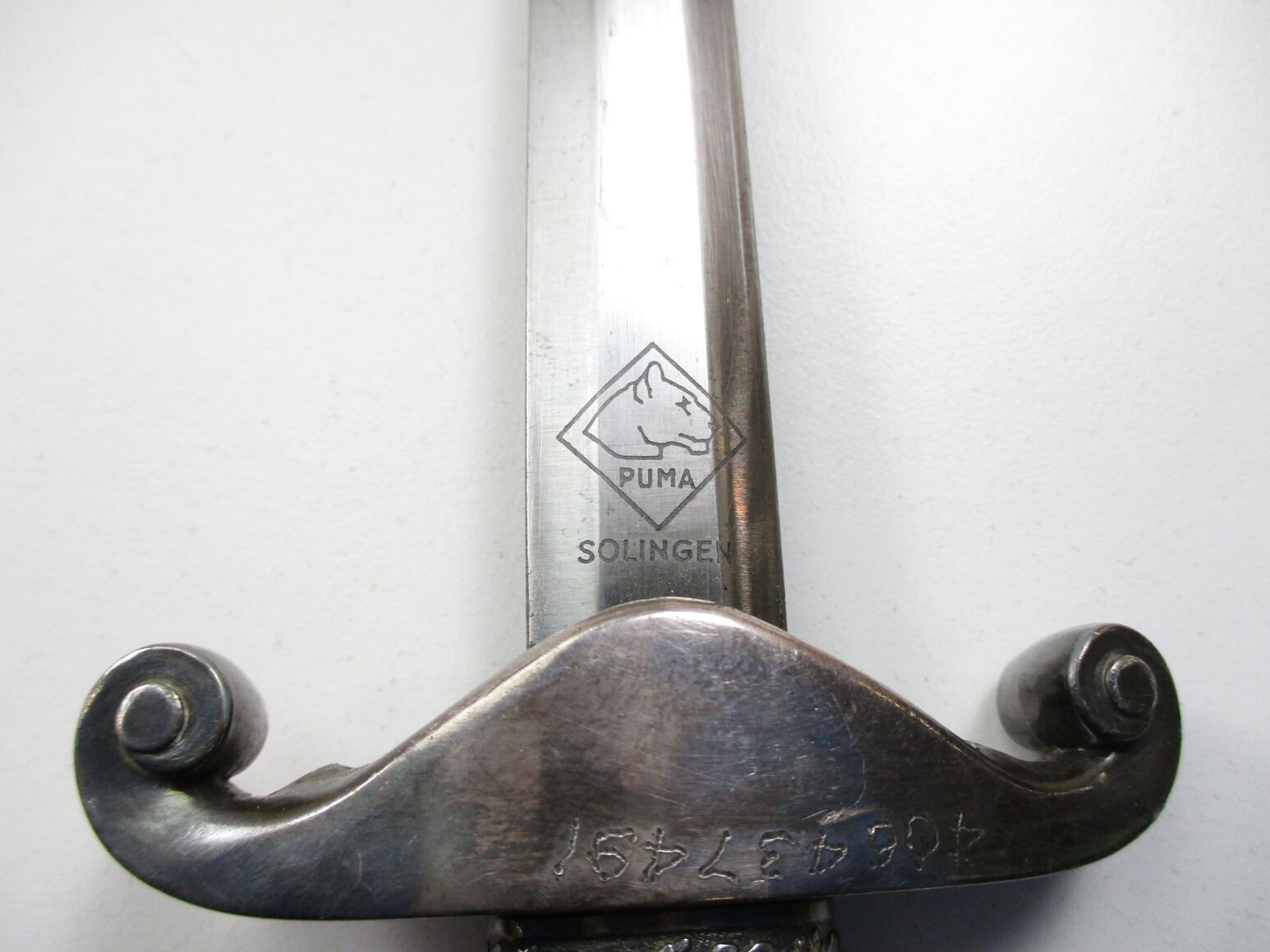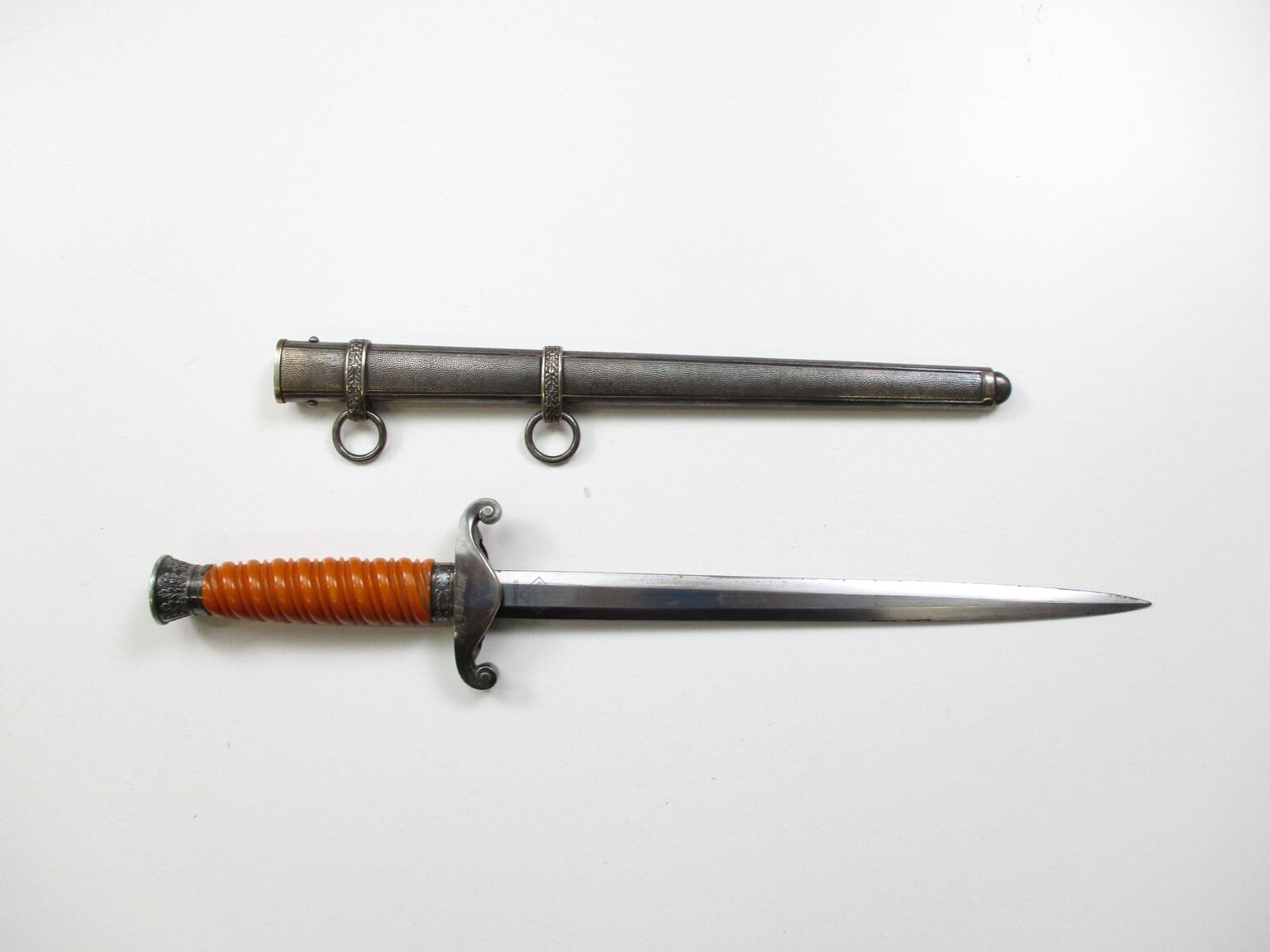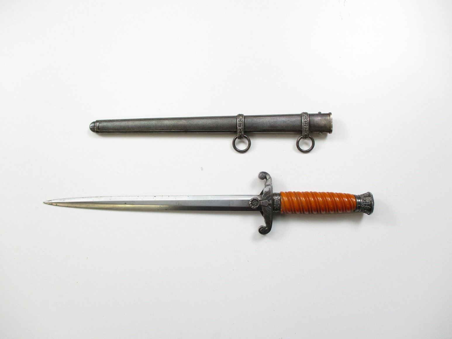 WWII GERMAN THIRD REICH OFFICERS HEER DAGGER, (1) BLADE MARKED: "PUMA, SOLINGEN", CROSS-PIECE MARKED: "406437491" & WEHRMACHT EAGLE / OAK LEAF RING, WRAPPED GRIP MISSING WIRE, METAL POMMEL, METAL SCABBARD WITH HANGERS, BLADE APPROX. 10 1/8" & OAL APPROX. 14 5/8".