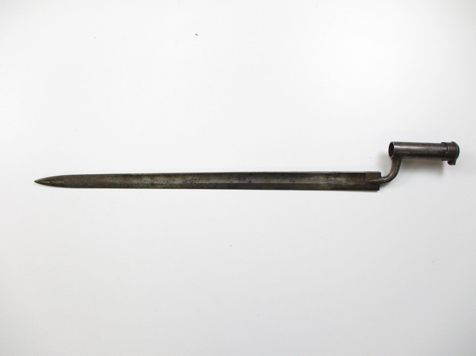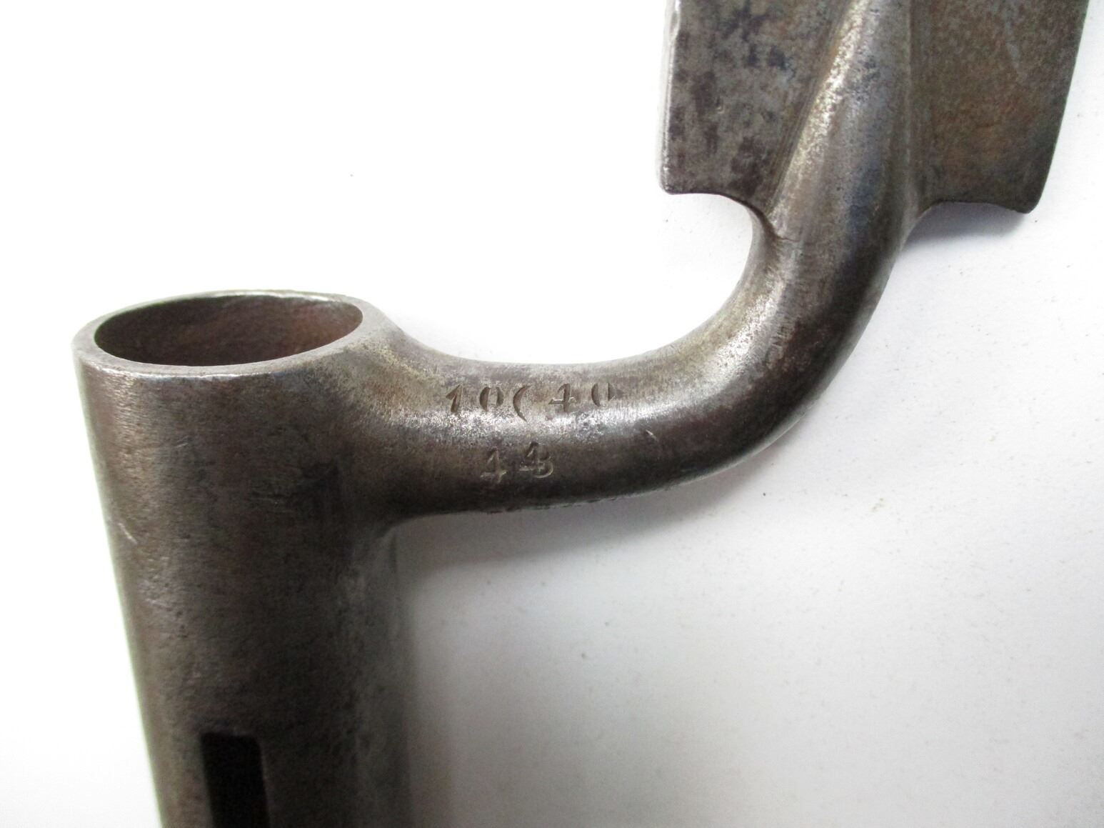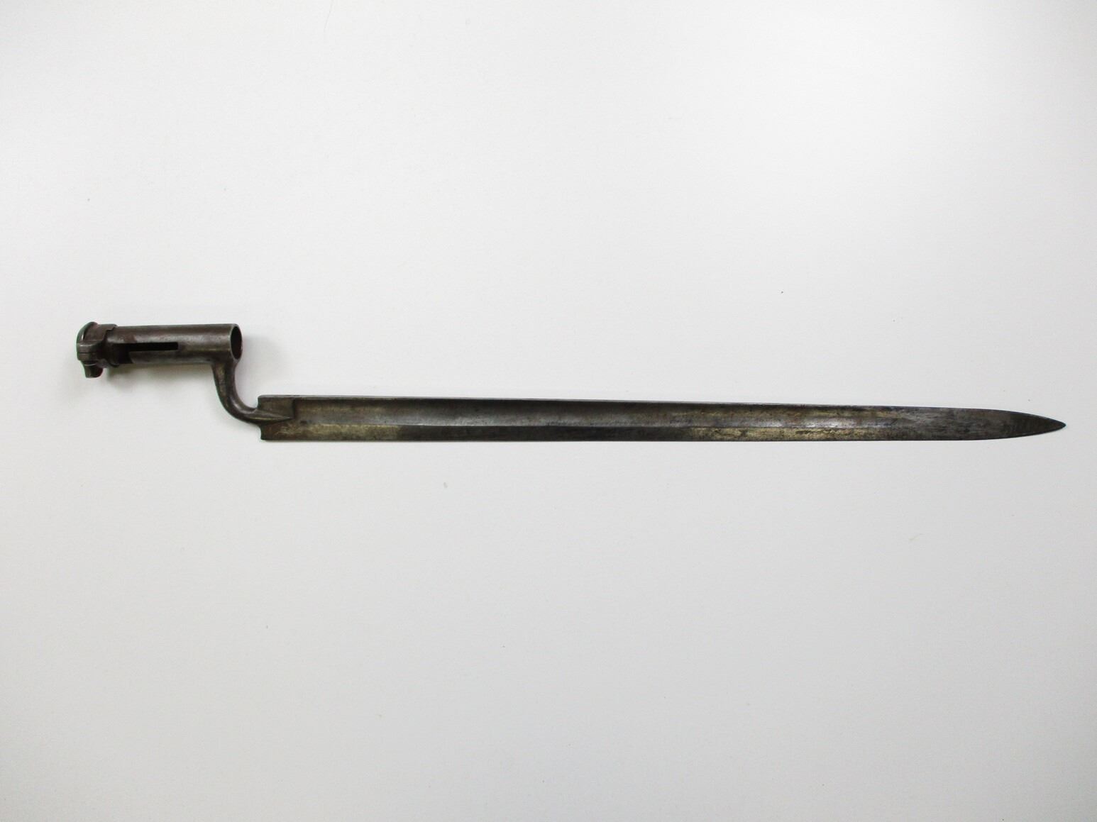 SCARCE AUSTRIAN M1849 SOCKET SABER BAYONET, (1) FITS M1849 AUGUSTIN JAGER & PIONEER RIFLES, SOCKET MARKED: "10, 40, 44", SPINE WITH UN-CLEAR MARKINGS, NO SCABBARD, BLADE APPROX. 23.25" & OAL APPROX. 28 1/8".