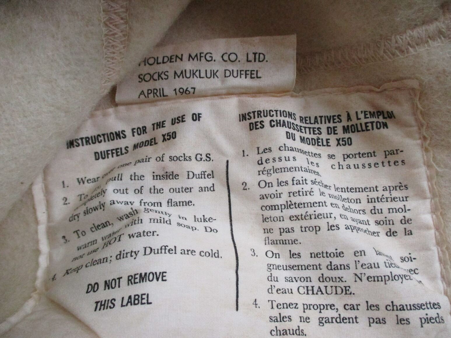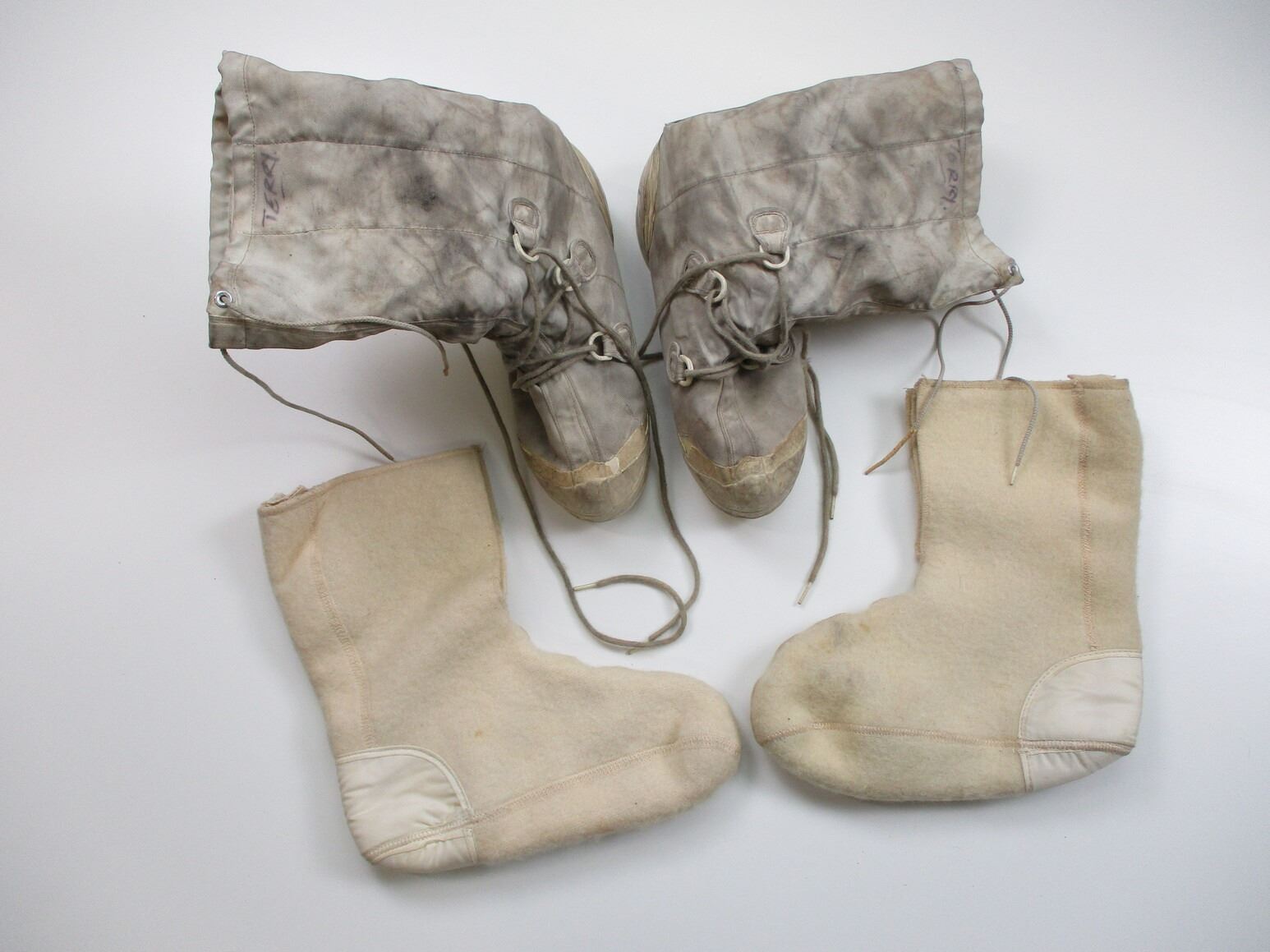 CANADIAN MILITARY SNOW BOOTS AND BOOT LINERS LOT, LOT INCLUDES; (1) PAIR OF MUKLUKS, MARKED: "10 NAR" & (2) SETS OF BOOT LINERS. SEE PHOTOS.