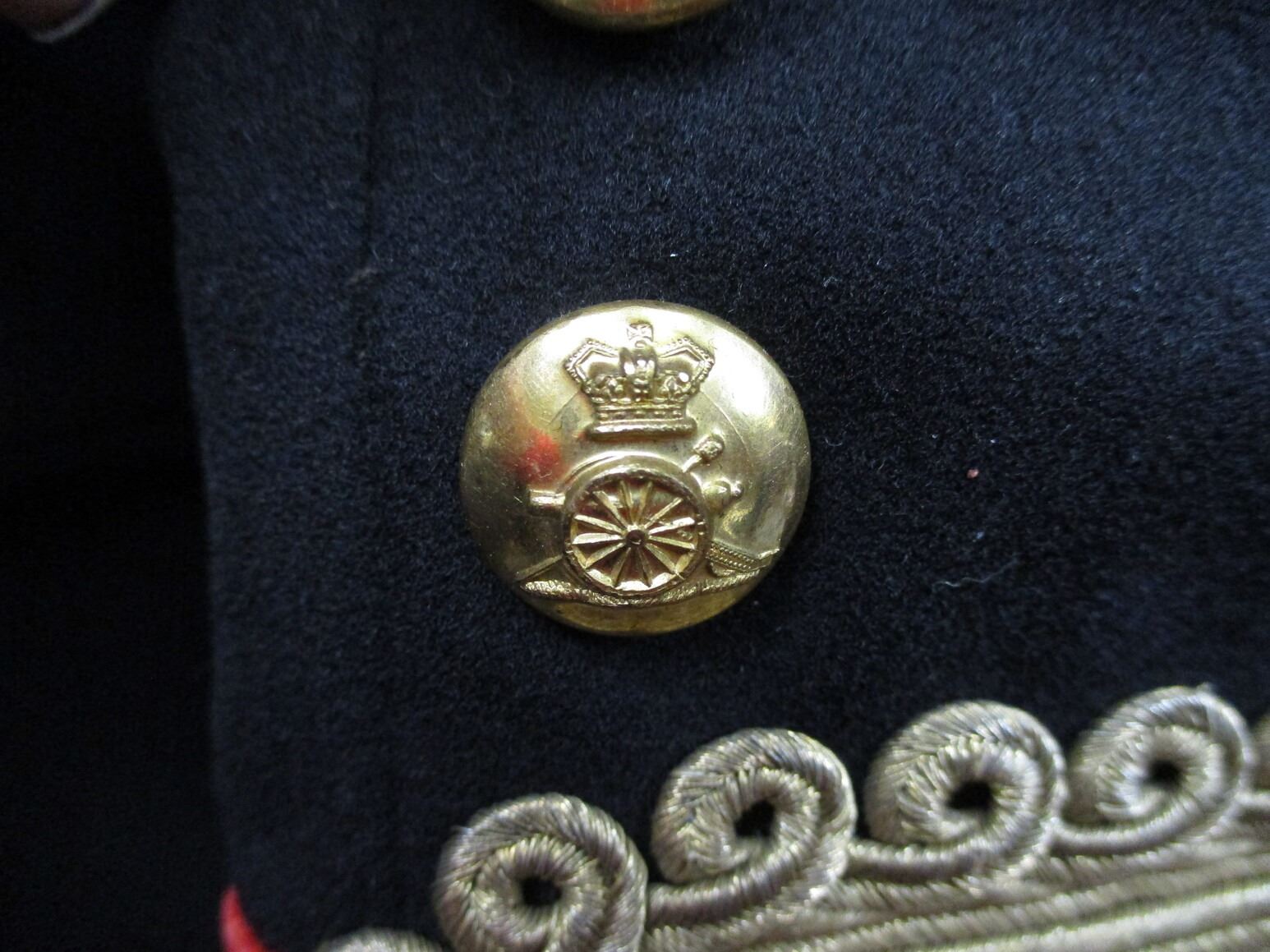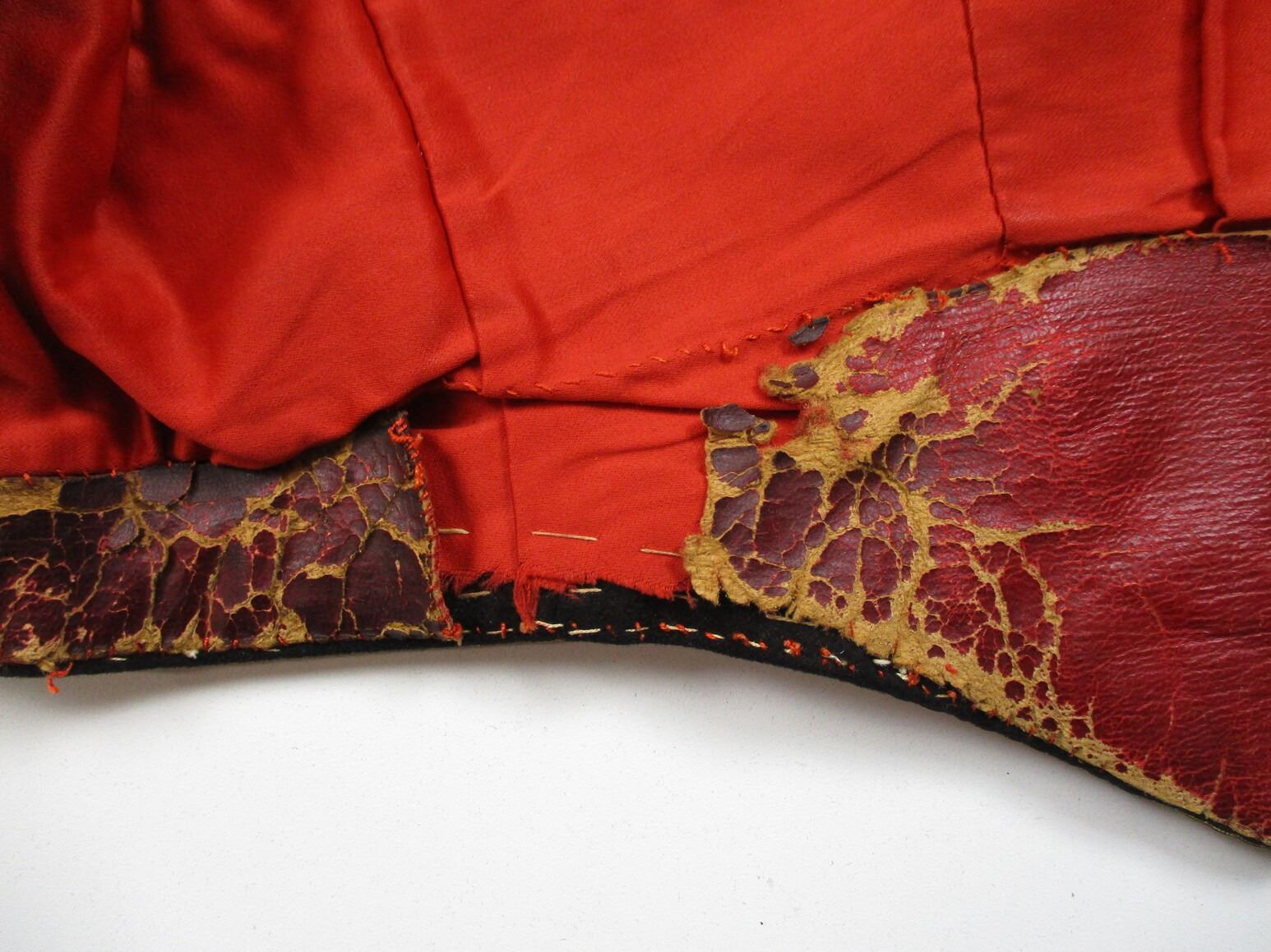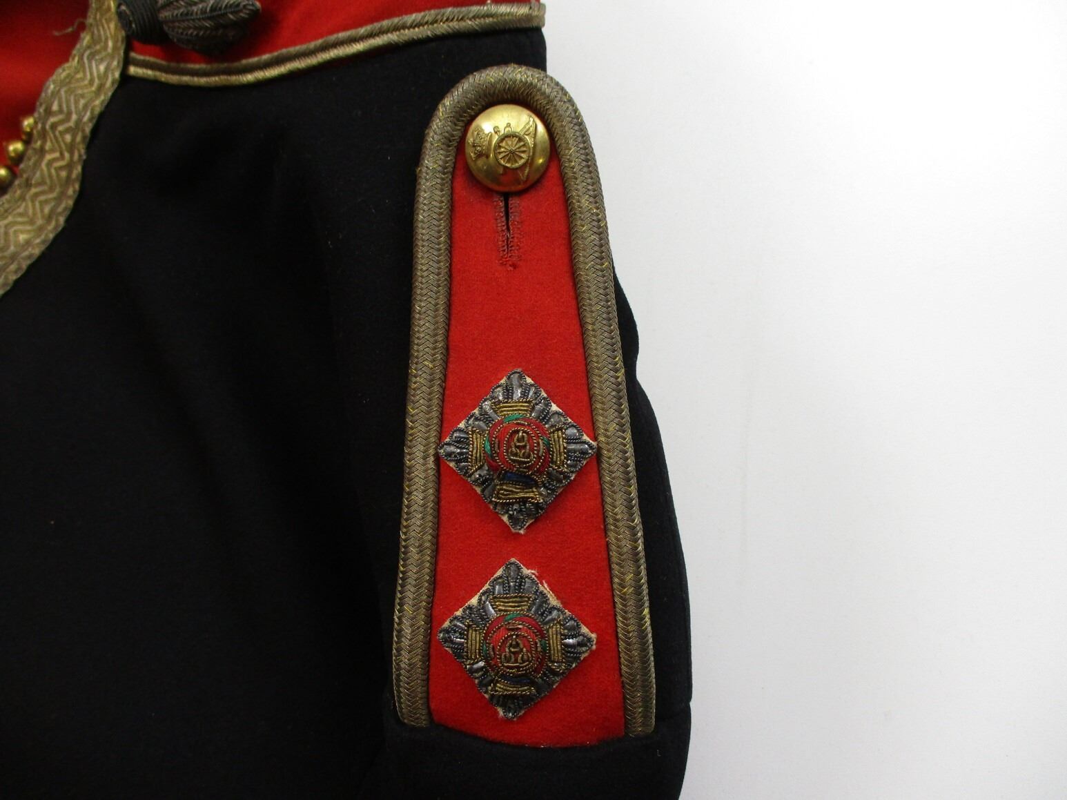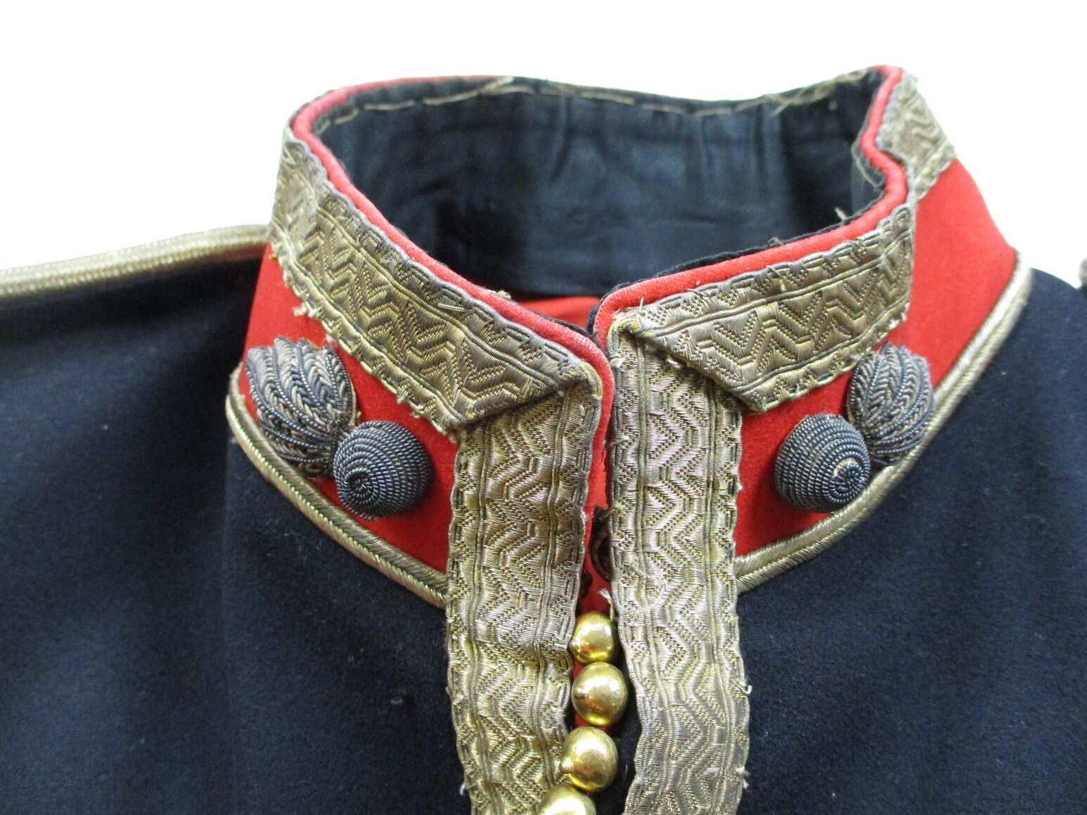 PRE-BOER / BOER WAR CANADIAN MILITARY JACKET AND VEST LOT, 5TH REGIMENT CANADIAN ARTILLERY, CAPTAIN'S RANKING, CONSIGNOR STATES: "ATTRIBUTED TO CAPTAIN M.G. BLANCHARD", LOT INCLUDES; (1) BLACK JACKET WITH RED QUILTED LINING & LEATHER WAIST TRIM, HOOK CLOSURE, GOLD ROPE TRIM, WIRE SHOULDER / NECK INSIGNIA, NO VISIBLE MARKINGS, SHOULDER WIDTH APPROX 14.75" & (1) RED VEST WITH LINER, HOOK CLOSURE. SEE PHOTOS.