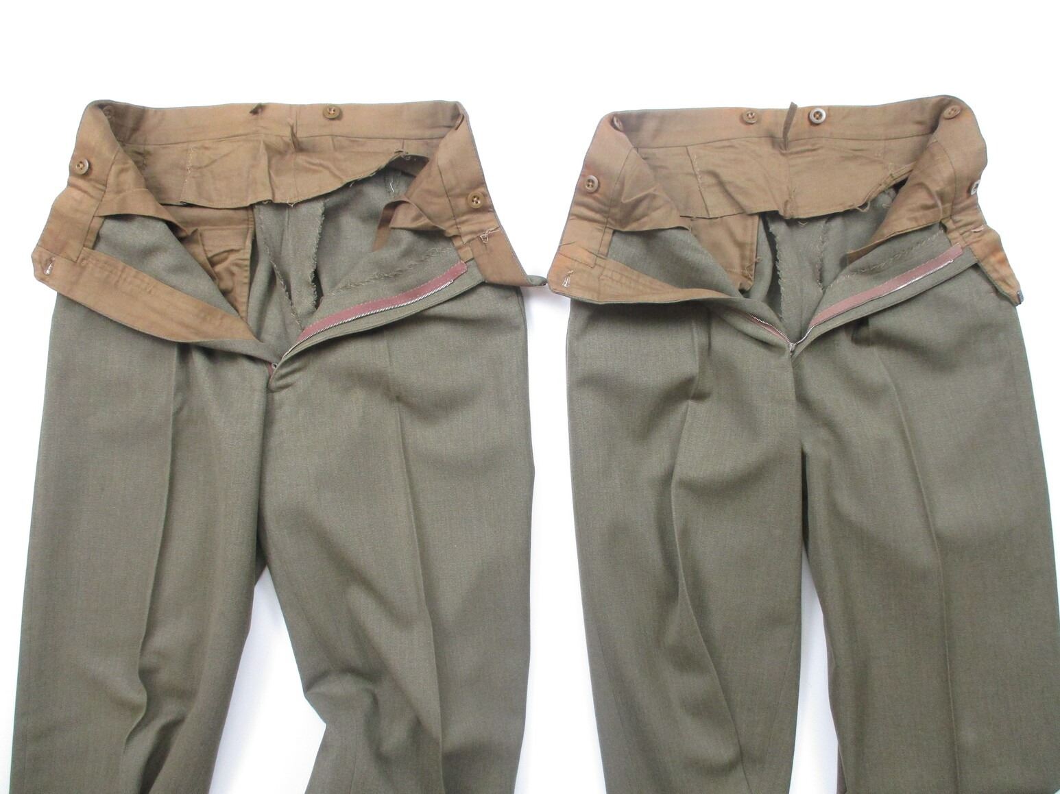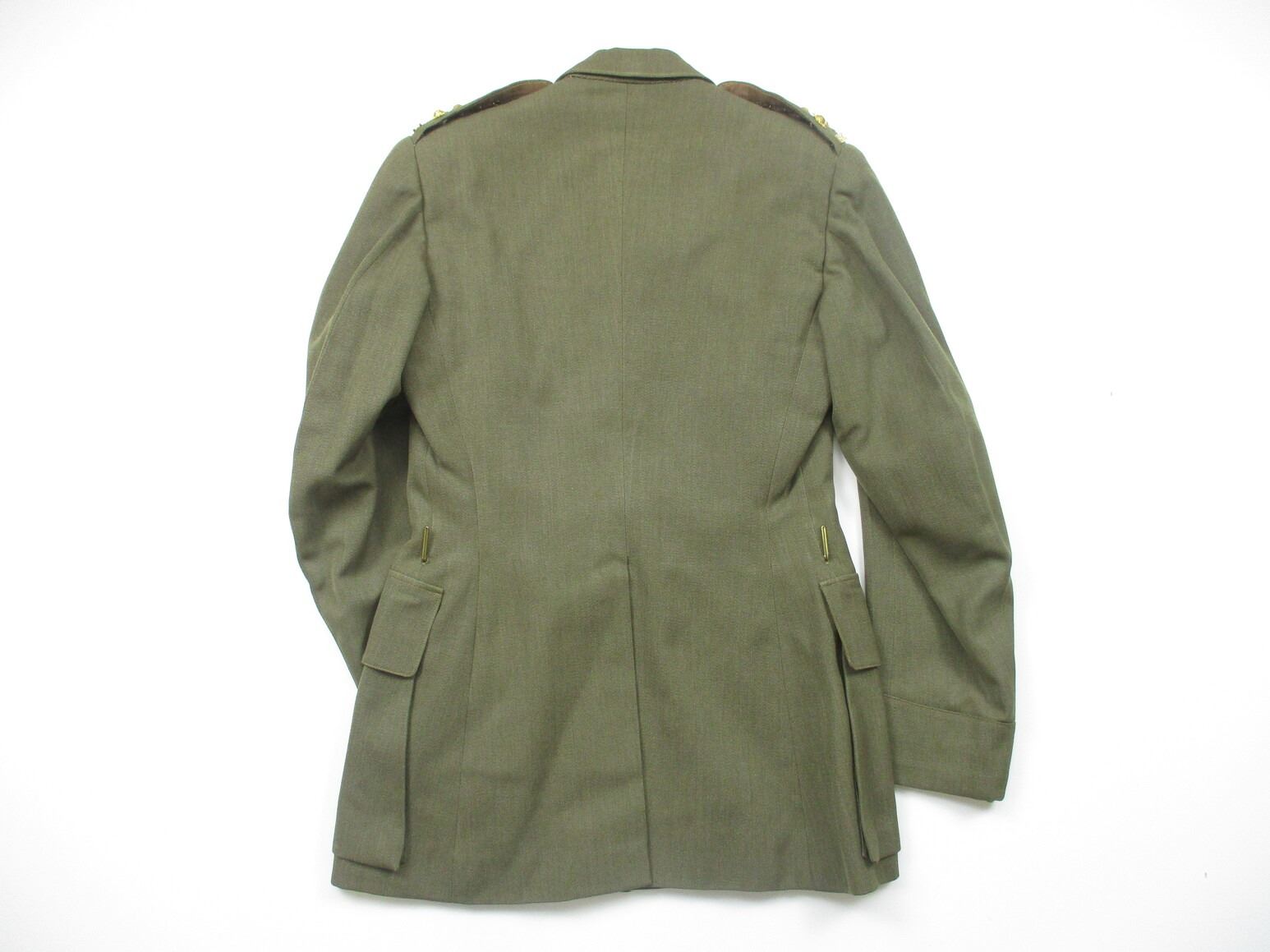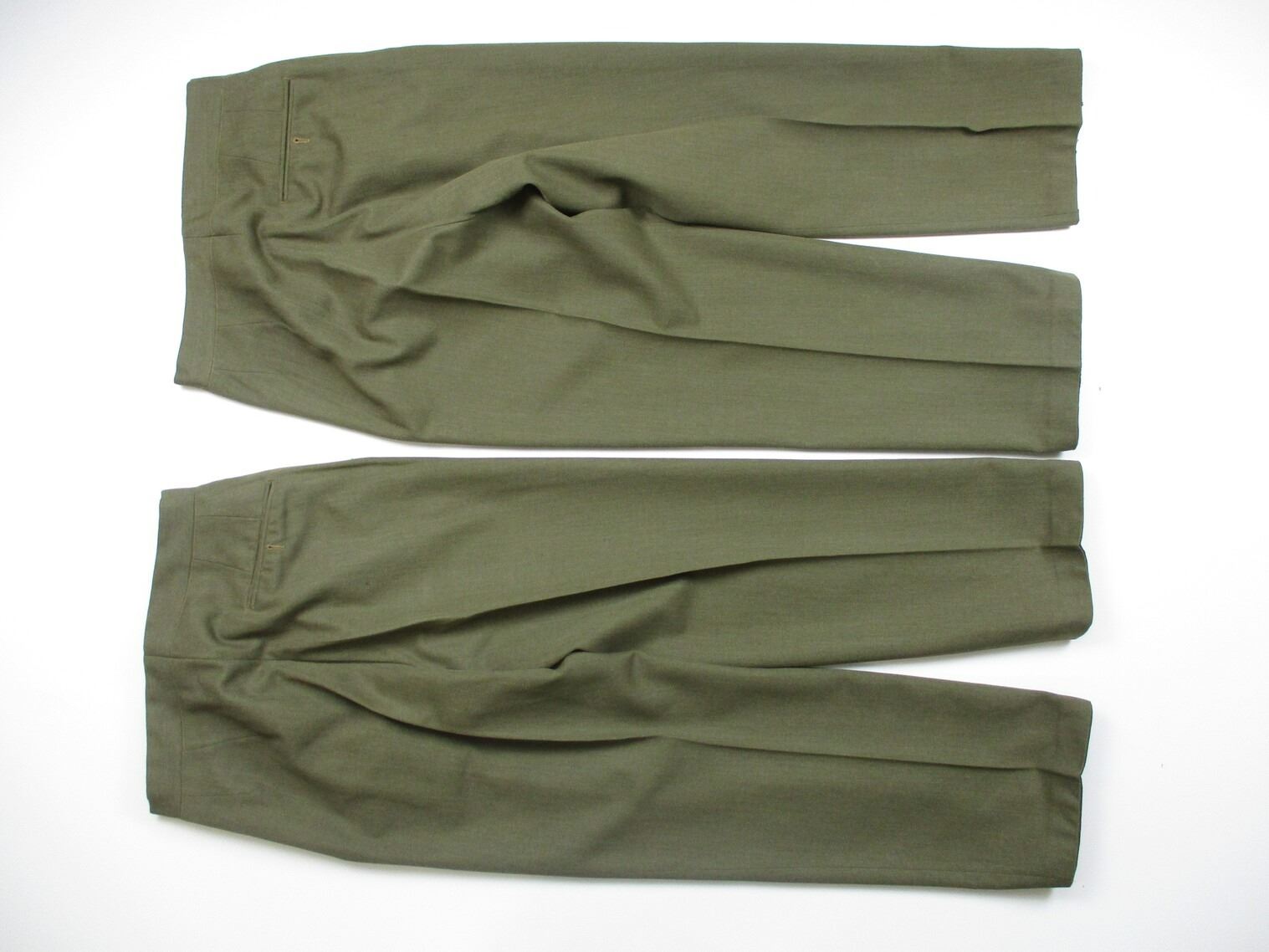 KOREA WAR ERA CANADIAN MILITARY DRESS UNIFORM, LOT INCLUDES; (1) GREEN WOOL JACKET, BRIGADIER GENERAL RANKING WITH RIBBON BAR (CANADIAN VOLUNTEER SERVICE (WITH MAPLE LEAF PIN), WAR MEDAL 1939-1945, UNITED NATIONS EMERGENCY FORCE 1 & CANADIAN FORCES DECORATION (WITH FLOWER PIN), SCARLET GORGET PATCHES, NO VISIBLE MARKINGS, SHOULDER WIDTH APPROX. 17" & (2) PAIRS OF GREEN DRESS PANTS, NO VISIBLE MARKINGS, WAIST APPROX 26". SEE PHOTOS.