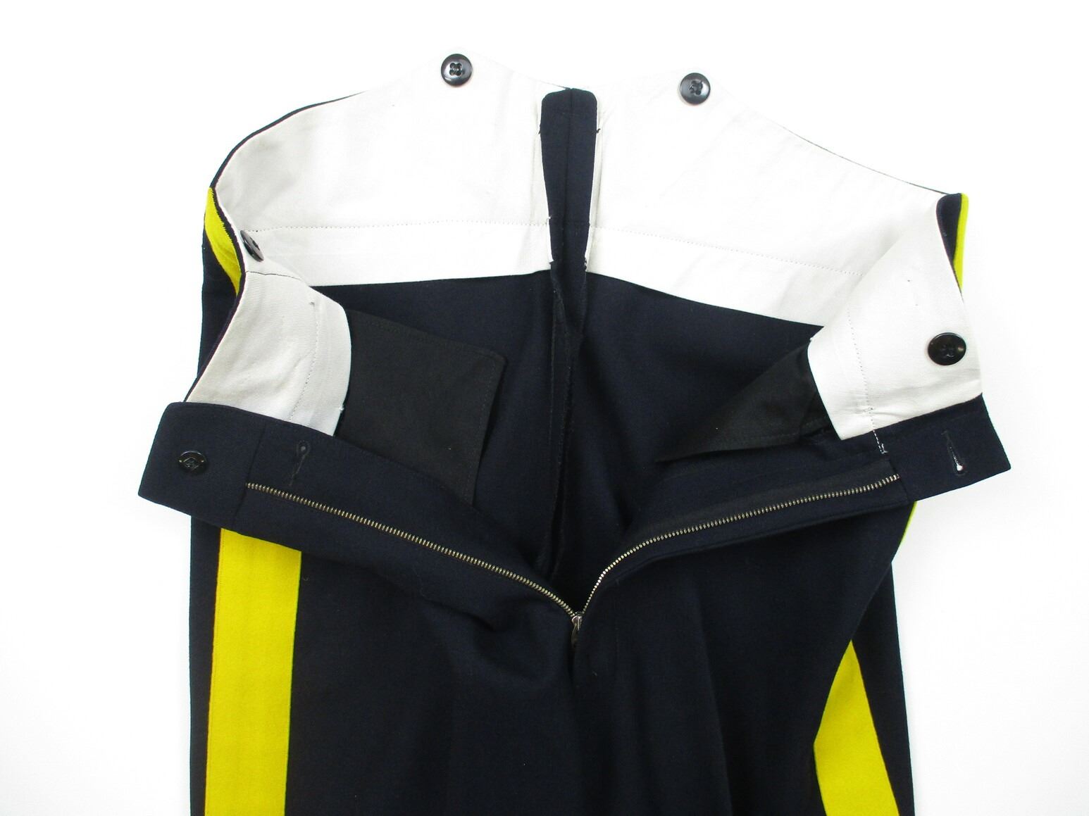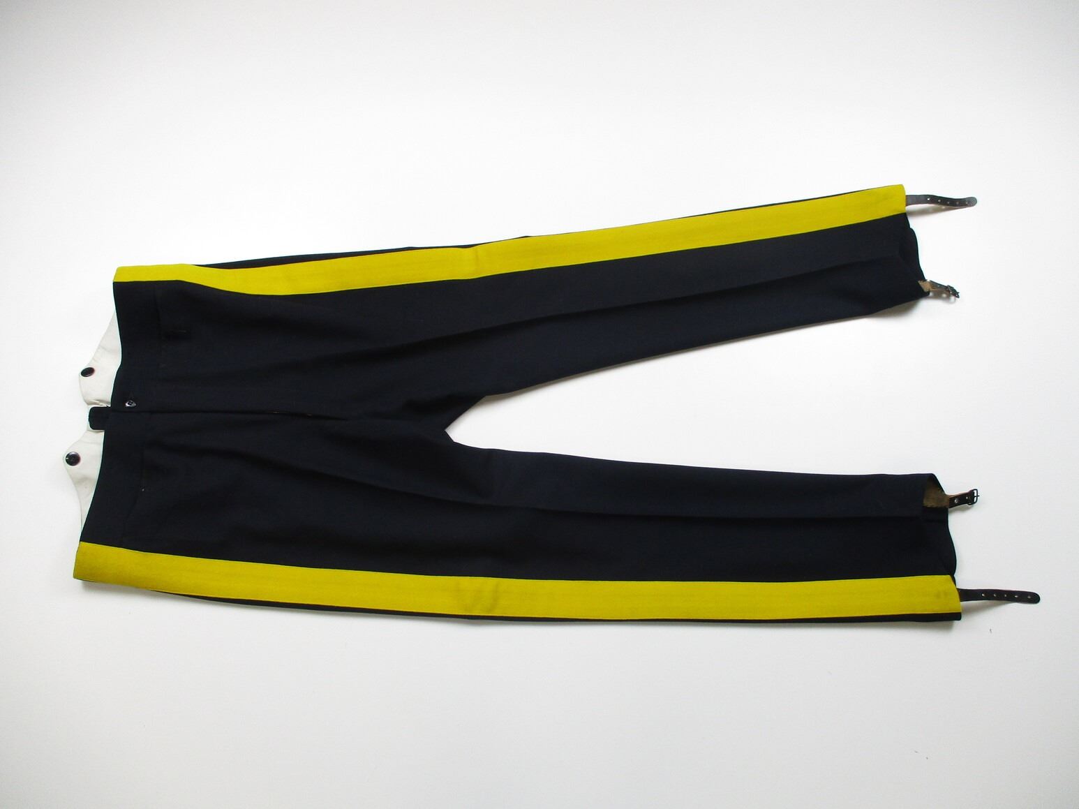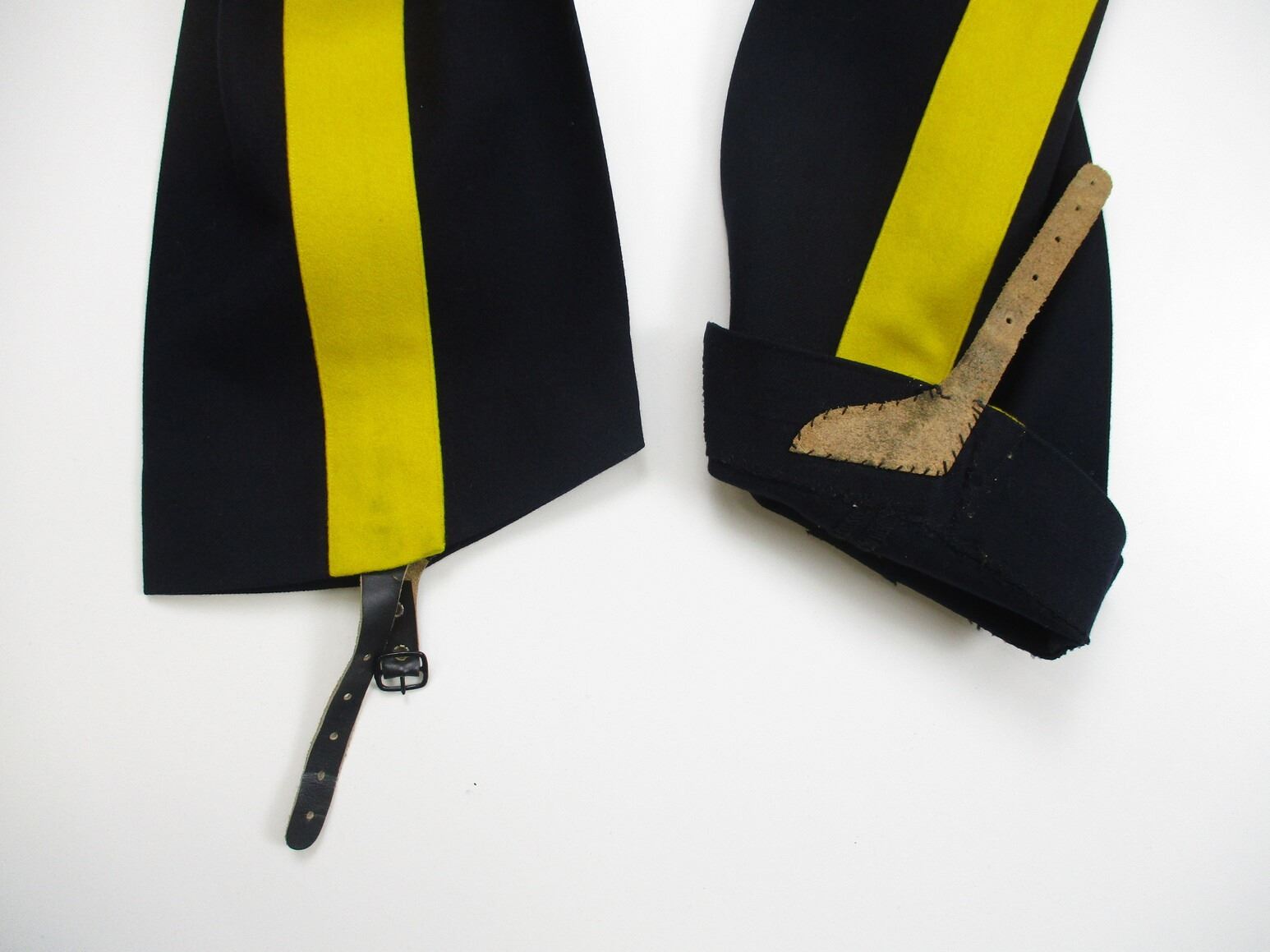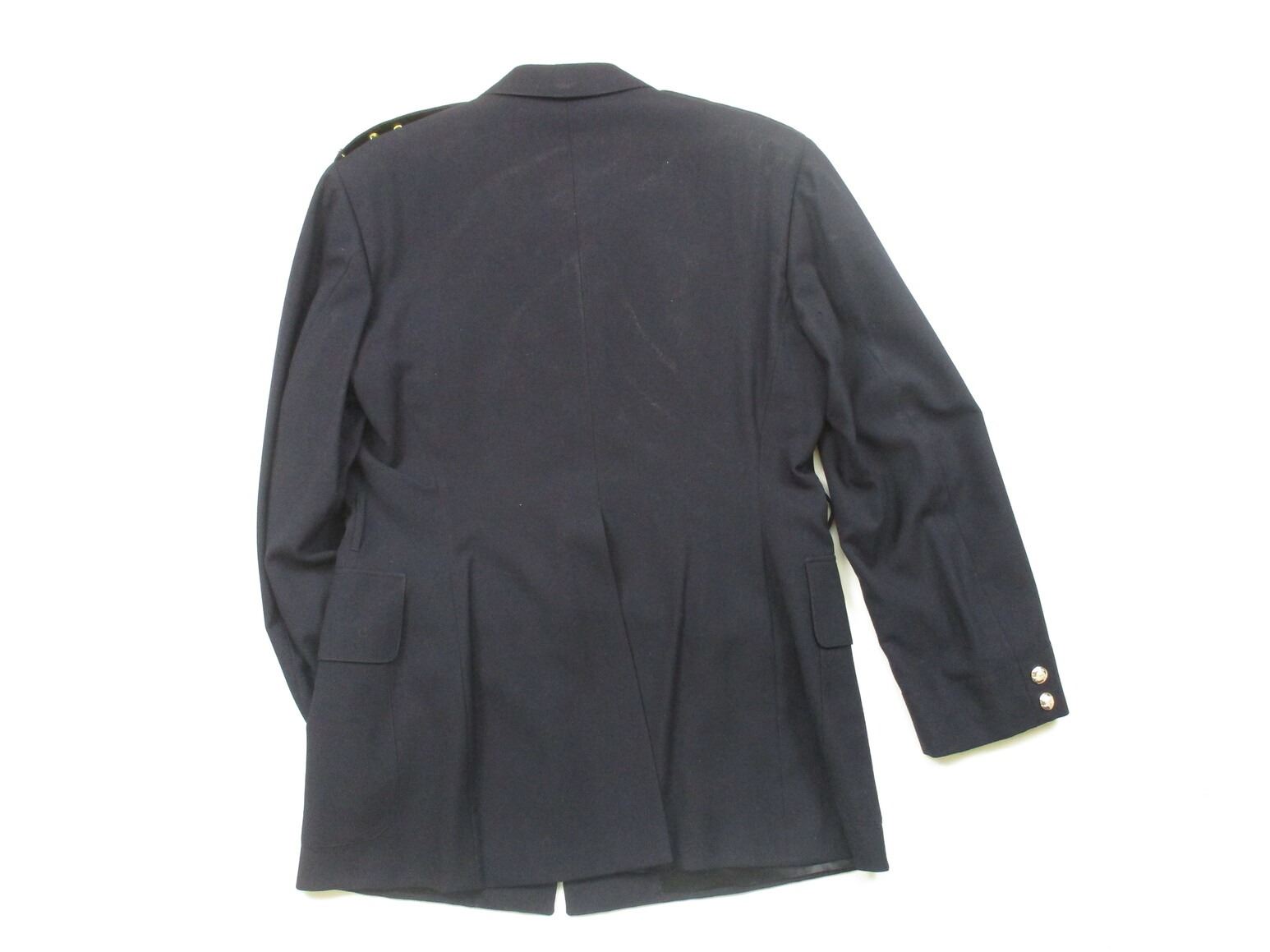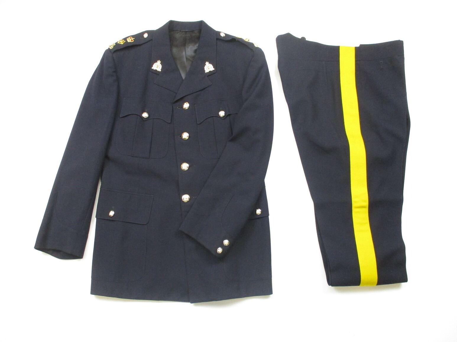 R.C.M.P. SERVICE DRESS UNIFORM, LOT INCLUDES; (1) BLUE JACKET, SUPERINTENDENT, NO VISIBLE MARKINGS, SHOULDER WIDTH APPROX. 19" & (1) PAIR OF BLUE PANTS WITH YELLOW STRIPE & BOOT STRAPS, NO VISIBLE MARKINGS, WAIST APPROX. 32". SEE PHOTOS. PLEASE CHECK YOUR PROVINCIAL LAWS/RESTRICTIONS BEFORE BIDDING ON THIS ITEM. WE WILL NOT SHIP THIS ITEM TO NOVA SCOTIA.