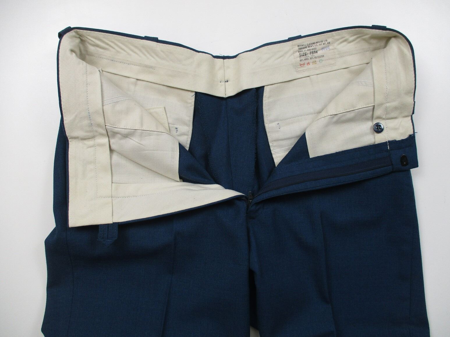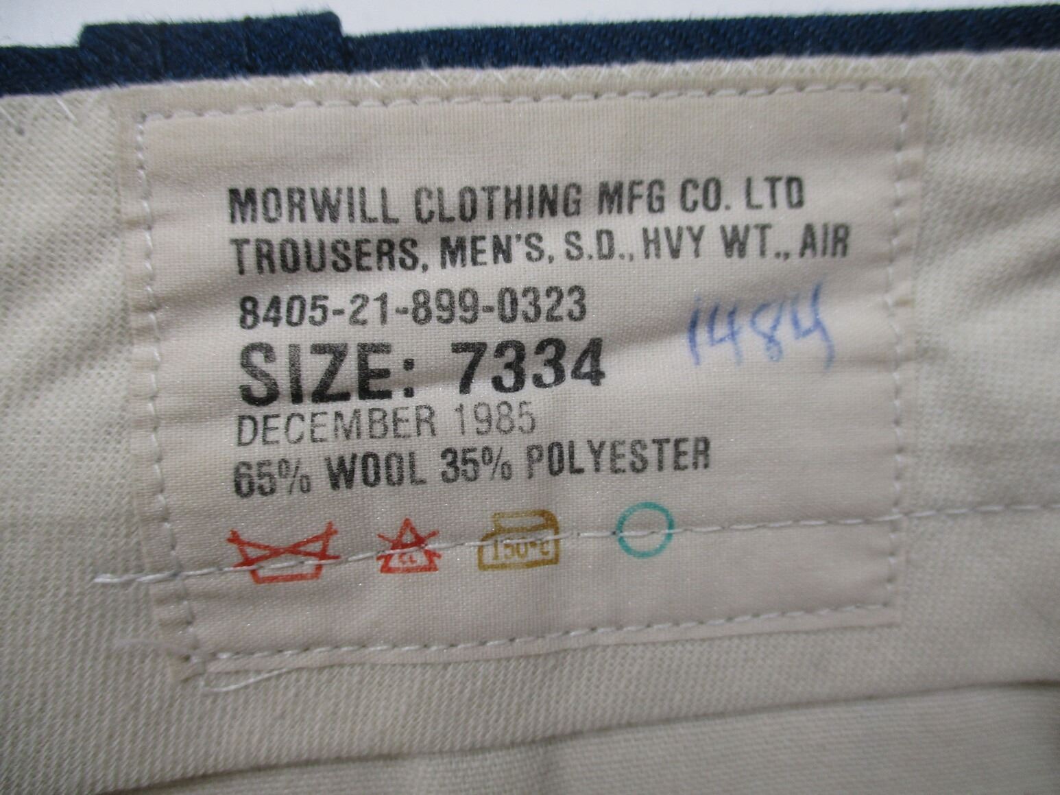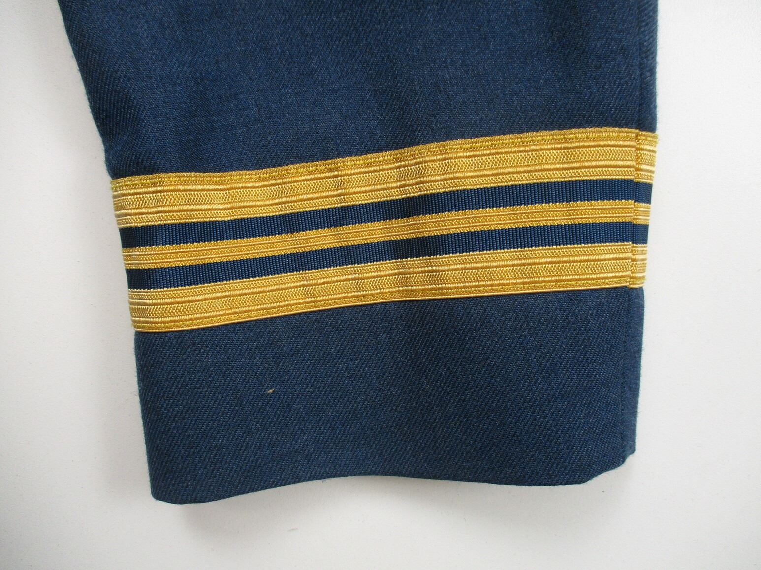 RCAF SERVICE DRESS UNIFORM, LOT INCLUDES; (1) BLUE JACKET, MAJOR RANK WITH SIGNALS HALF-WING BADGE, MARKED: "LOGISTIK UNICORP., SIZE: 7344", ETC. & (1) PAIR OF BLUE PANTS, MARKED: "TROUSERS, MEN'S, S.D., HVY WT., AIR, SIZE: 7334", ETC. SEE PHOTOS.