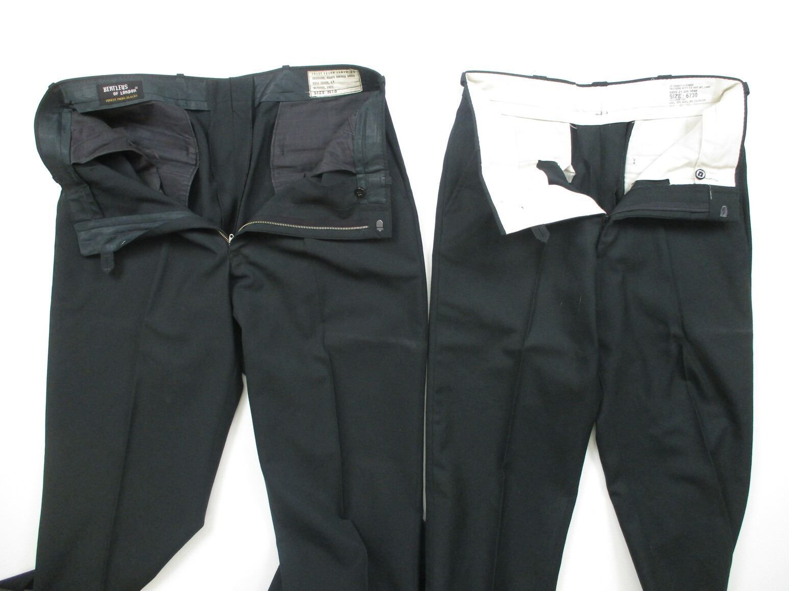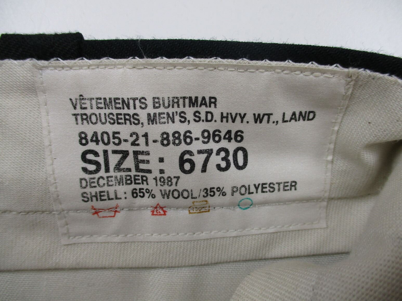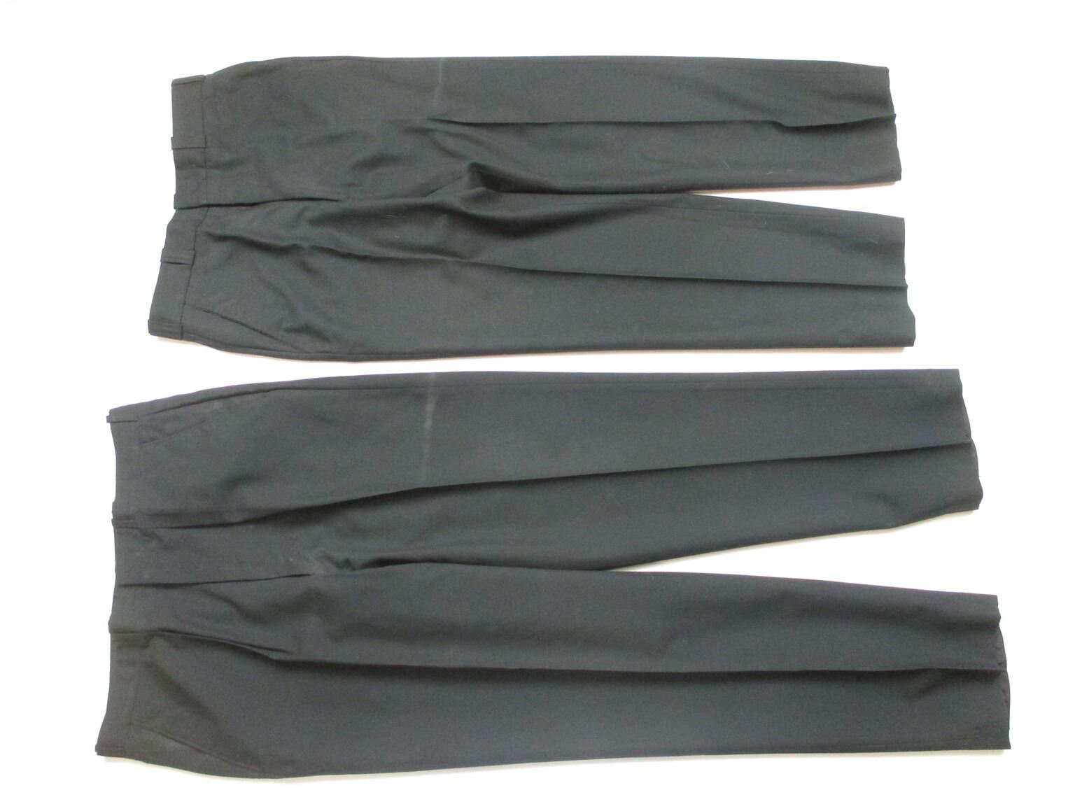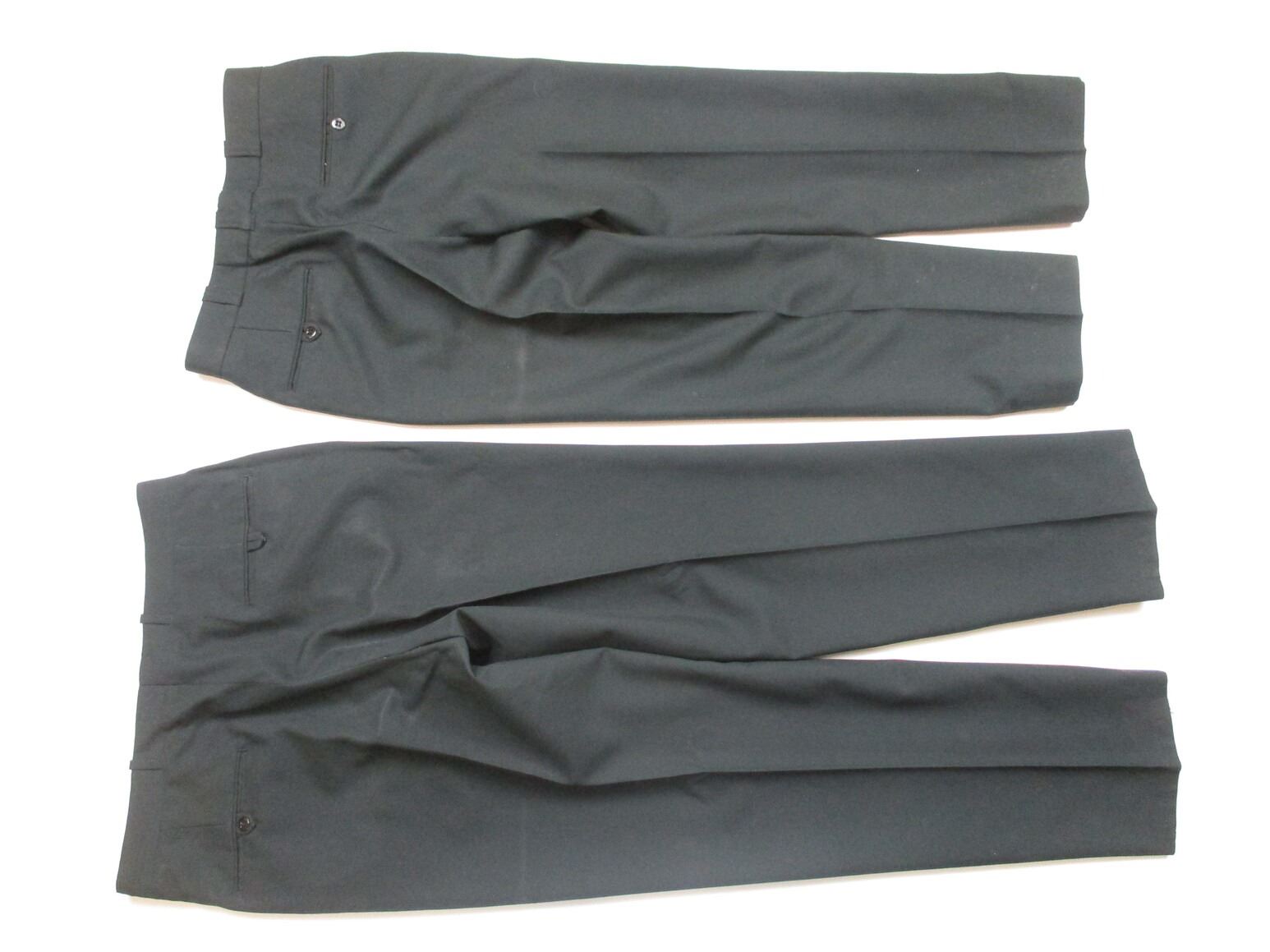 CANADIAN MILITARY DRESS UNIFORM LOT, LOT INCLUDES; (2) DARK GREEN JACKETS, BOTH COLONEL RANK, ONE WITH ROYAL CANADIAN ARTILLERY PINS, ONE MARKED: "SCOTT UNIFORM CO. LTD., COAT MAN'S SERVICE DRESS, MARCH 1969, SIZE N12", ETC., OTHER ONE MARKED: "COAT MAN'S SERVICE DRESS, OCTOBER 1985, SIZE: 7342", ETC. & (2) PAIRS GREEN PANTS, ONE MARKED: "TROUSERS, MEN'S, S.D. HVY. WT., LAND, SIZE 6730", ETC. OTHER ONE MARKED: "TROUSERS, MAN'S SERVICE DRESS, OCTOBER 1971, SIZE N18", ETC. SEE PHOTOS.