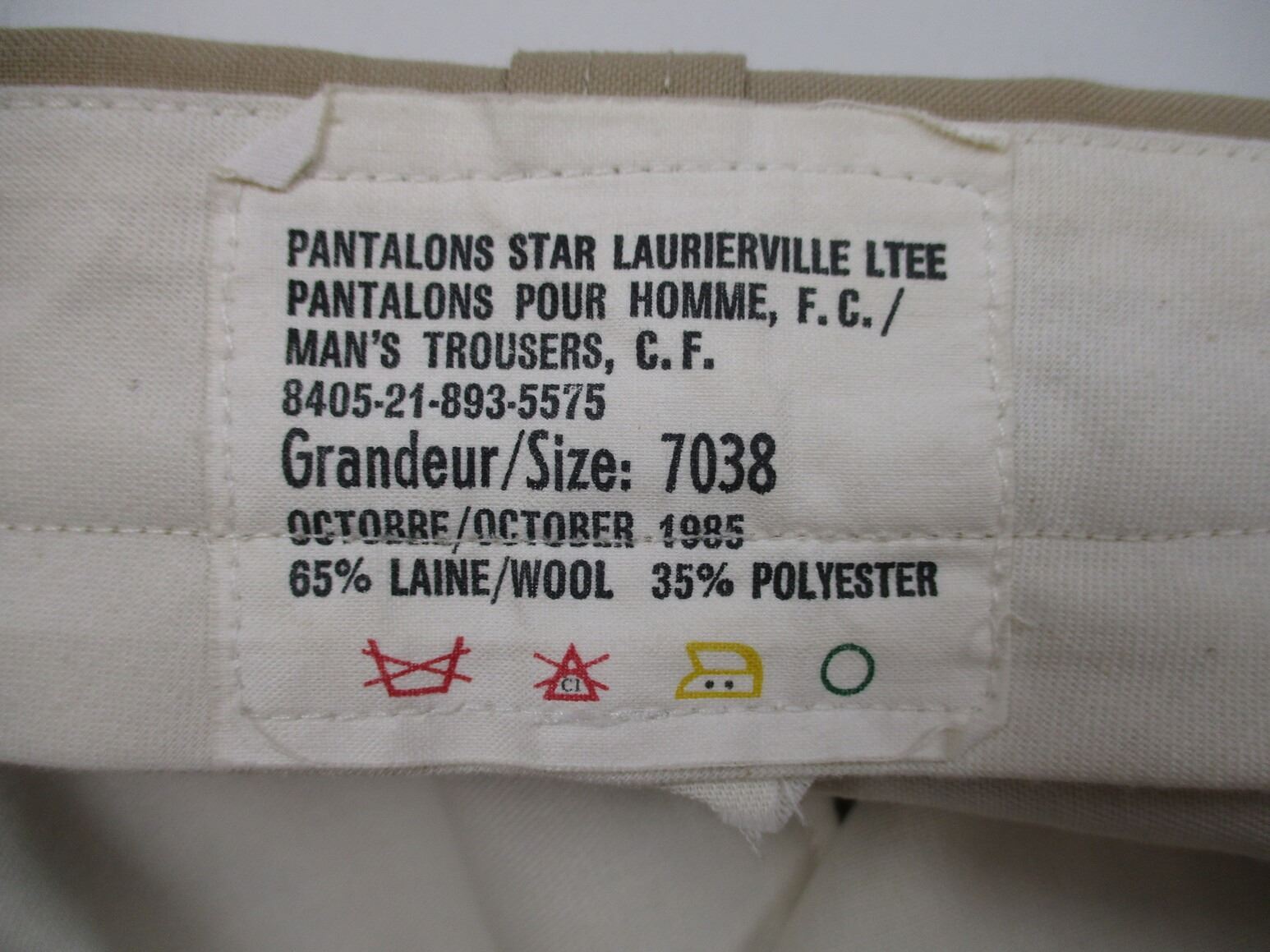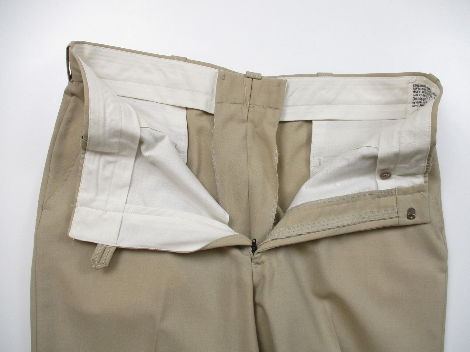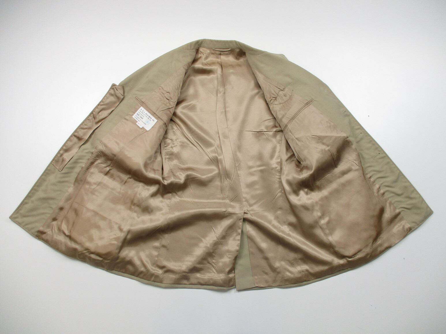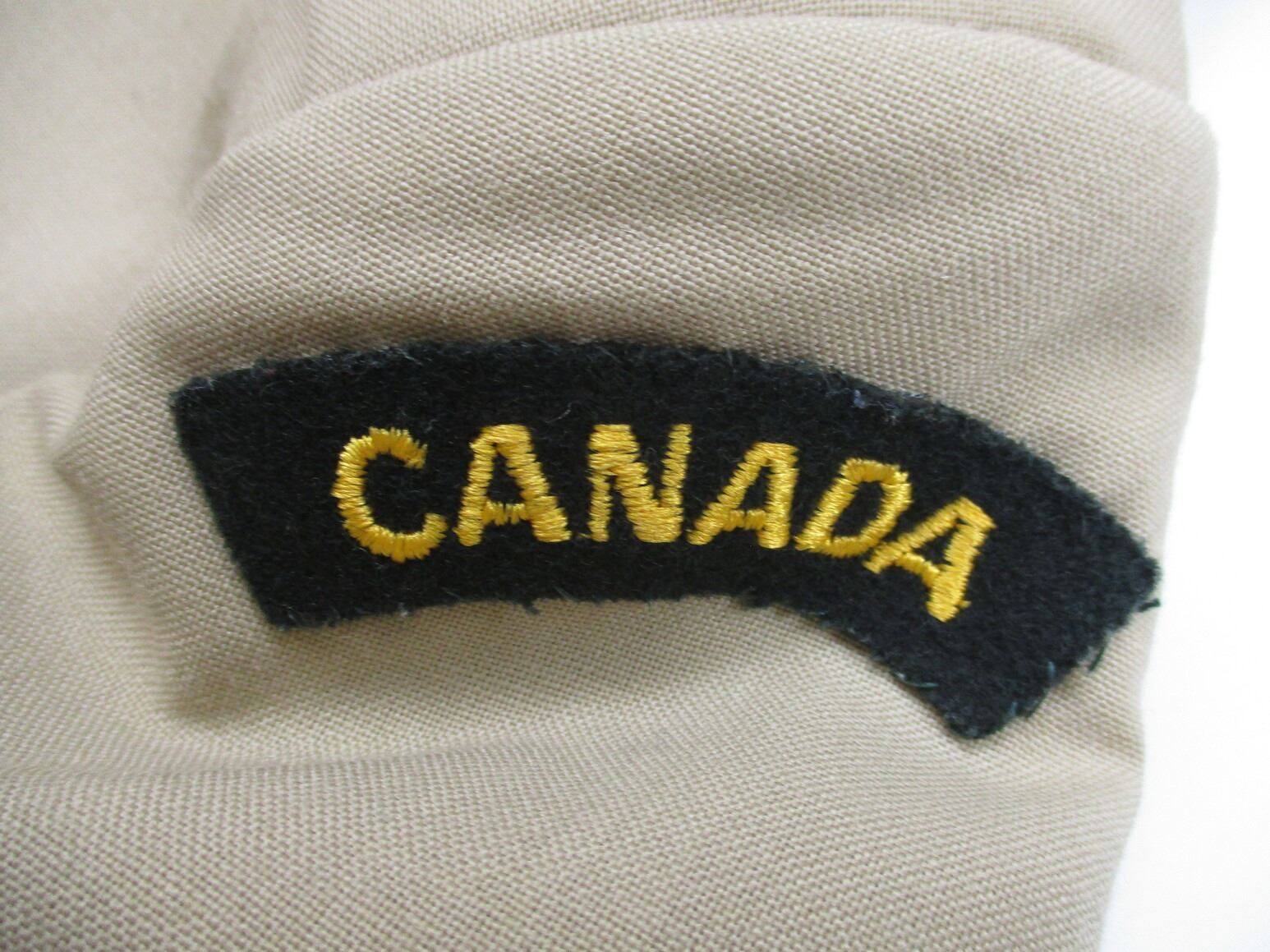 CANADIAN MILITARY DRESS UNIFORM, LOT INCLUDES; (1) TAN JACKET, BRIGADIER GENERAL RANK WITH OPERATIONAL PARACHUTIST WINGS & RIBBON BAR (U.N. FORCES IN CYPRUS, U.N. EMERGENCY FORCE MIDDLE EAST & CANADIAN FORCES DECORATION (WITH 2 FLOWER PINS), CROSSED-SWORDS PINS ON COLLAR (INFANTRY GENERAL OFFICER), MARKED: "SIZE: 7344" & OTHER VARIOUS MARKINGS & (1) PAIR TAN PANTS, MARKED: "SIZE: 7038" & OTHER VARIOUS MARKINGS. SEE PHOTOS.