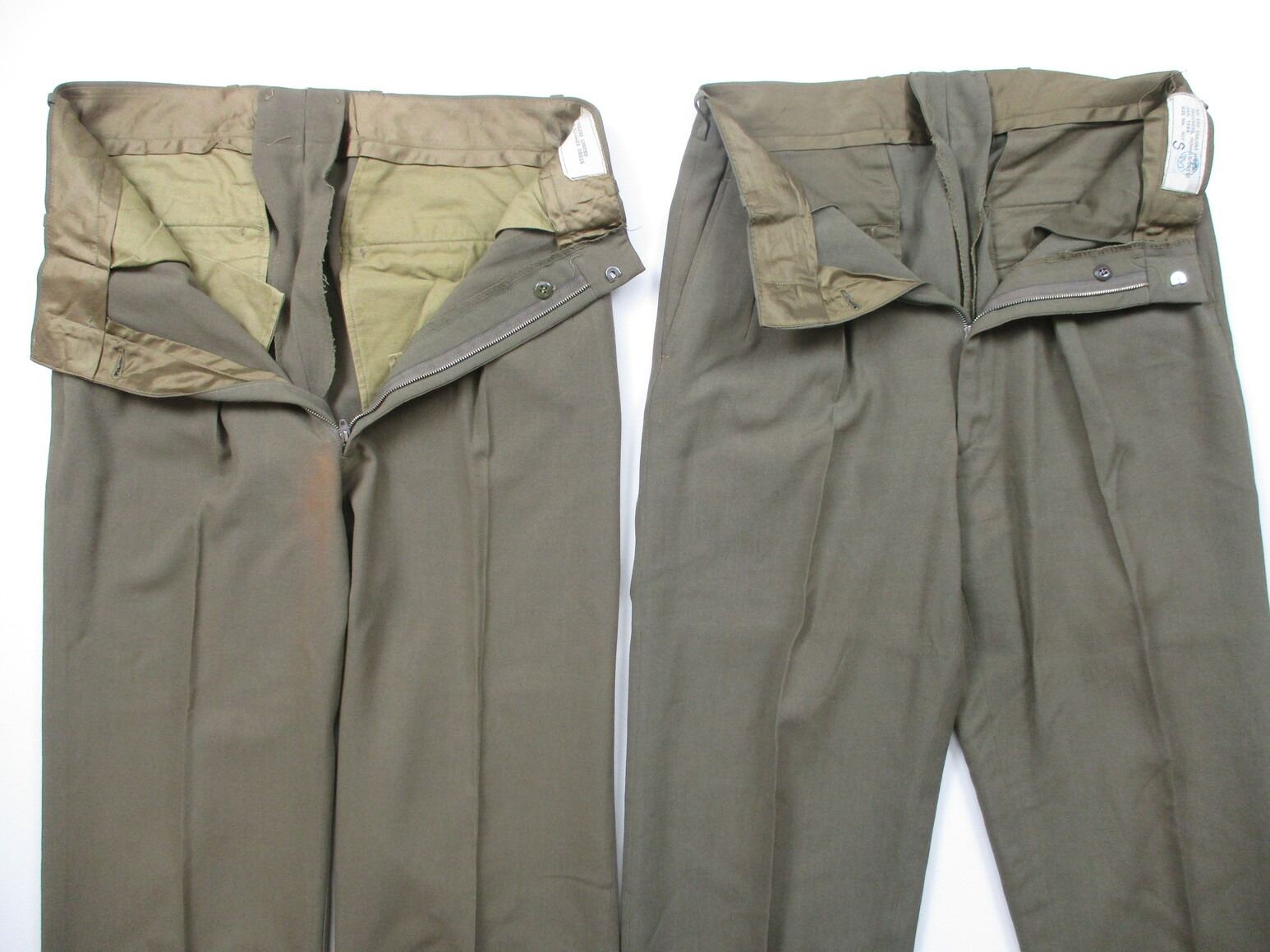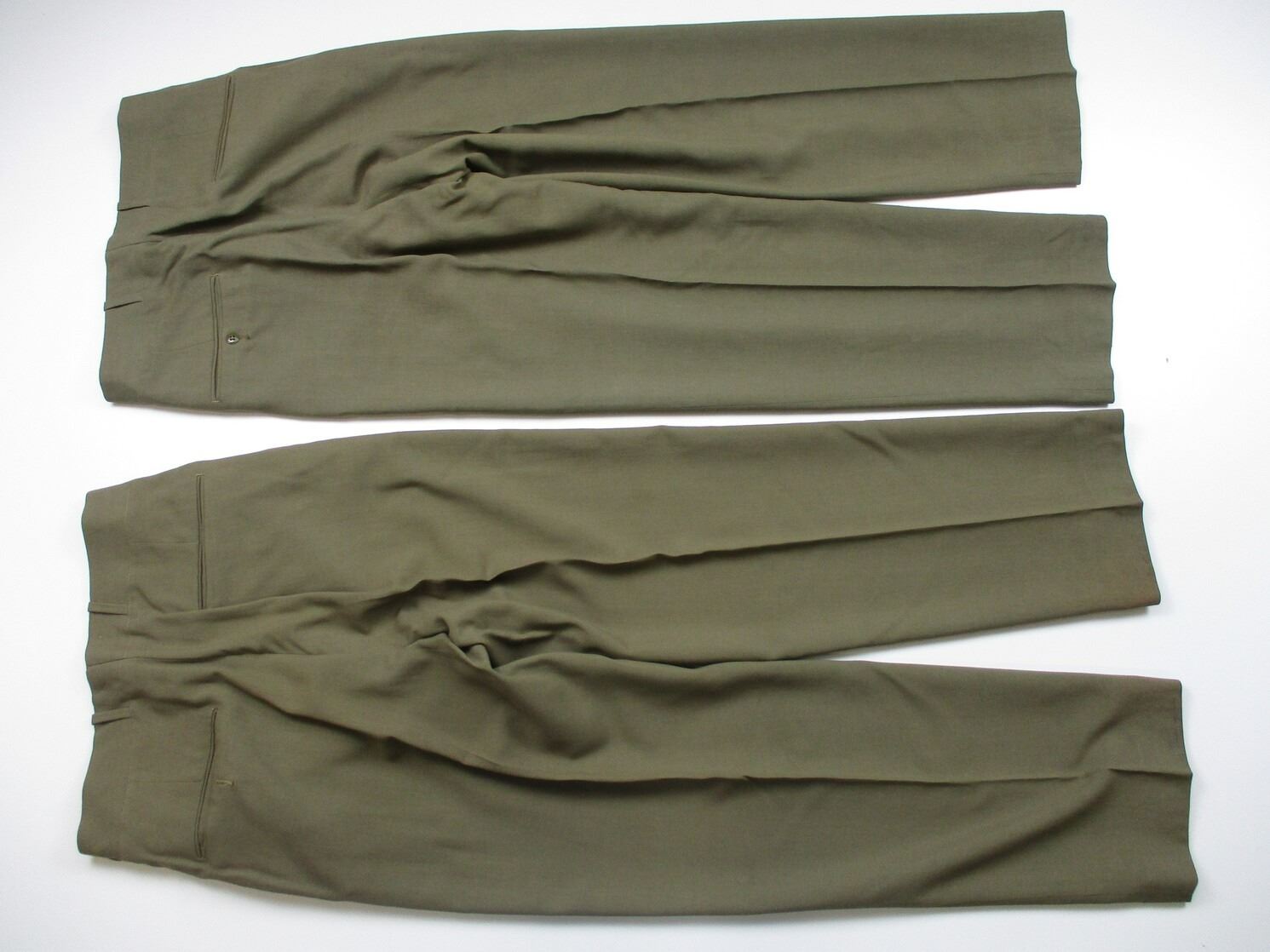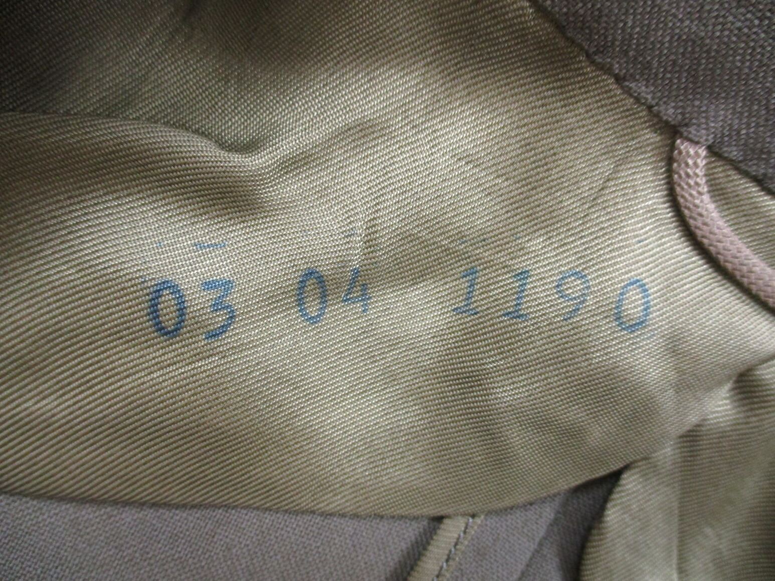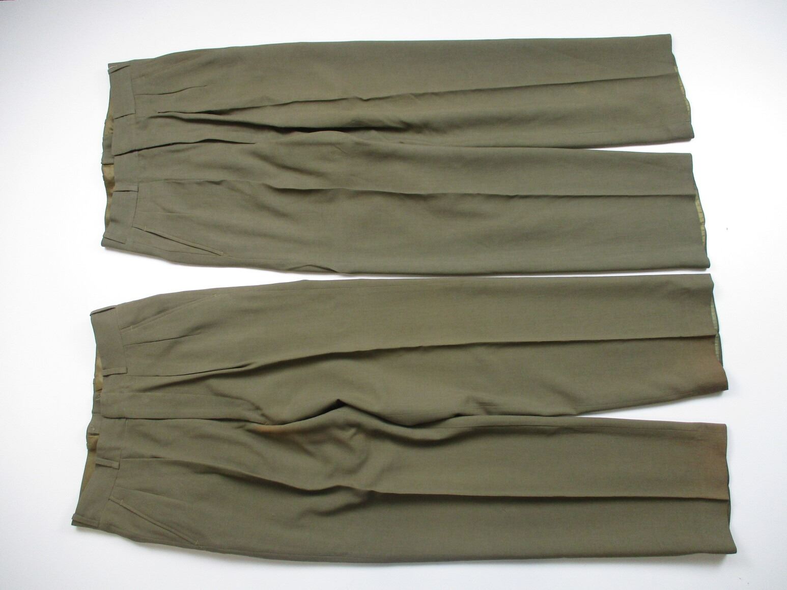 CANADIAN MILITARY SUMMER DRESS UNIFORM, LOT INCLUDES; (1) GREEN JACKET, BRIGADIER RANK WITH RIBBON BAR (BRITISH EMPIRE MEDAL, 1939-1945 STAR, ITALY STAR, FRANCE & GERMANY STAR, DEFENCE MEDAL, CANADIAN VOLUNTEER SERVICE (WITH MAPLE LEAF PIN), WAR MEDAL 1939-1945 (WITH OAK LEAF PIN), QUEEN ELIZABETH II CORONATION, CANADIAN FORCES DECORATION, ETC.) & BELT, SCARLET GORGET PATCHES, MARKED: "03 04 1190", SHOULDER WIDTH APPROX. 17.5", (2) PAIRS TAN PANTS, MARKED: "SIZE N17", MAPLE LEAF PROOF & OTHER VARIOUS MARKINGS. SEE PHOTOS.